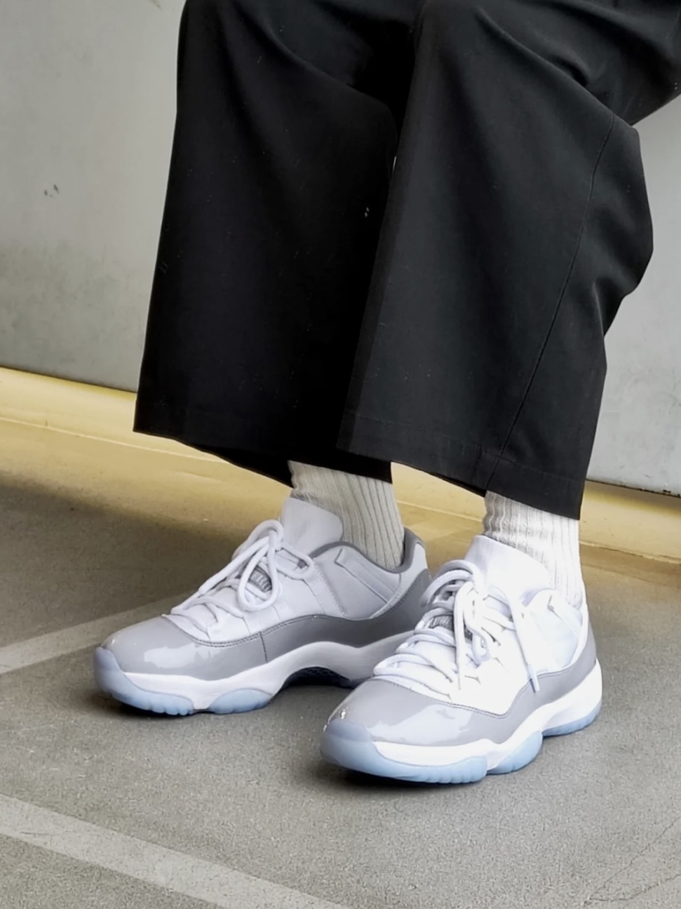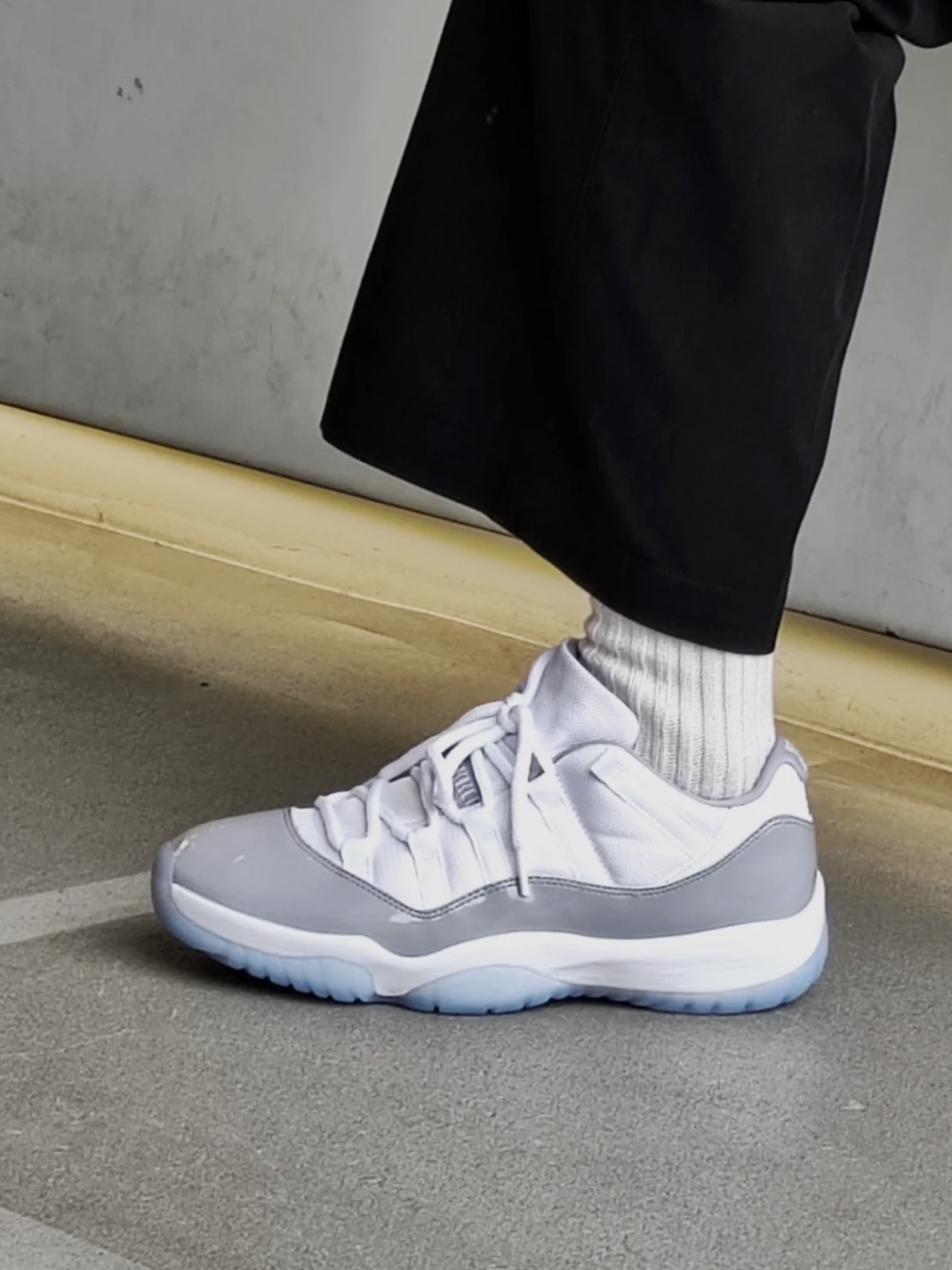 复古做旧有质感的白灰配色〝 AJ11这个鞋型舒适又百搭,又显瘦 不管是穿工装裤还是短裙都好看 而且配色高级,男生女生都能穿不 情侣们懂我的意思吧