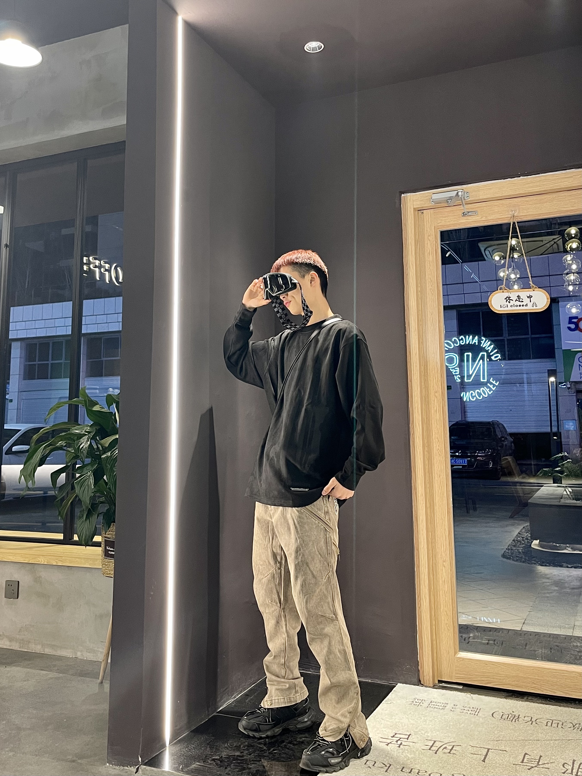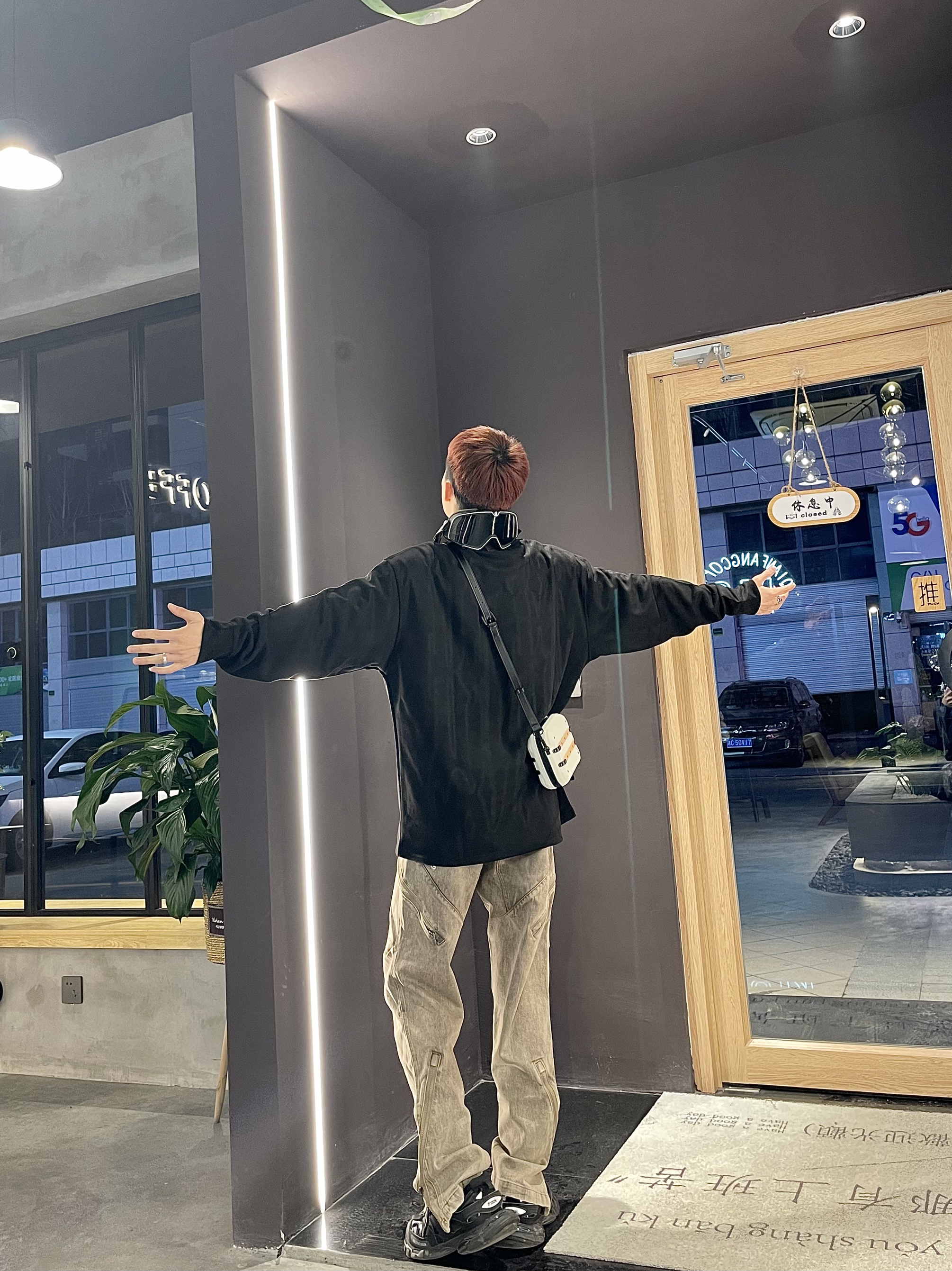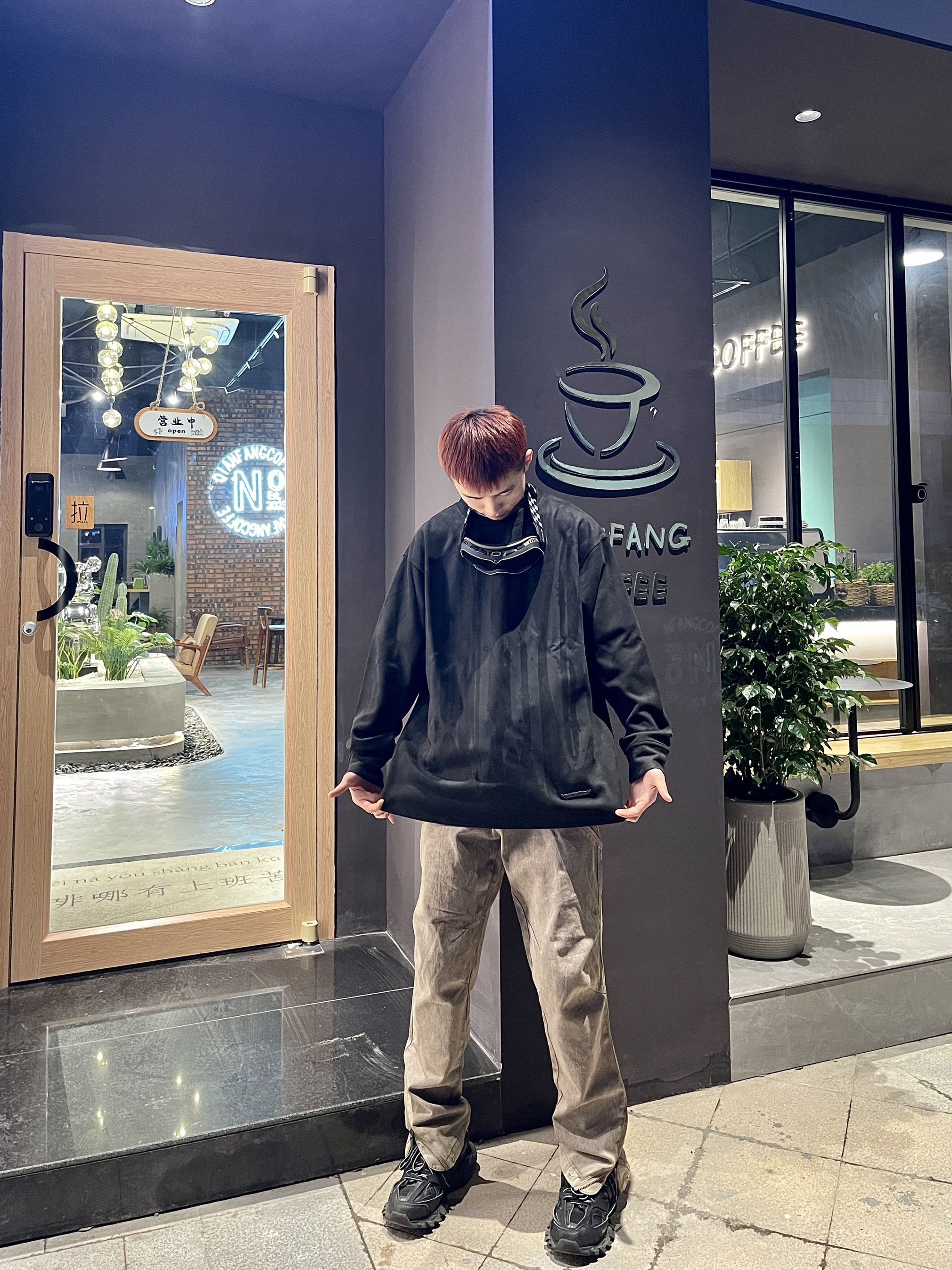 Ootd|“⚫➕️🟤”|早春户外高街穿搭 深色系氛围感很简单哈 早春一件麂皮绒材质长袖T恤 搭配棕色长款修身牛仔裤 温度刚合适 ⚫️搭🟤显瘦又显高级 简单到极致便是潮流
