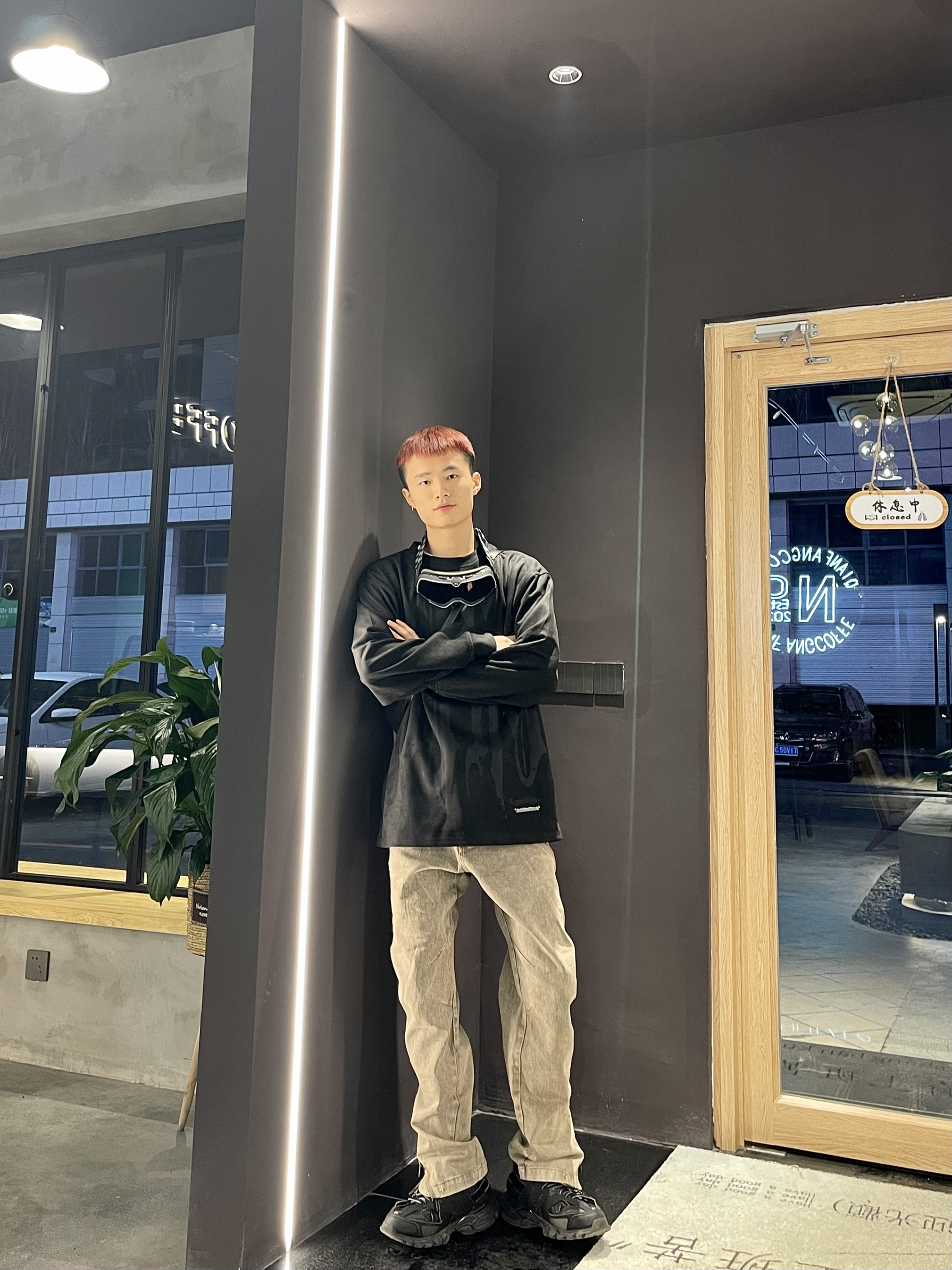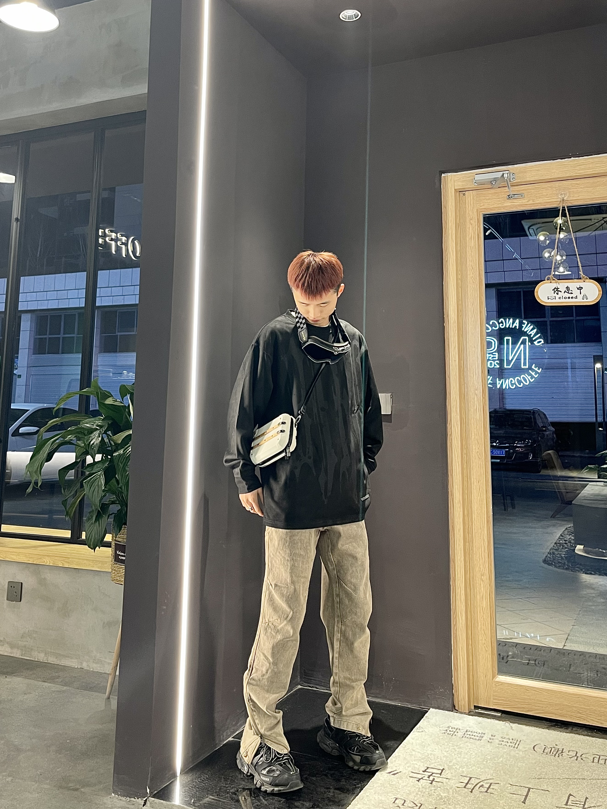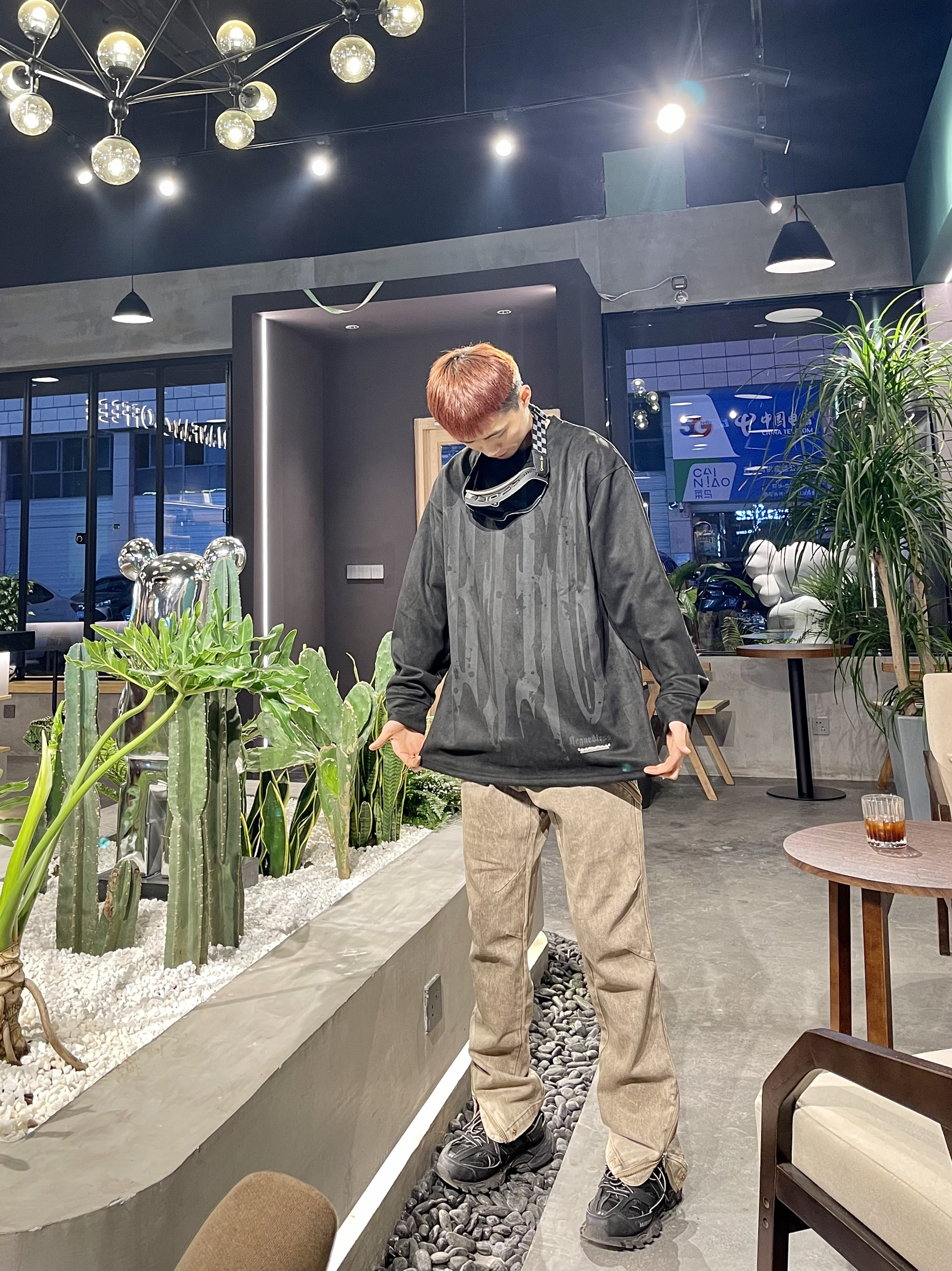 Ootd|“⚫➕️🟤”|早春户外高街穿搭 深色系氛围感很简单哈 早春一件麂皮绒材质长袖T恤 搭配棕色长款修身牛仔裤 温度刚合适 ⚫️搭🟤显瘦又显高级 简单到极致便是潮流