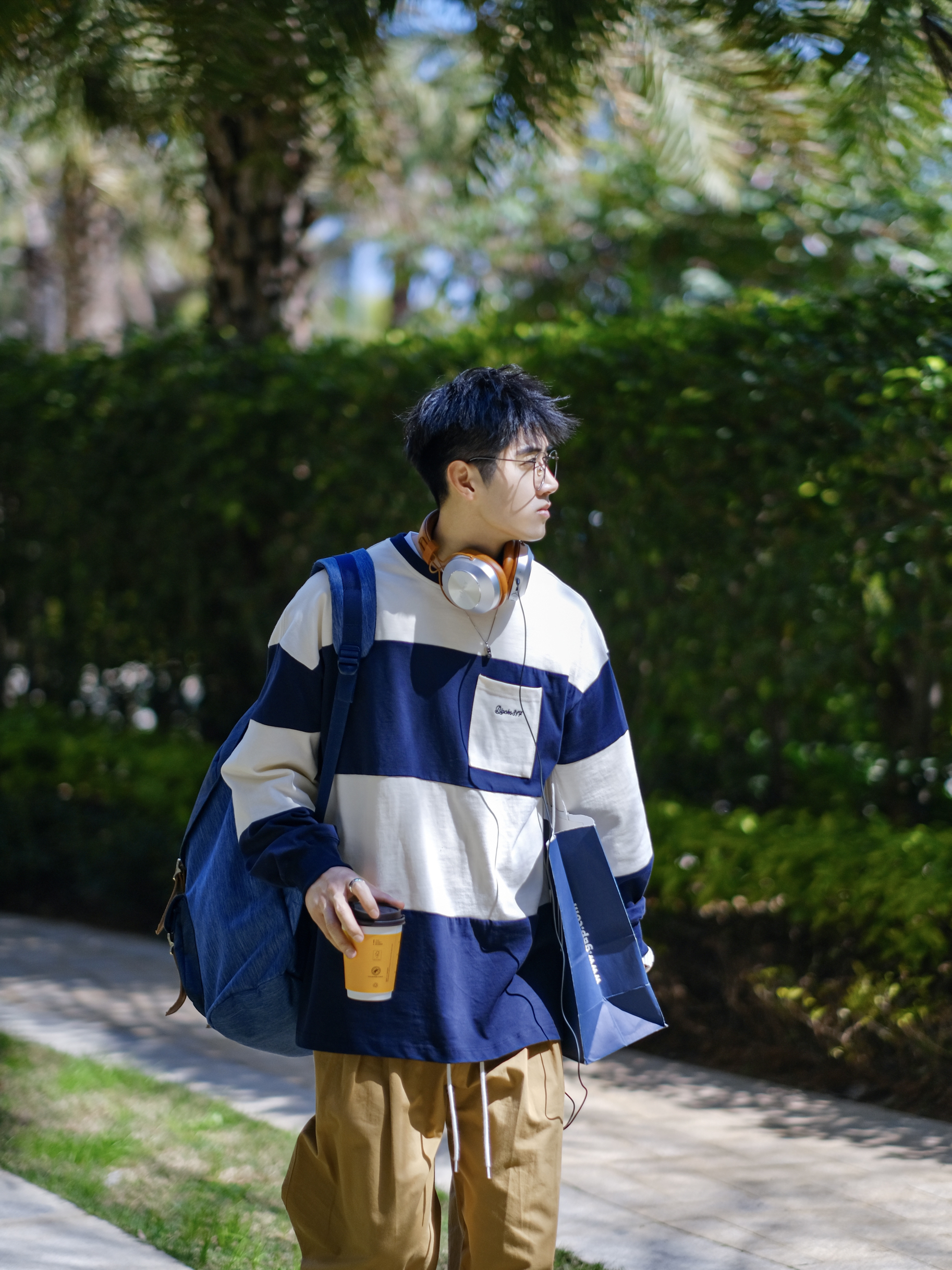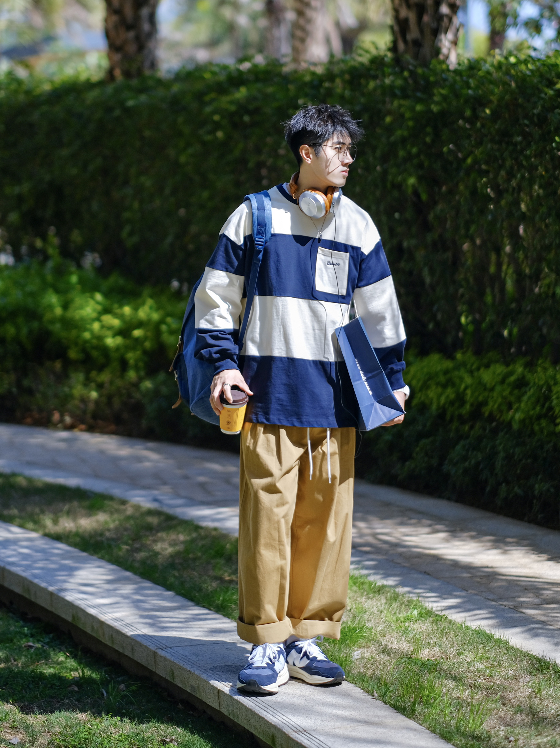 🍃周末快乐!☀️✨💤…… — 🍃这周末天气好舒服,分享一套“春日出游穿搭”—“不简单工装风”少年感穿搭!条纹T恤搭配工装裤,一套“简简单单”、“干干净净”的日系穿搭!真的好适合男生春季穿搭!🌀✨🍃…… — ⚠️本人身高|体重:176CM|62KG(🉑️参考) — ⭐️今日份色彩搭配=🔵【藏青色】+🟠【卡其色】 · 1⃣️、🔵【藏青色】粗条纹T恤,满满的日系单品,盐系男友风,好适合学生党校园穿搭!✨...