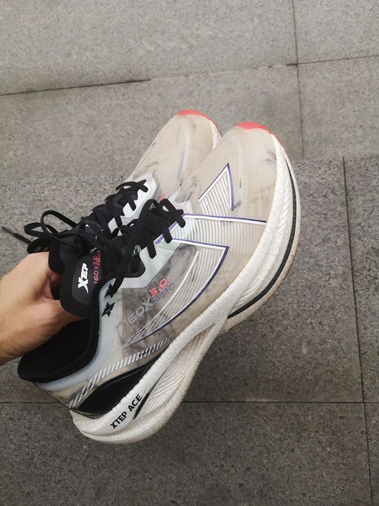 冠军跑鞋特步160X3.0pro带点水墨感的配色,去年双十一前上市第一天下单买的,刚刚跑了700公里,其中500多公里是户外路跑,柏油路面的绿道/盘山路等,穿着这双鞋参加了我的第一场全程马拉松和第一场半程马拉松,品相如下。几个月跑下来,汗湿了就直接水冲,但没有爆晒,鞋面压胶没有开胶,除了有点发黄没别的变化,中底也没有掉渣,鞋底花纹有很轻微的磨损,雨战盐田山海半马,止滑效果杠杠滴,雨水中弹性杠杠滴。...