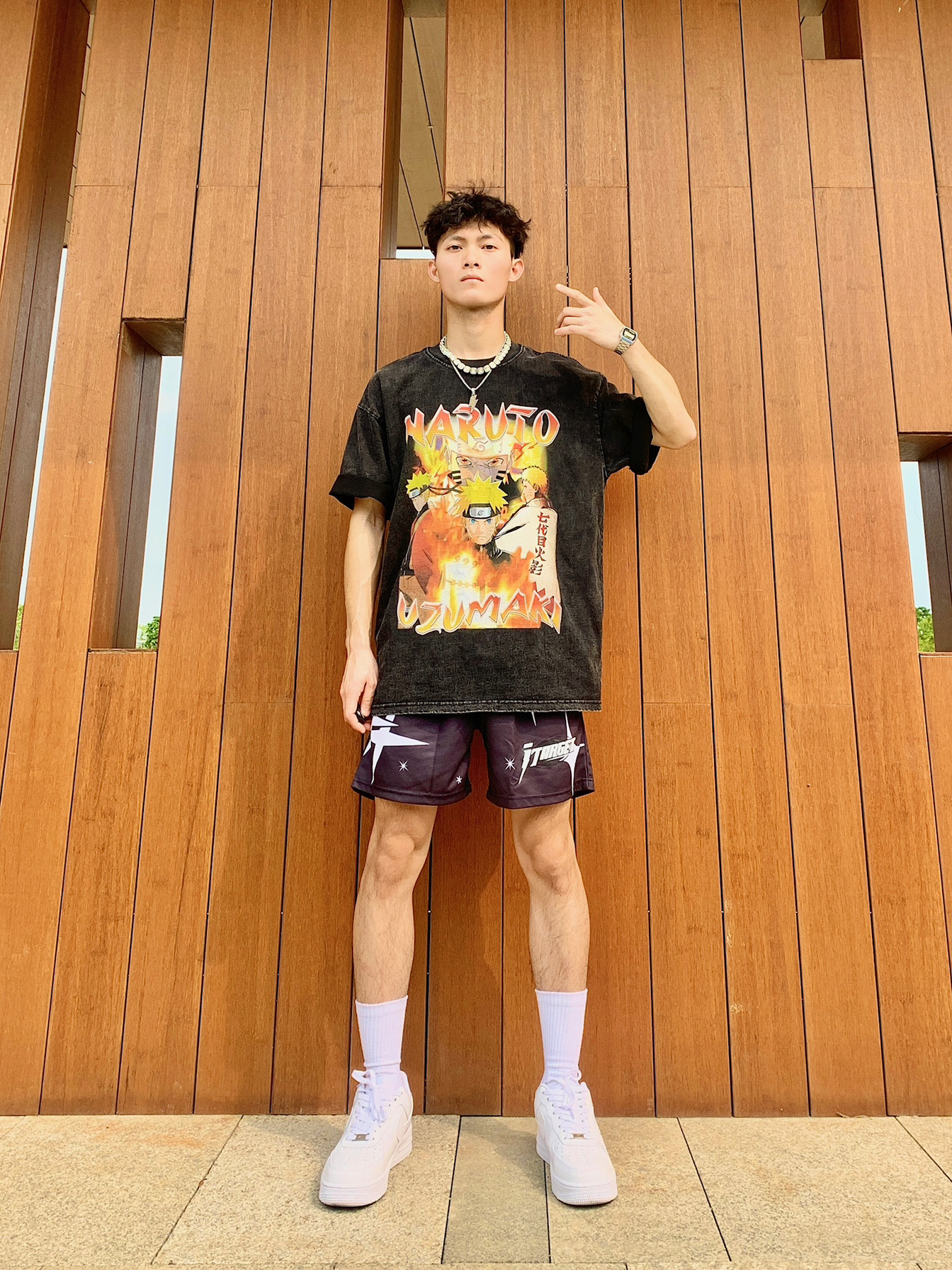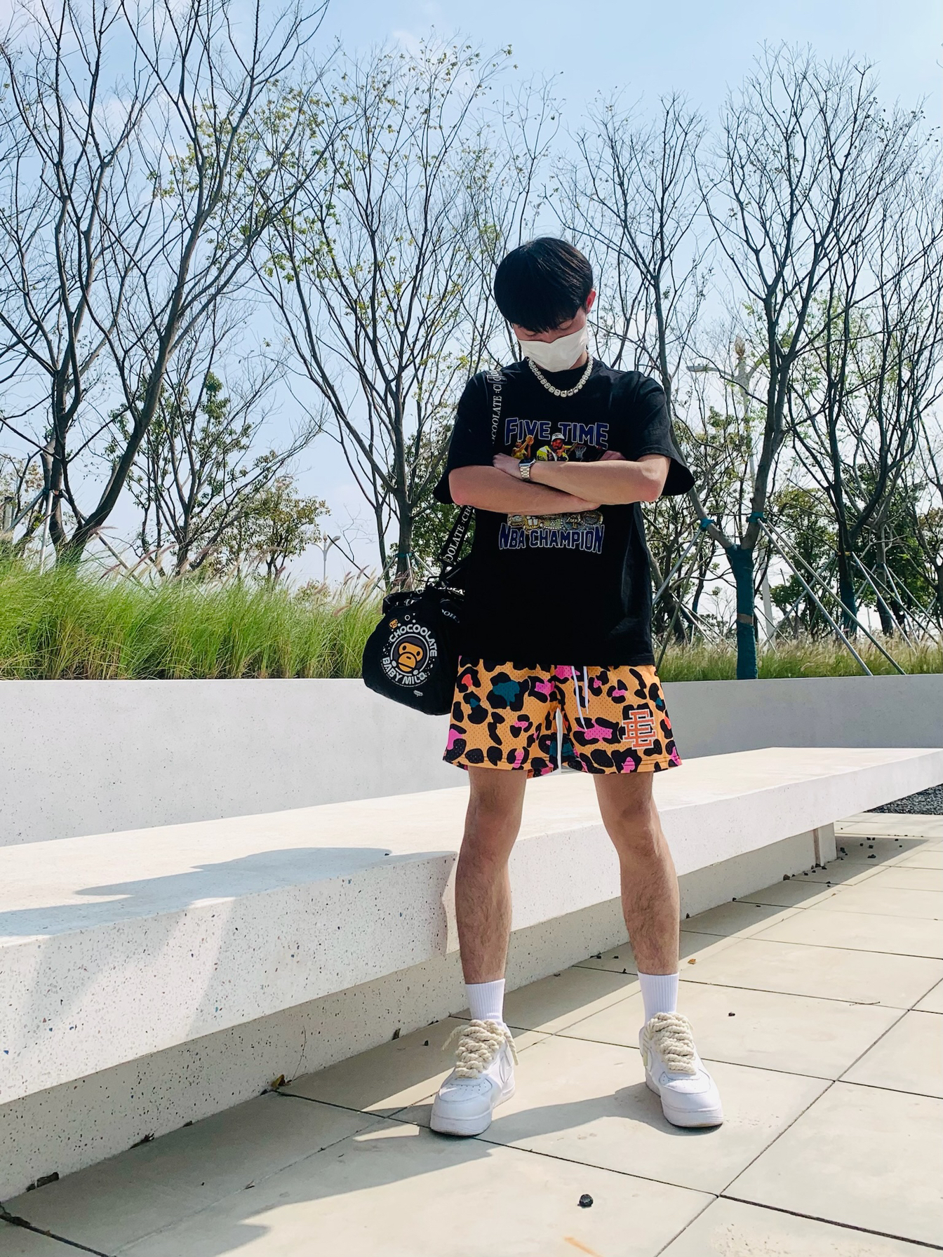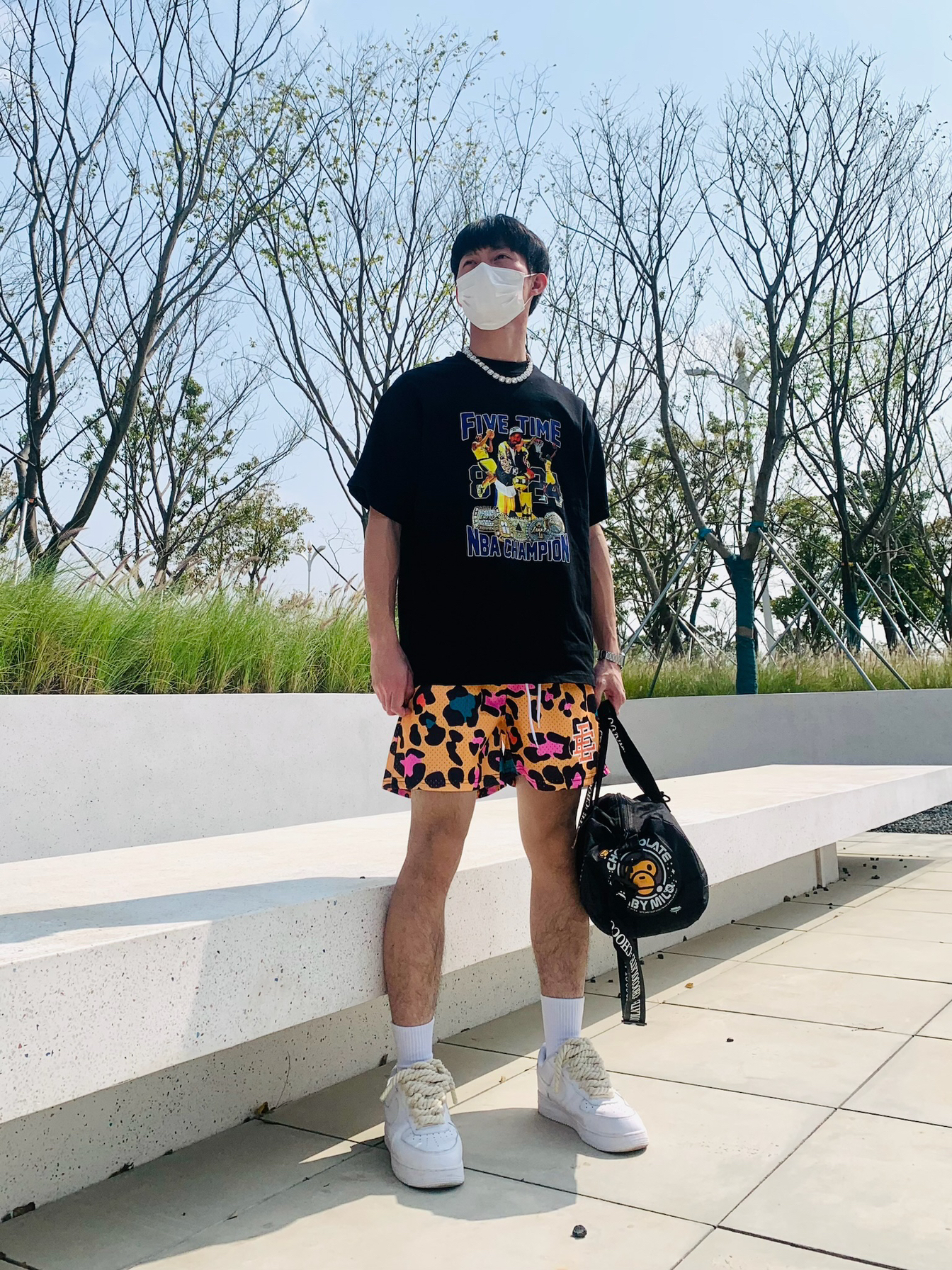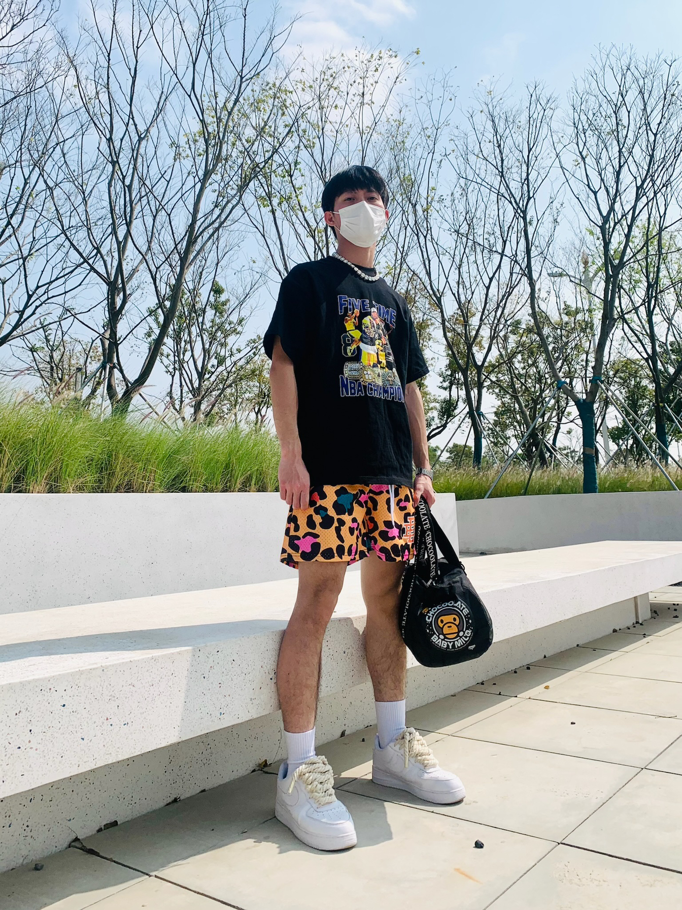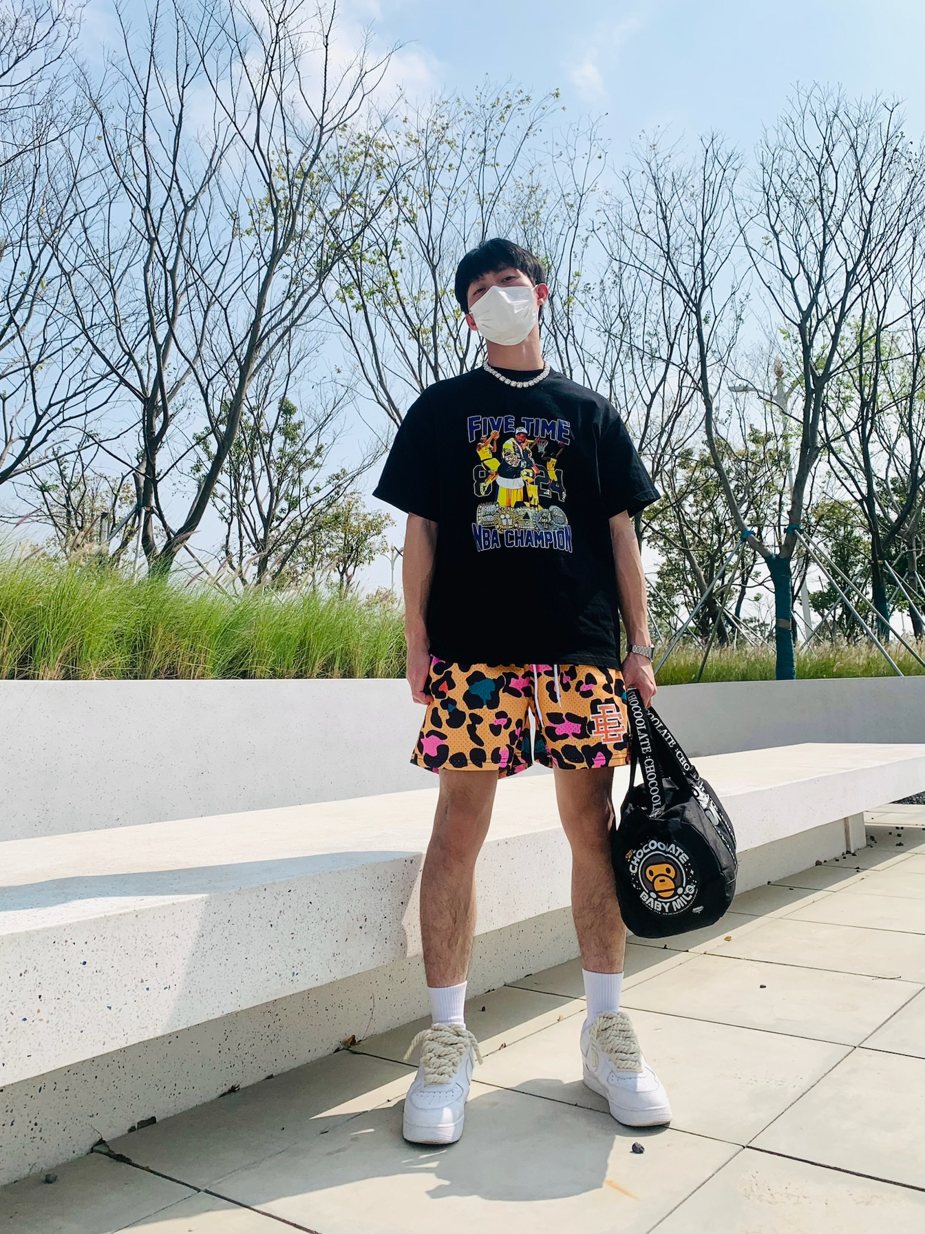 今天穿搭分享⬆️ Kobe图案数码直喷短袖➕⬇️字母印花美式短裤➕⚪️空军纯白夏天搭配这样美式穿搭出门不得迷倒一片人呢? 👕: 第76人类 🩳: IMA硬汉➡️tb🔍 👟:Nike Air Force 1 ⌚️:Casio