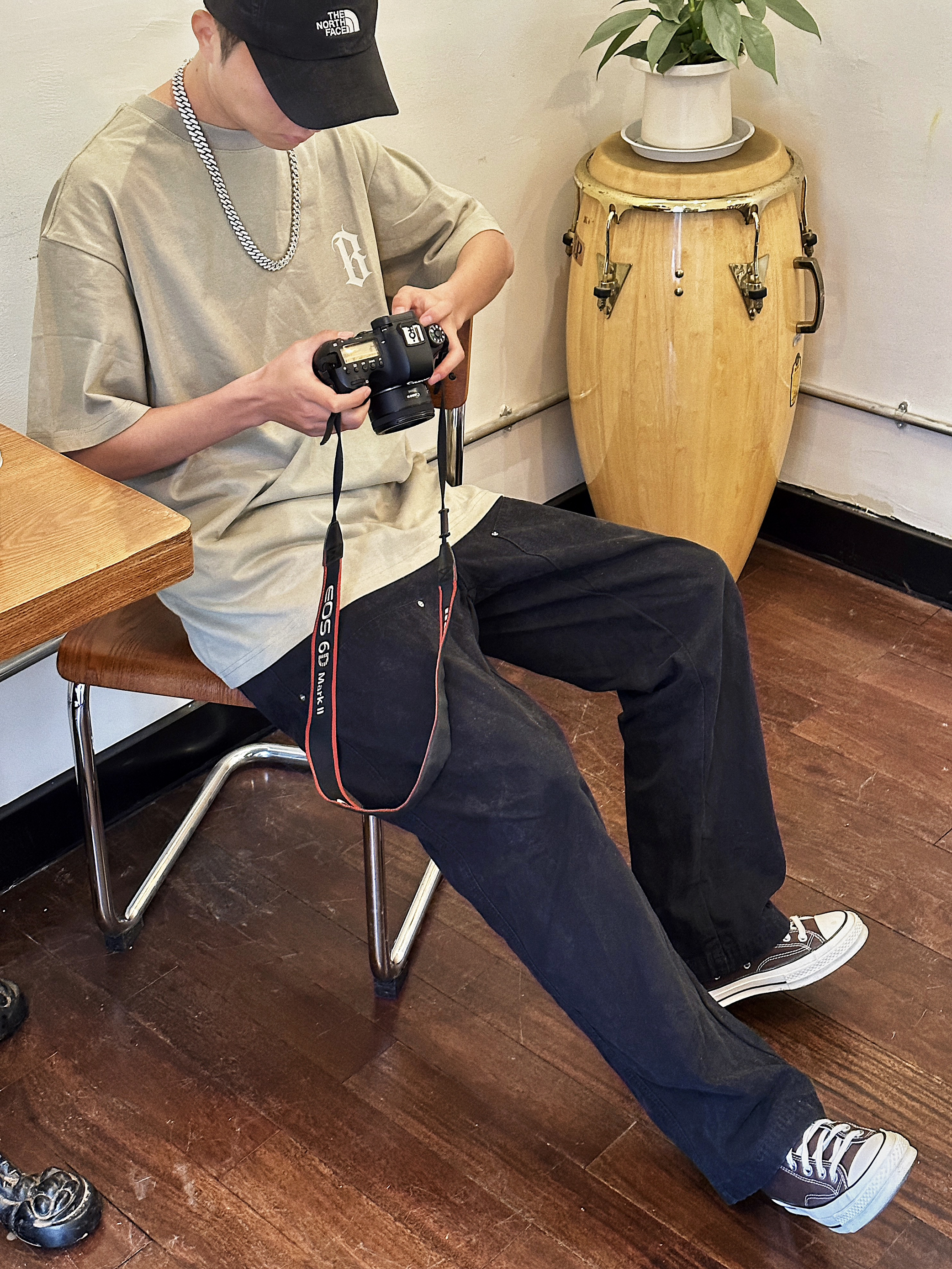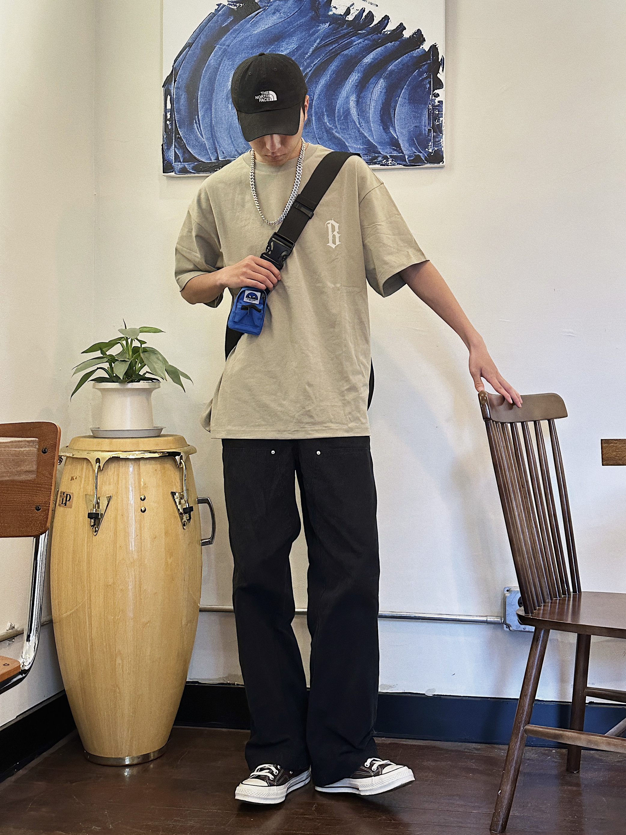 天气忽冷忽热 赶紧来咖啡店来一杯冰美式避暑 今日穿搭我选择了简约夏日风 logo短袖➕工装裤➕饺子包 简简单单质感满满~ 👕: boneless 👜: MYEDITION