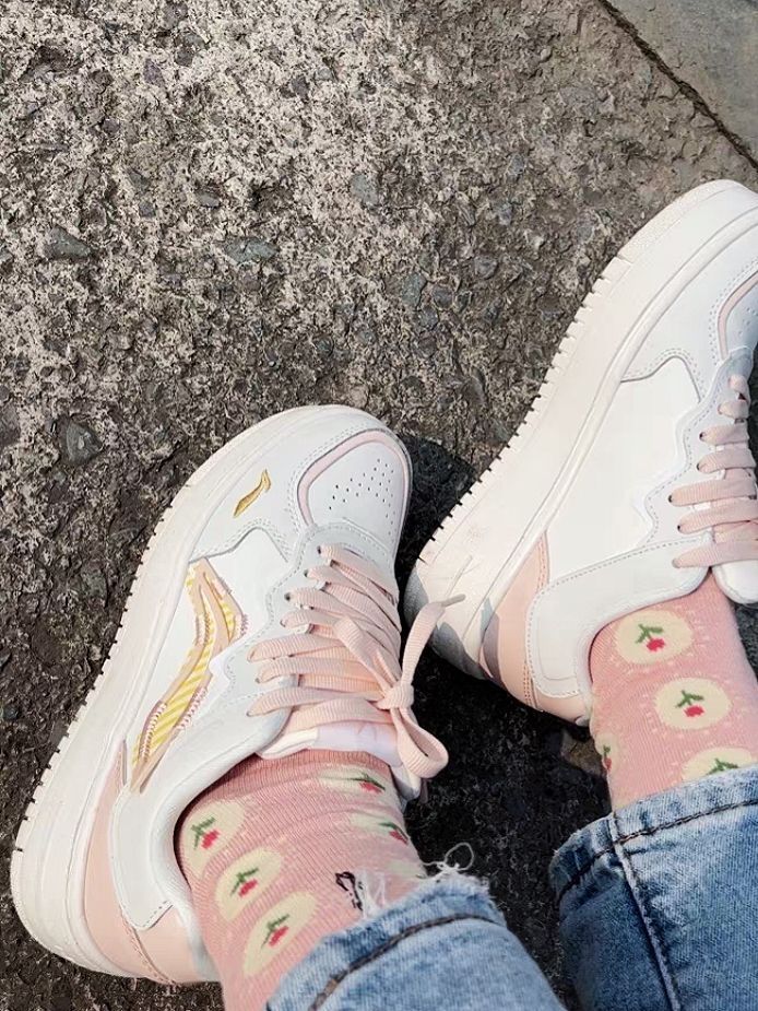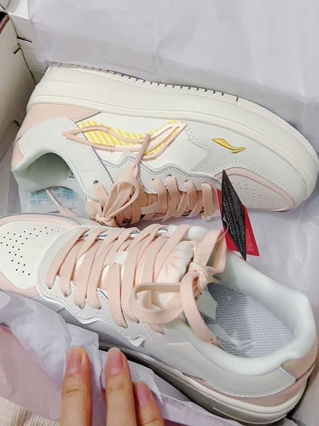 ✨鞋子:李宁起凤板鞋 👀外观:我买的是米白色/棉粉红,粉粉嫩嫩的,特别适合春夏穿🤭 ☁️脚感:穿上去很软,鞋底一点也不硬。⚡️不过可能是因为是新鞋,有点磨脚 🚶搭配:配了双粉色小袜袜🧦,简直可爱到犯规❤️平时穿牛仔裤,春夏穿可爱小裙子都可以搭配哦~