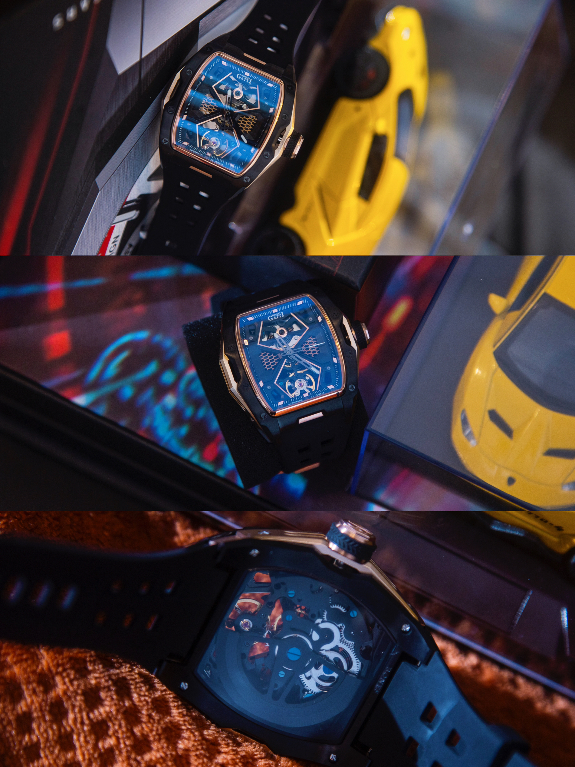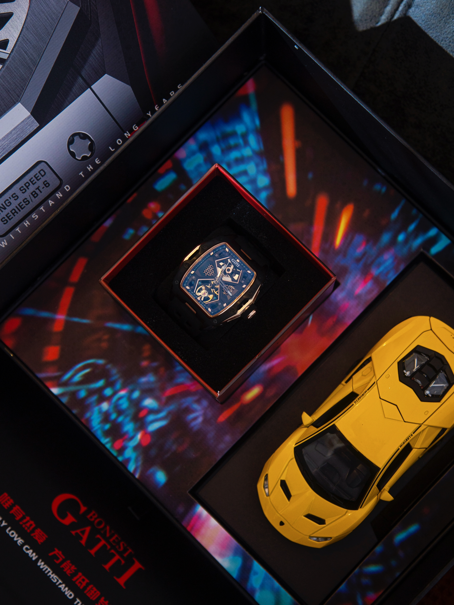 作为一个对各种设计感单品毫无抵抗力的人 对手表的选择也是格外挑剔 酒桶型手表长在我的审美点上~ 看看我最近拿下的布加迪王者系列超跑腕表 华丽丽的黑金配色 经典又不失潮酷感 镂空表盘 C字大弧形表壳设计很大气 还融入了跑车元素 就连表冠都是轮胎🛞样式 细节满满 礼盒还附赠一个跑车模型 穷玩车富玩表 这回直接把两者通通拿下了