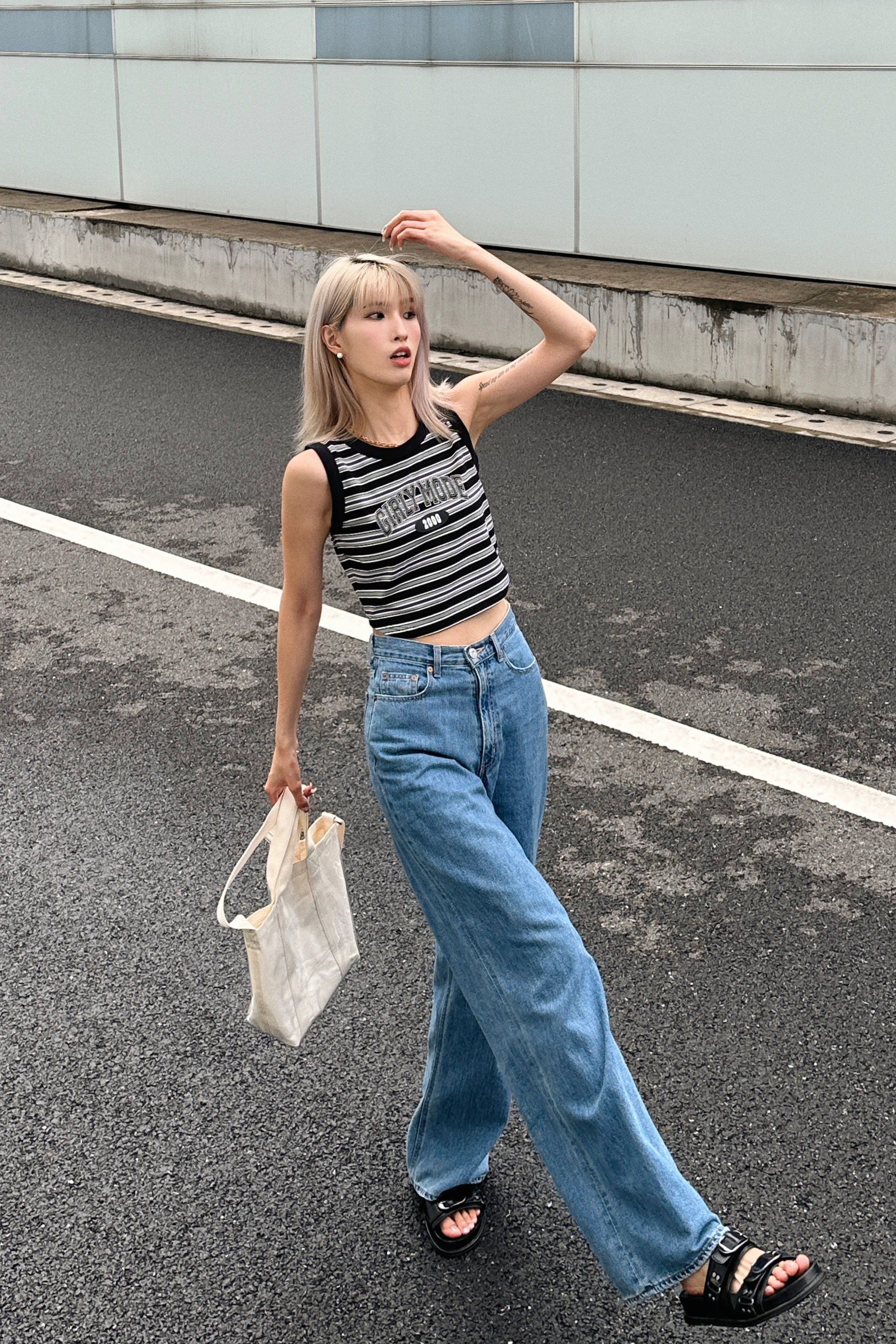 条纹单品是春夏必备啦 有时候不需要太多复杂的元素 简简单单的很耐看~