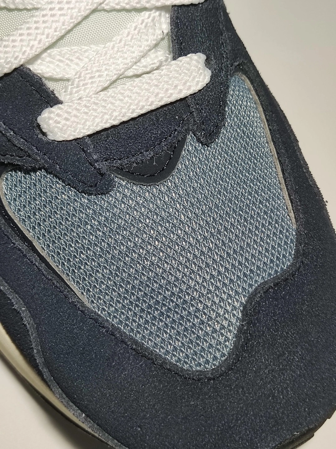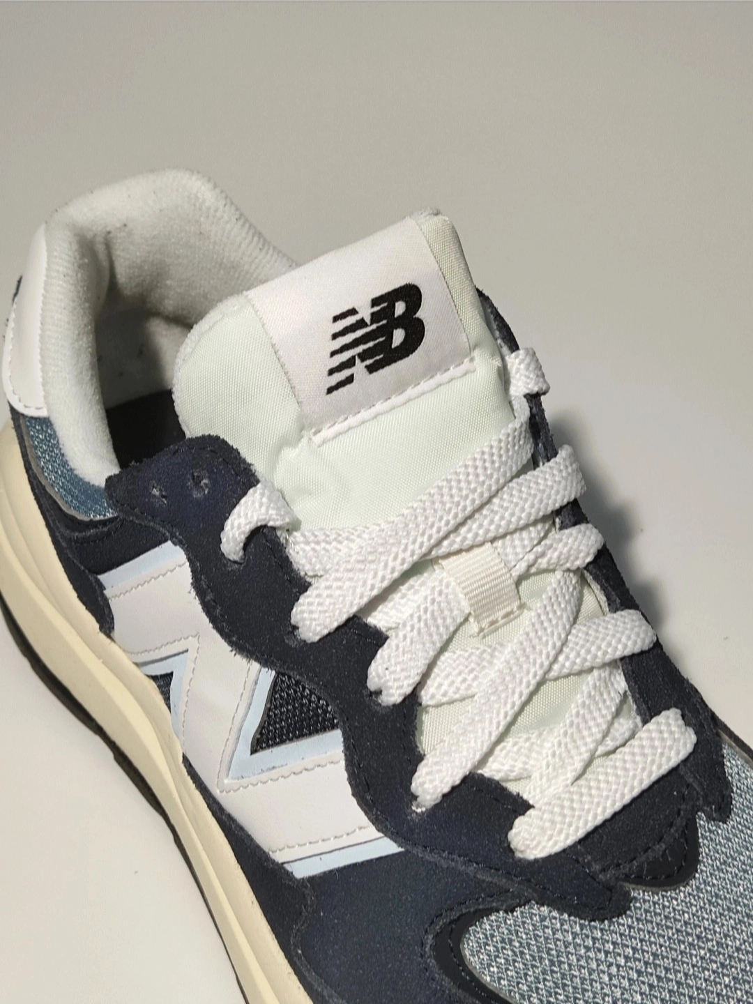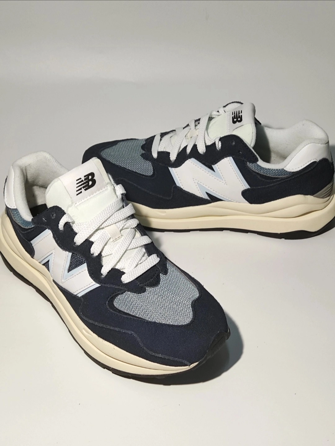 [WOW]双十一期间偶然发现了这双惊喜的通勤好鞋,说是海军蓝,但是真正到手之后发现做了鞋边是做了一些掉色处理的。 [装到了]相比较原本的海军蓝它的饱和度低了很多,加上偏灰的网眼和鞋身侧面LOGO的淡蓝,整双鞋子上脚竟有了一种莫名其妙的高级感! [大胆一点]这真是一件很有意思的事情,还别说上脚看习惯了之后越看越上头...... 现在这个价格入手5740系列真的太值了,而且配色也好看,马上就要迎...