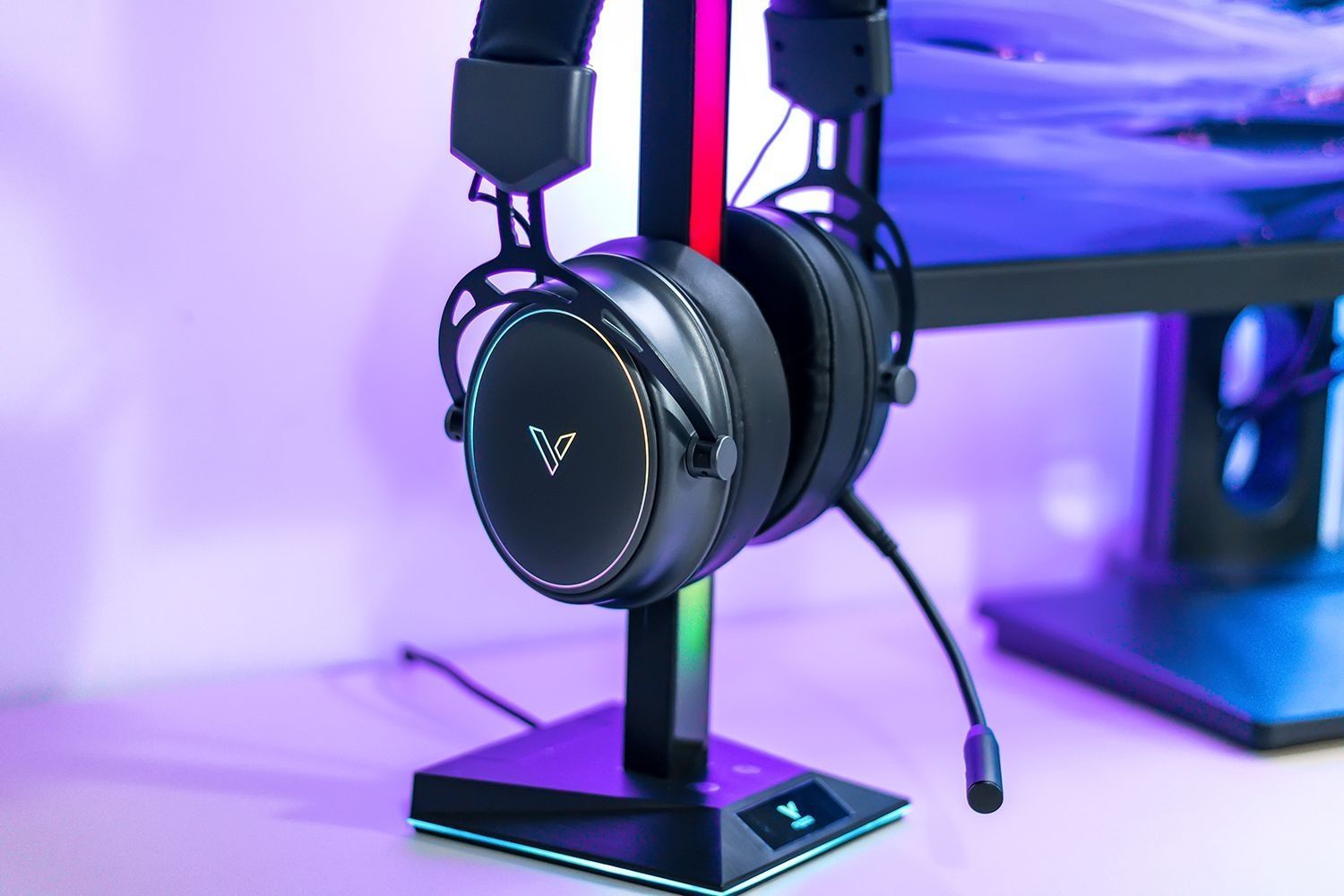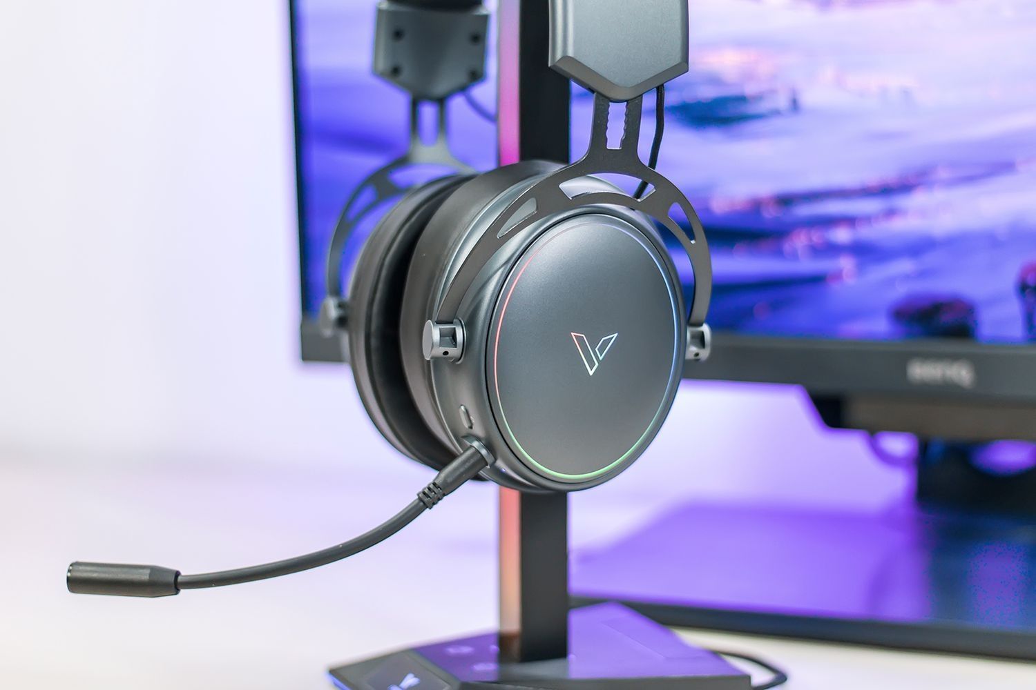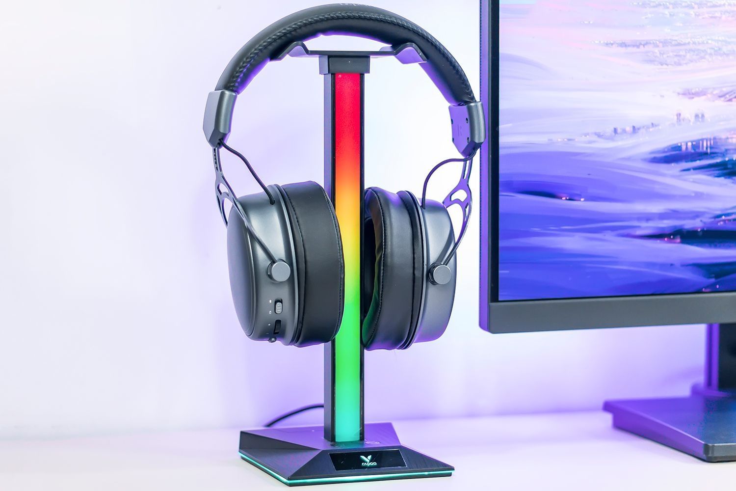 雷柏VH800游戏耳机造型设计简约沉稳,并没有追求棱角分明具辨别度的外观设计,RGB动态灯效仅为点缀之用,耳机体积尺寸适中重量控制得当,大尺寸耳罩柔软包裹性好,可将整个耳廓包裹进去无挤压感,不压顶不夹头,佩戴感受自然舒适,游戏耳机有着良好的设备兼容性,支持蓝牙无线与2.4GHz无线两种连接方式,既可连接电脑实现无延迟的游戏听音辨位,也可连接手机用于外出通勤时听音乐。 在实际游戏听音方面,游戏耳机搭...