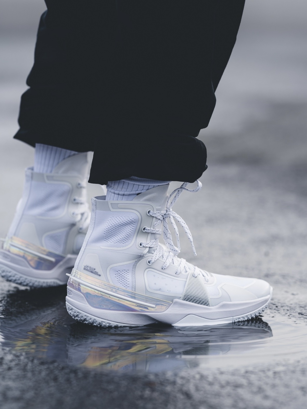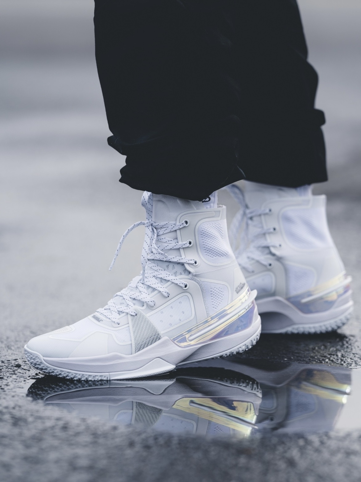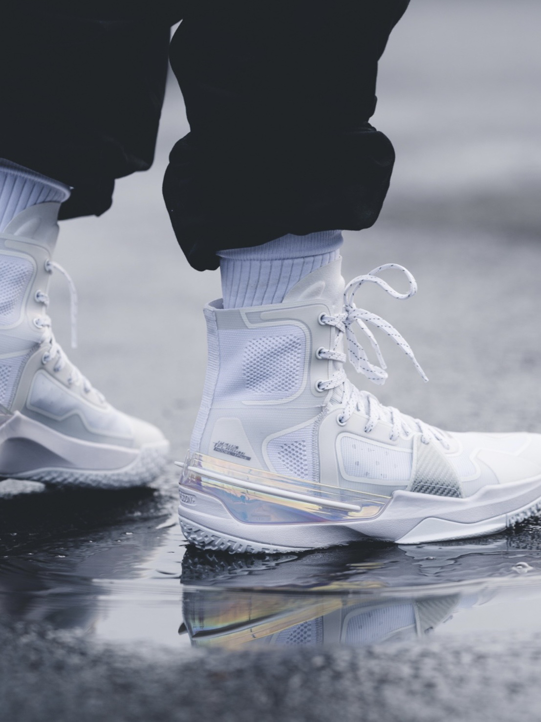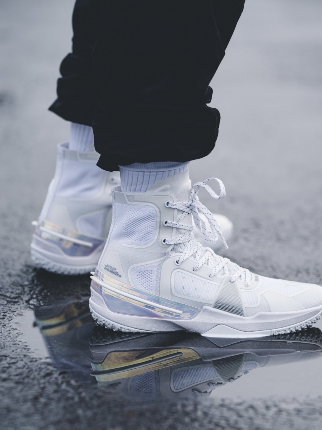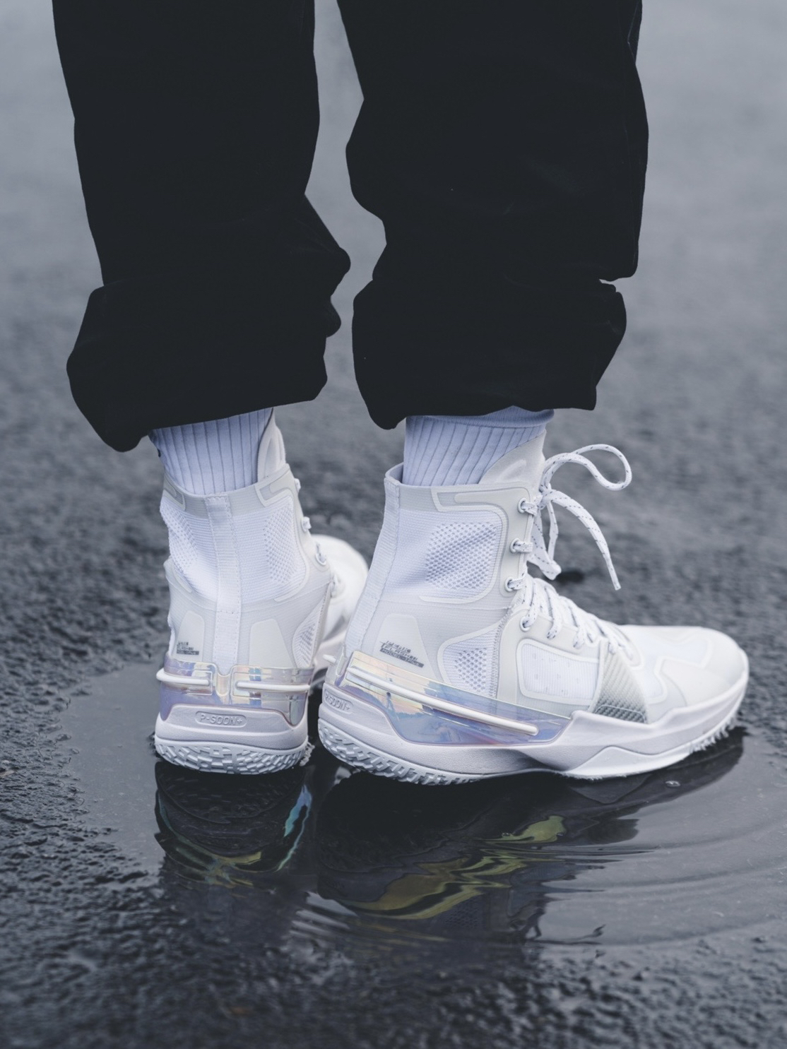 这次带来的全网首发上脚来自匹克闪现3精英版本首发配色气泡配色! 普通版本首发配色也是这一个,只不过我觉得超 高帮的设计在这双鞋子上看上去更加帅气 在简单的穿着过程中,脚感方面我发现比普通版本好上了不少,中底是全掌匹克轻弹框架,填腹全掌P-soon+,可以理解为 全掌超临界!而且解決了后跟掉跟的一个现象! 其他体验的话,就交给其他实战博主给大家解答!目前静态方面体验还是非常不错的!(因为 尺码不是我...