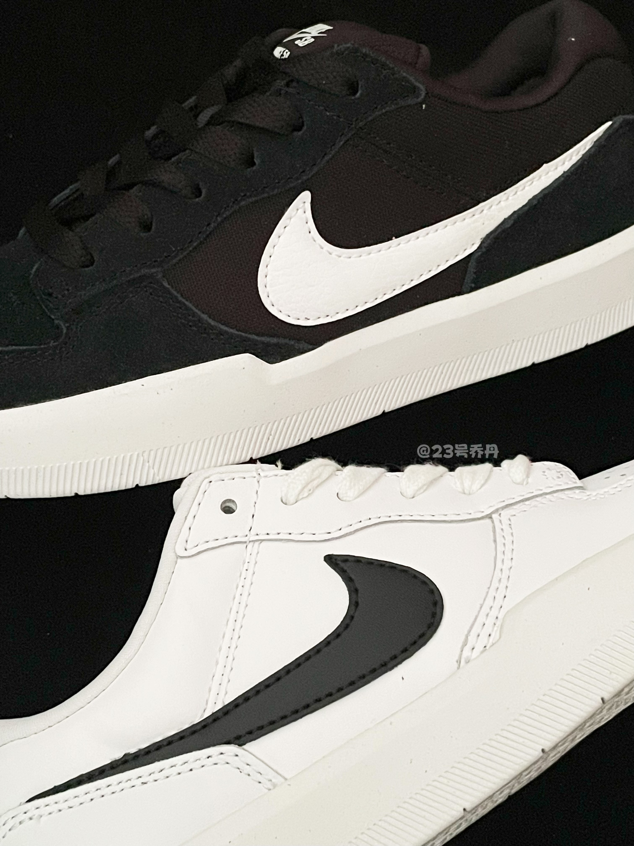 今天给大家分享两双经典配色的球鞋 Nike SB Force 58 白黑&黑白 🌟白黑鞋款以白色为主色调 辅以黑色点缀鞋身细节 鞋面运用了光滑皮革材料 易于打理 白色的中底和同色蜂窝状橡胶底收尾 🌟黑白鞋款则以黑色为鞋面主色 鞋身细节处由白色点缀 鞋面运用了翻毛皮+织物的拼接设计 打理起来会麻烦一些 不过质感不错 同样采用了白色的中底和同色蜂...