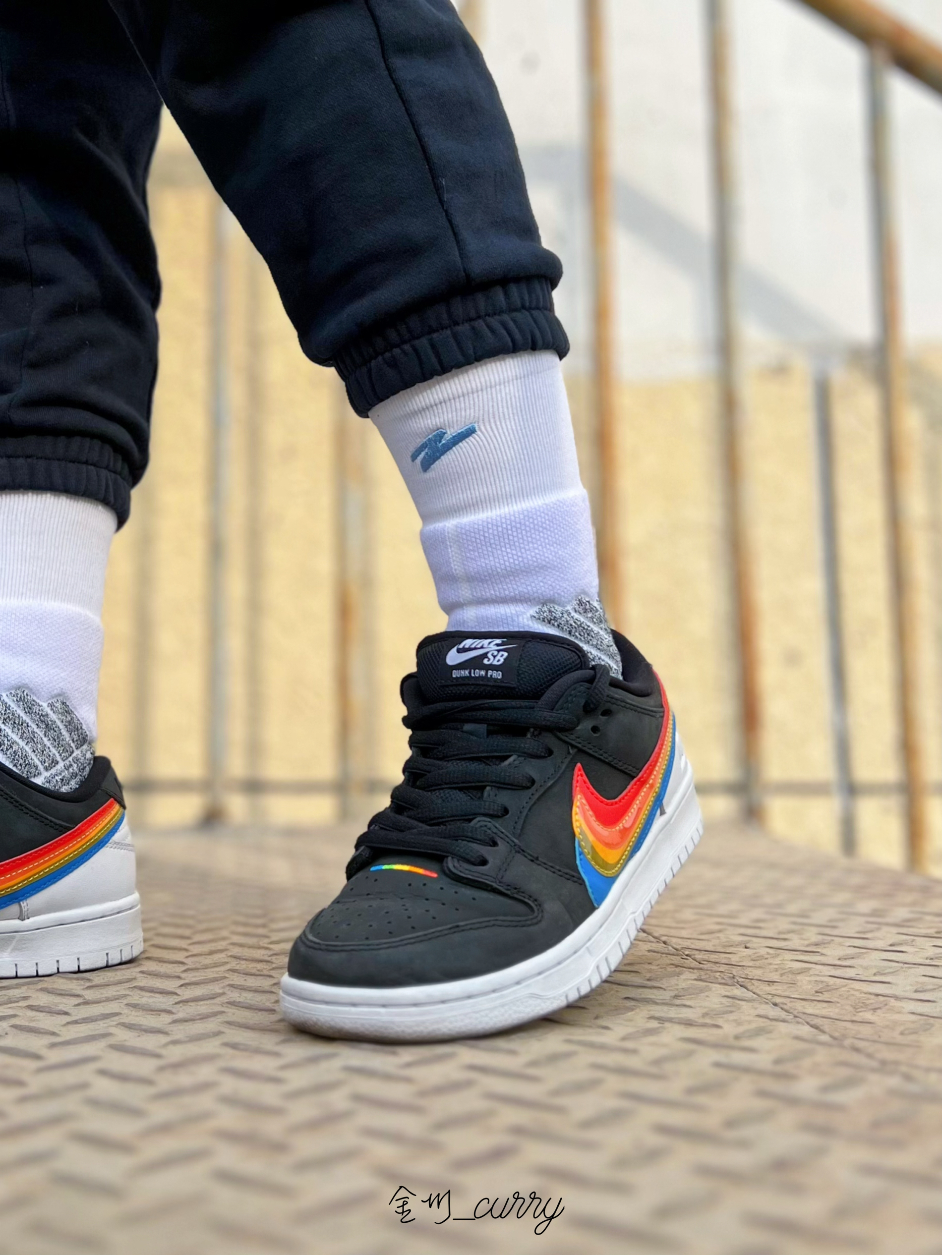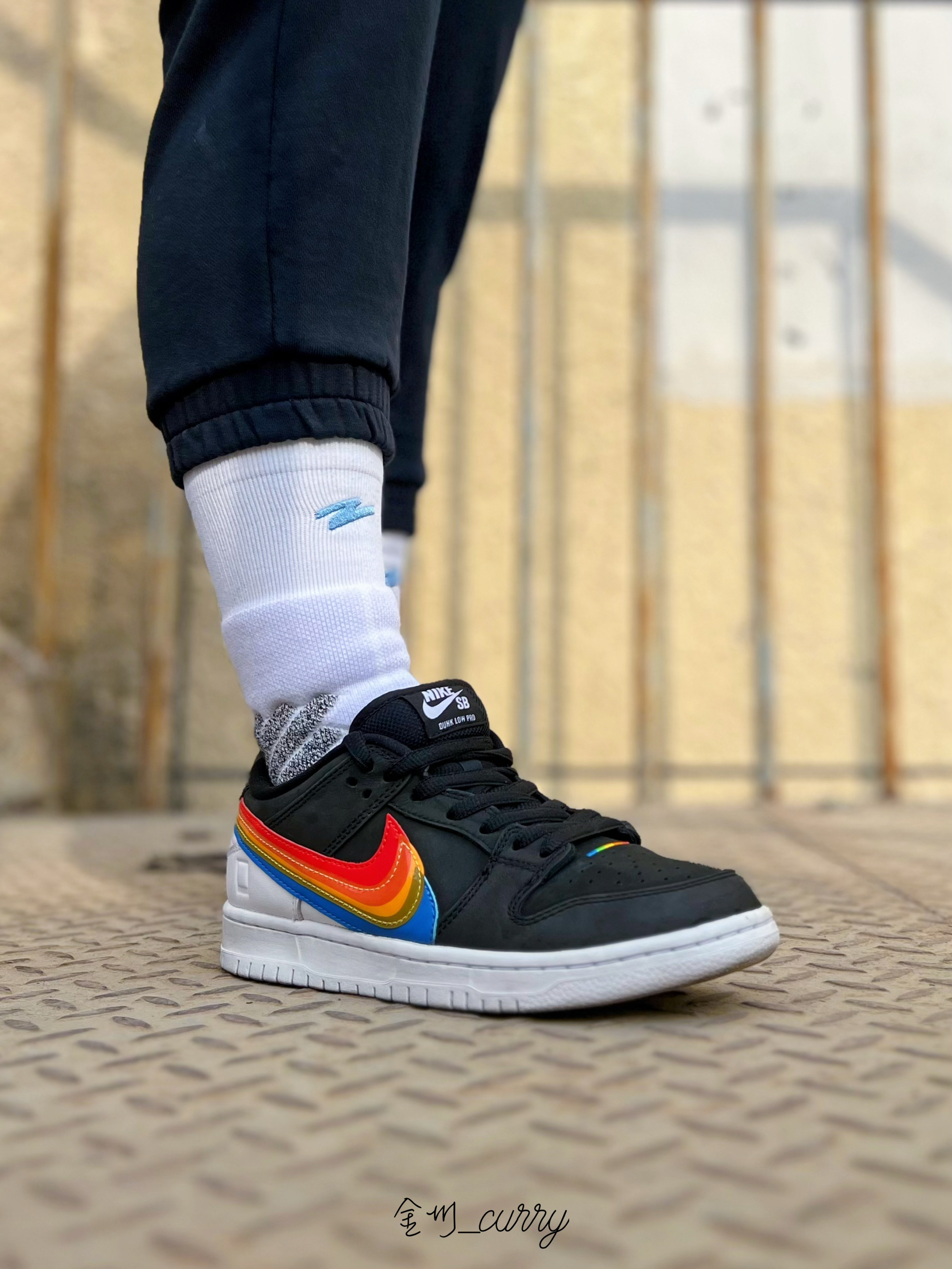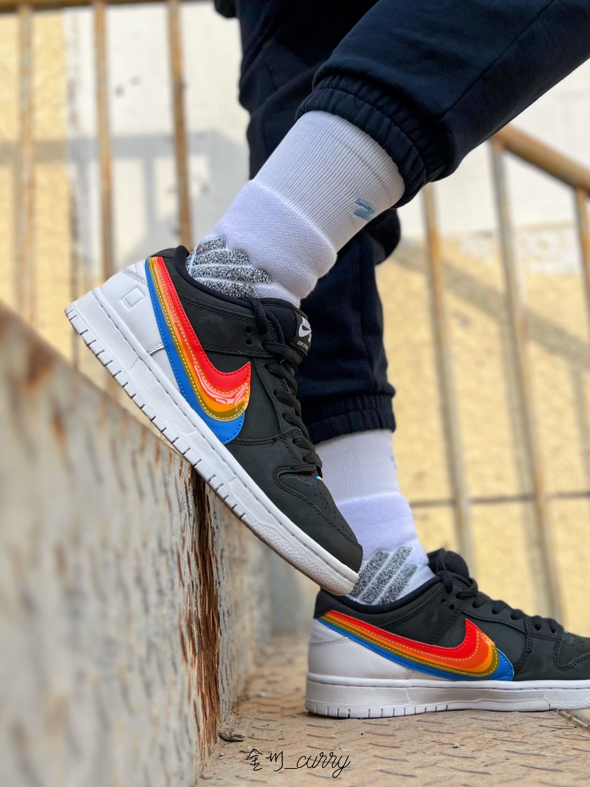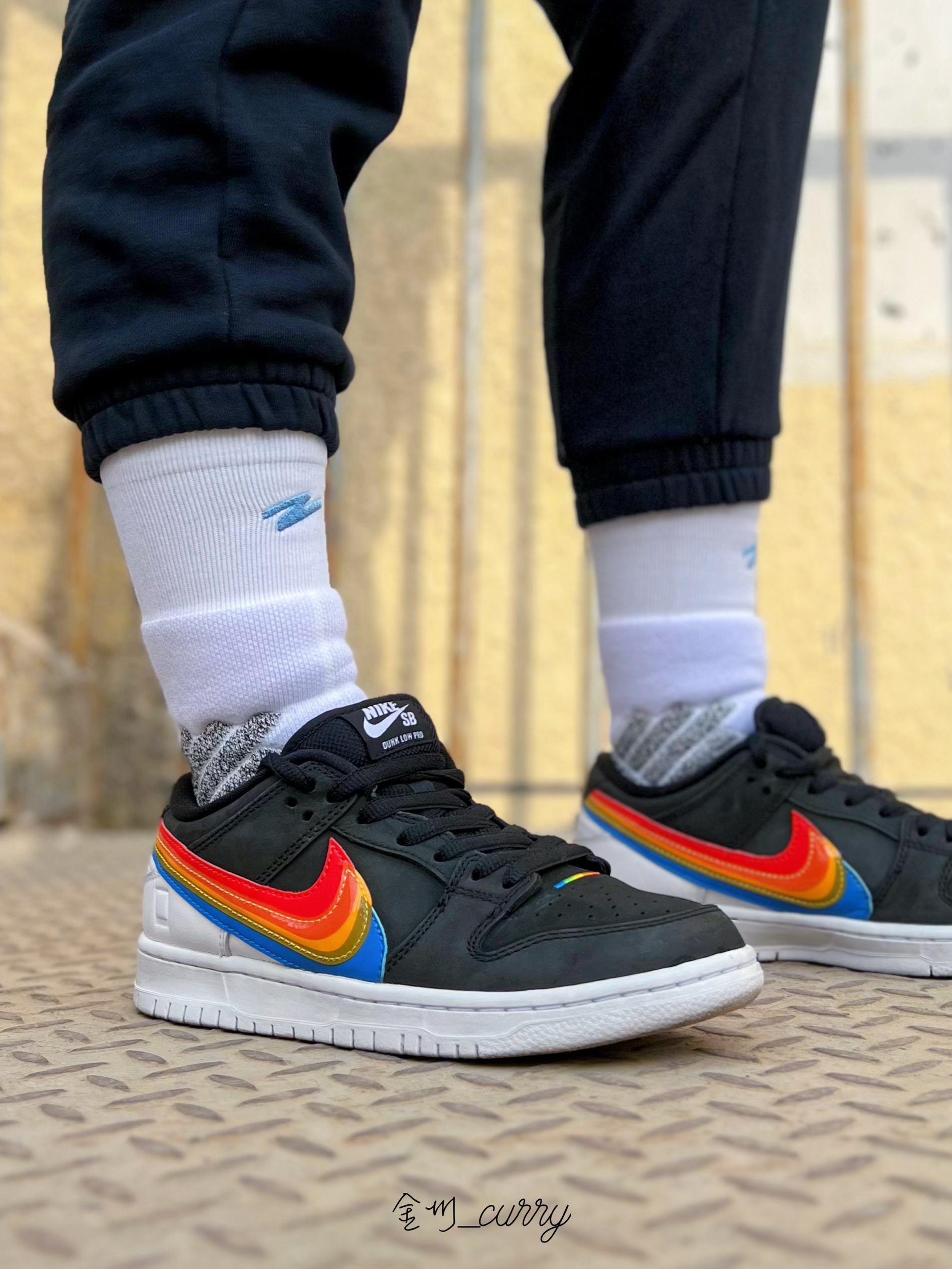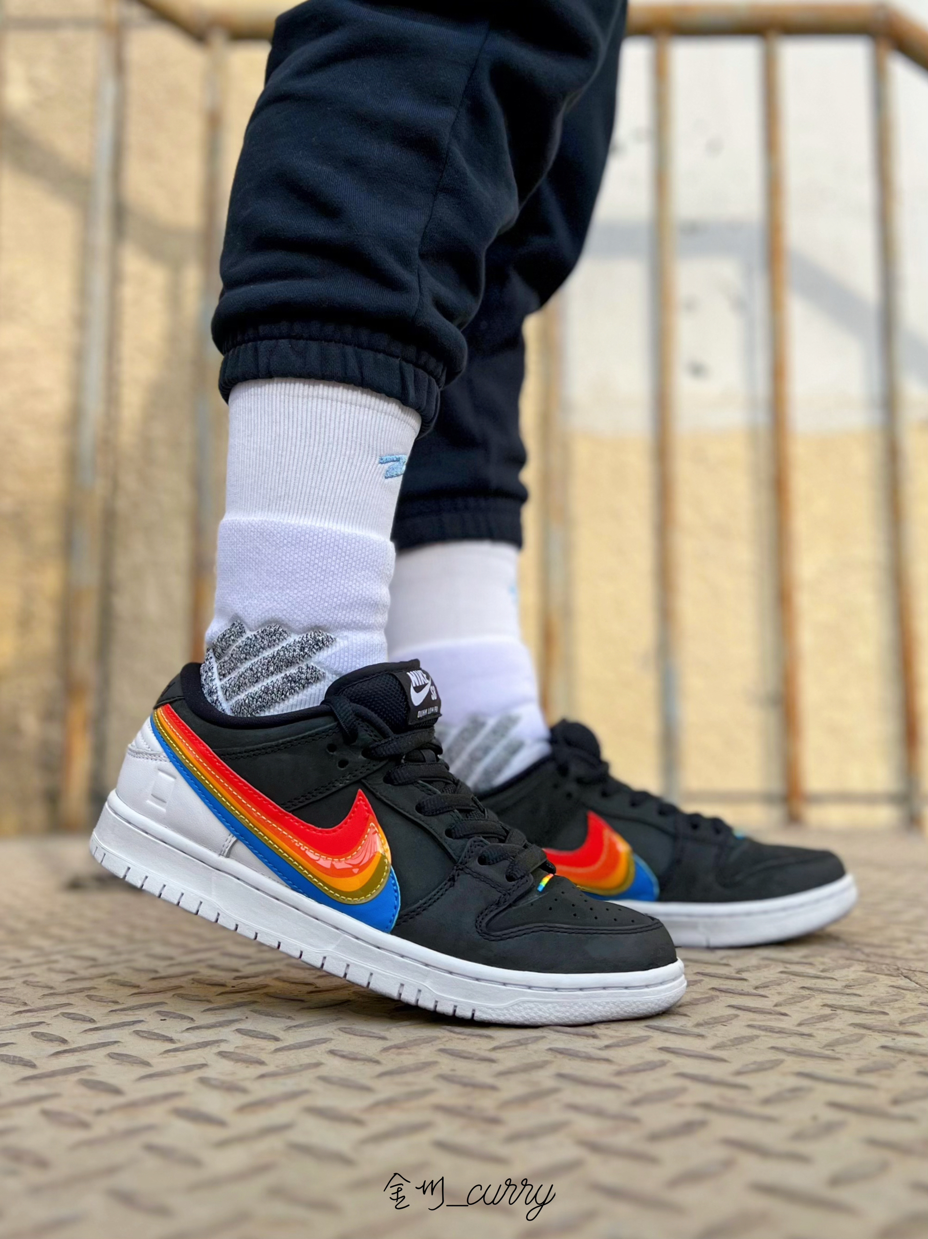 冬天一过又到了可以穿板鞋的季节了!Dunk依旧是我的首选,近期上脚了这款著名相机品牌Polaroid联名Dunk SB来和我一起看看效果如何吧~ 首先颜值真的是相当高!黑色的鞋身搭配白色的后跟及中底部分,形成鲜明的撞色设计,十分醒目!侧面彩虹般的Swoosh很有特色,整双鞋小细节也非常多,不愧是联名款!彩虹的设计彰显品牌元素也带来满满的吸睛度,实在是太爱啦! 袜子我依旧选择的是有志者UZIS斗...