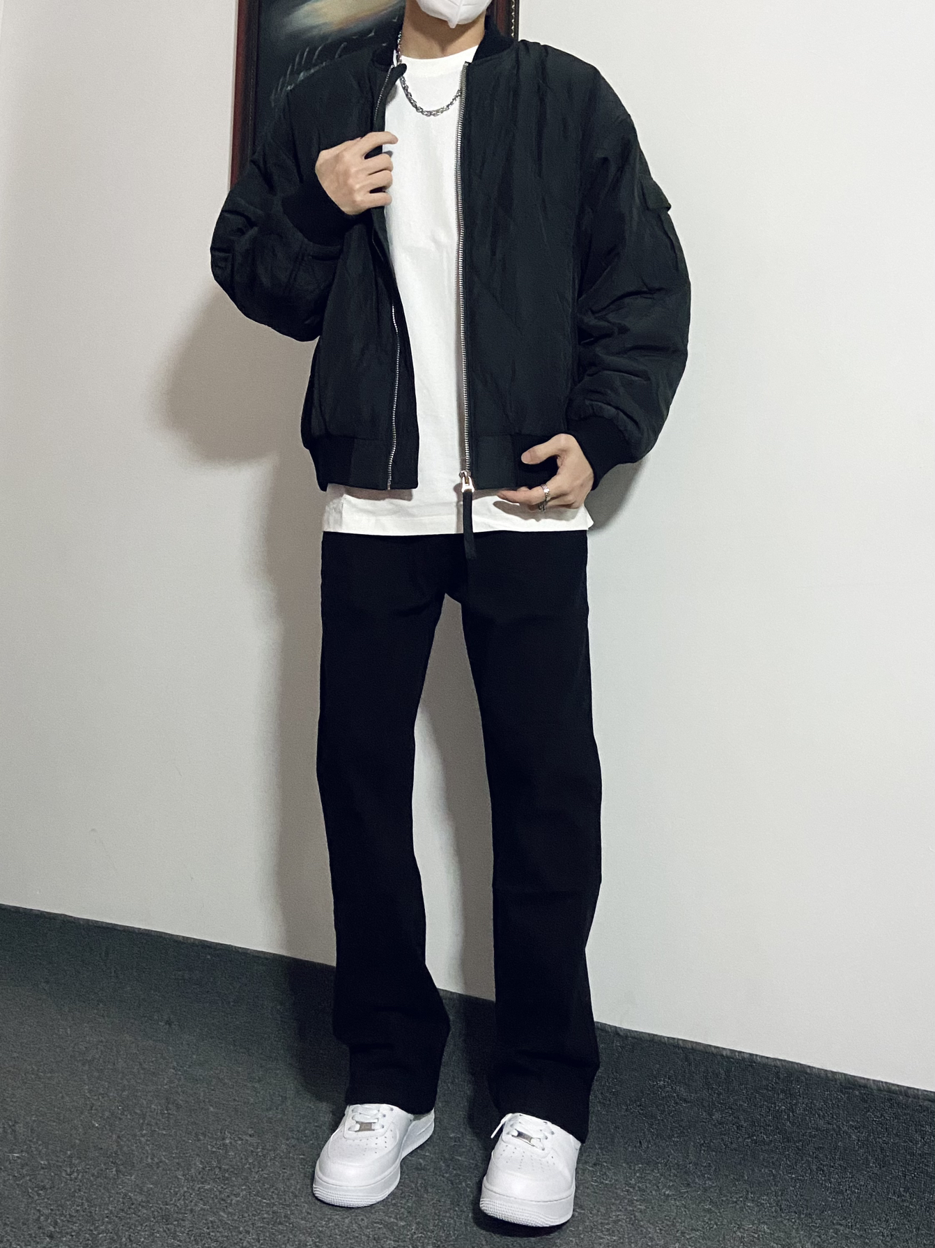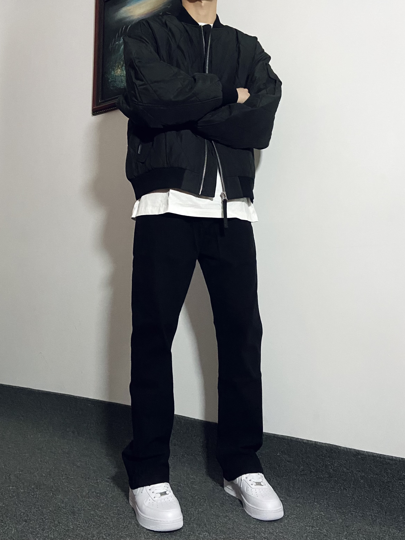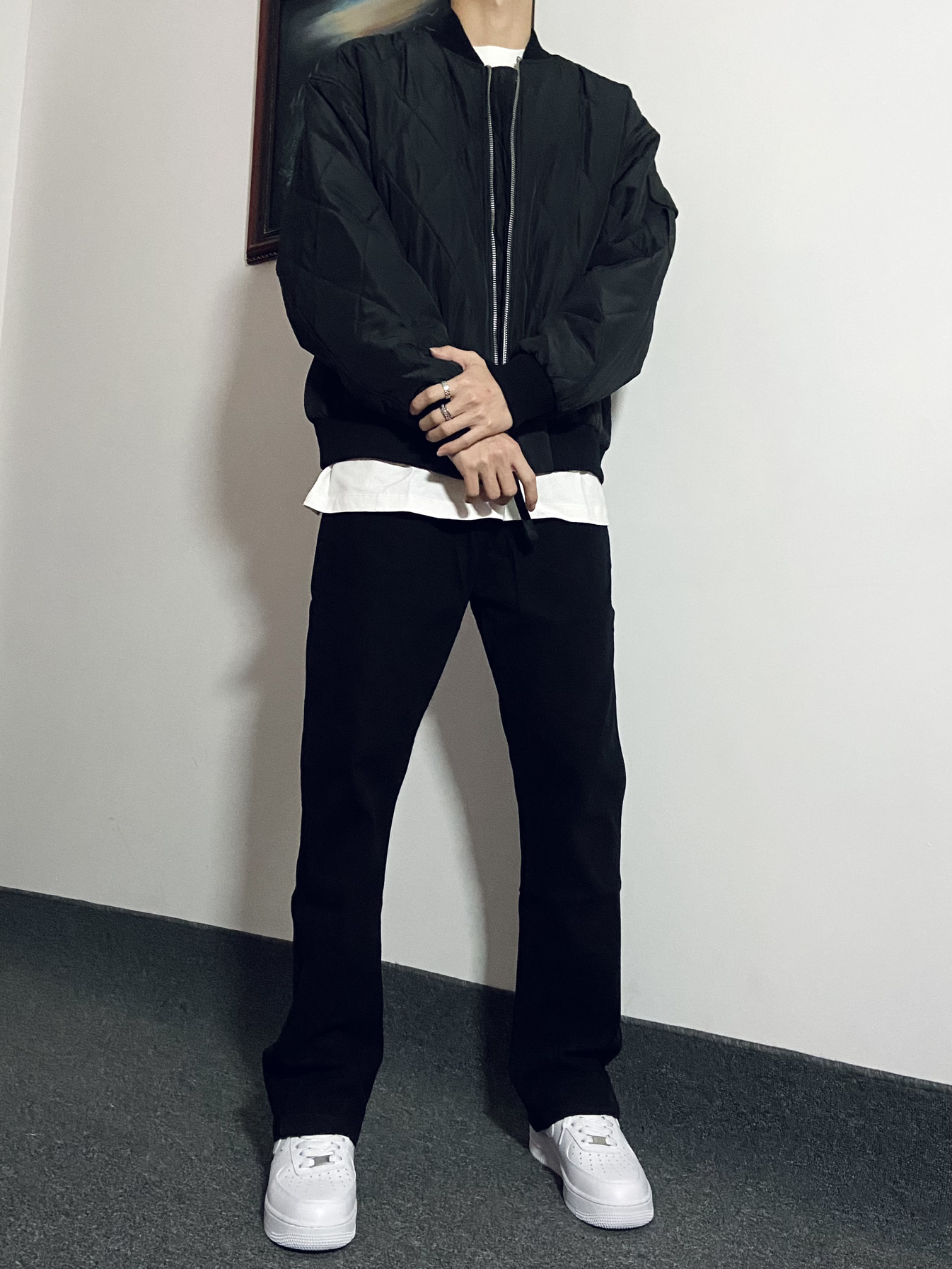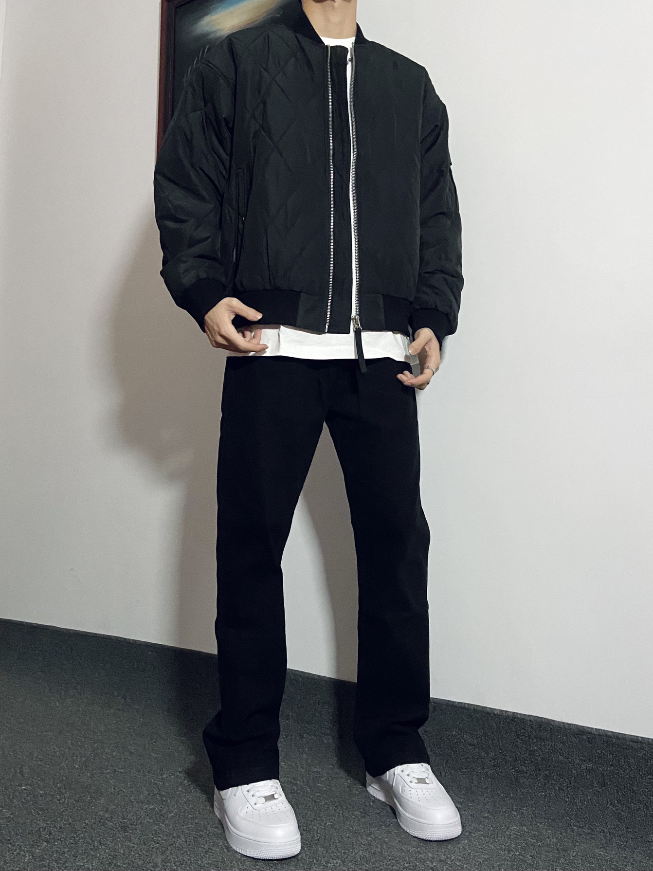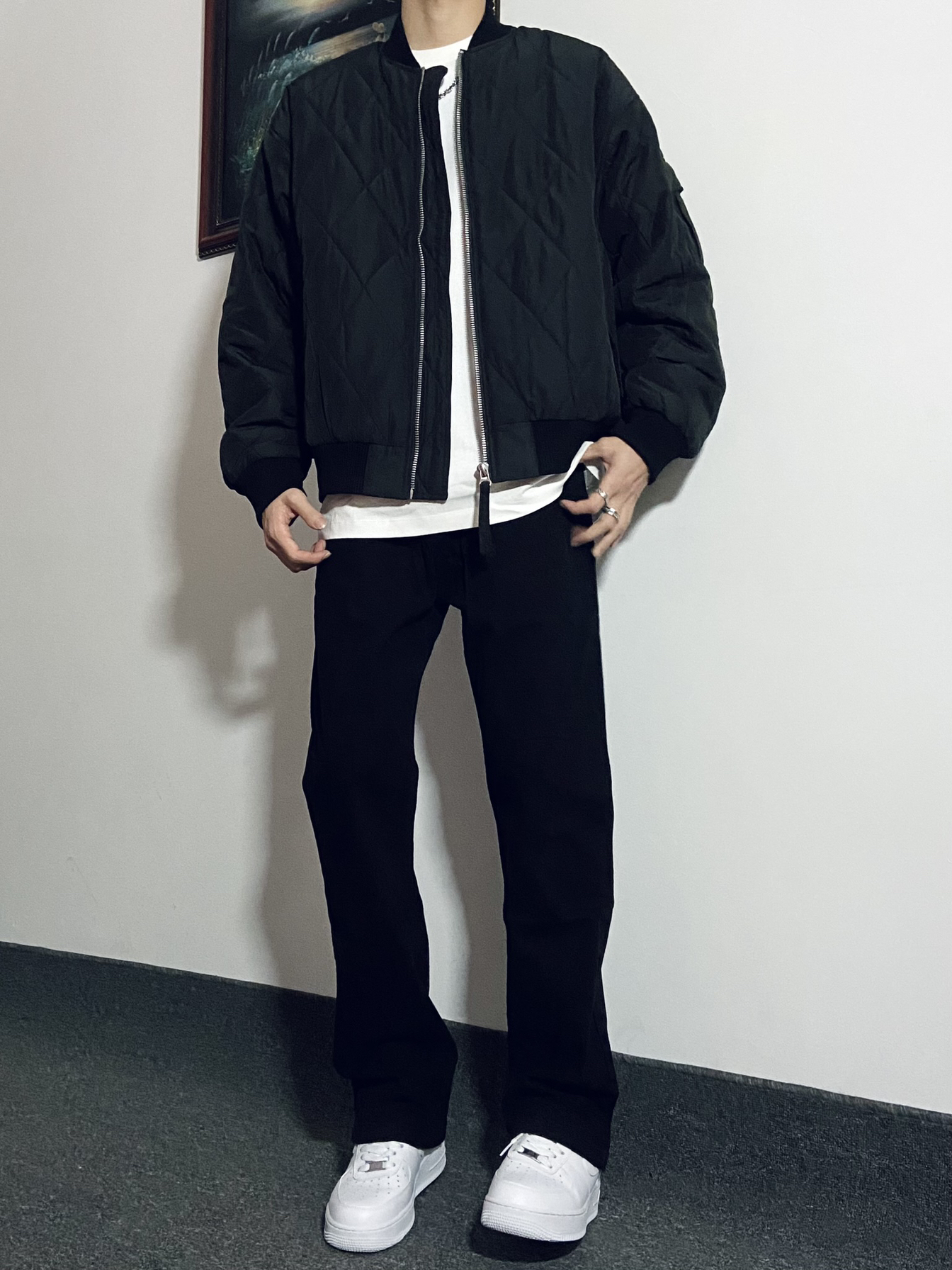 🙋♂️身高|体重:181|130 今日份Ootd: 黑色夹克内搭白色打底➕黑色休闲裤👖 简约高级穿搭真的很🆒 👔这件夹克短款版型真的太好看了!很显身材😌 内搭一件稍微长一点的白色打底衫帅呆咯🈶️ 裤子版型特别修身显腿长!裤脚处微款设计爱了☝️