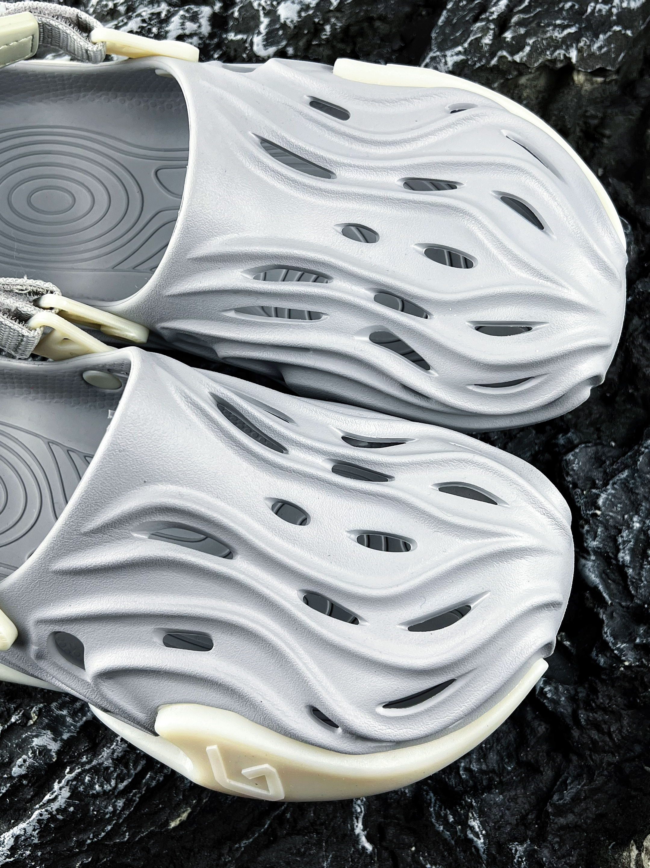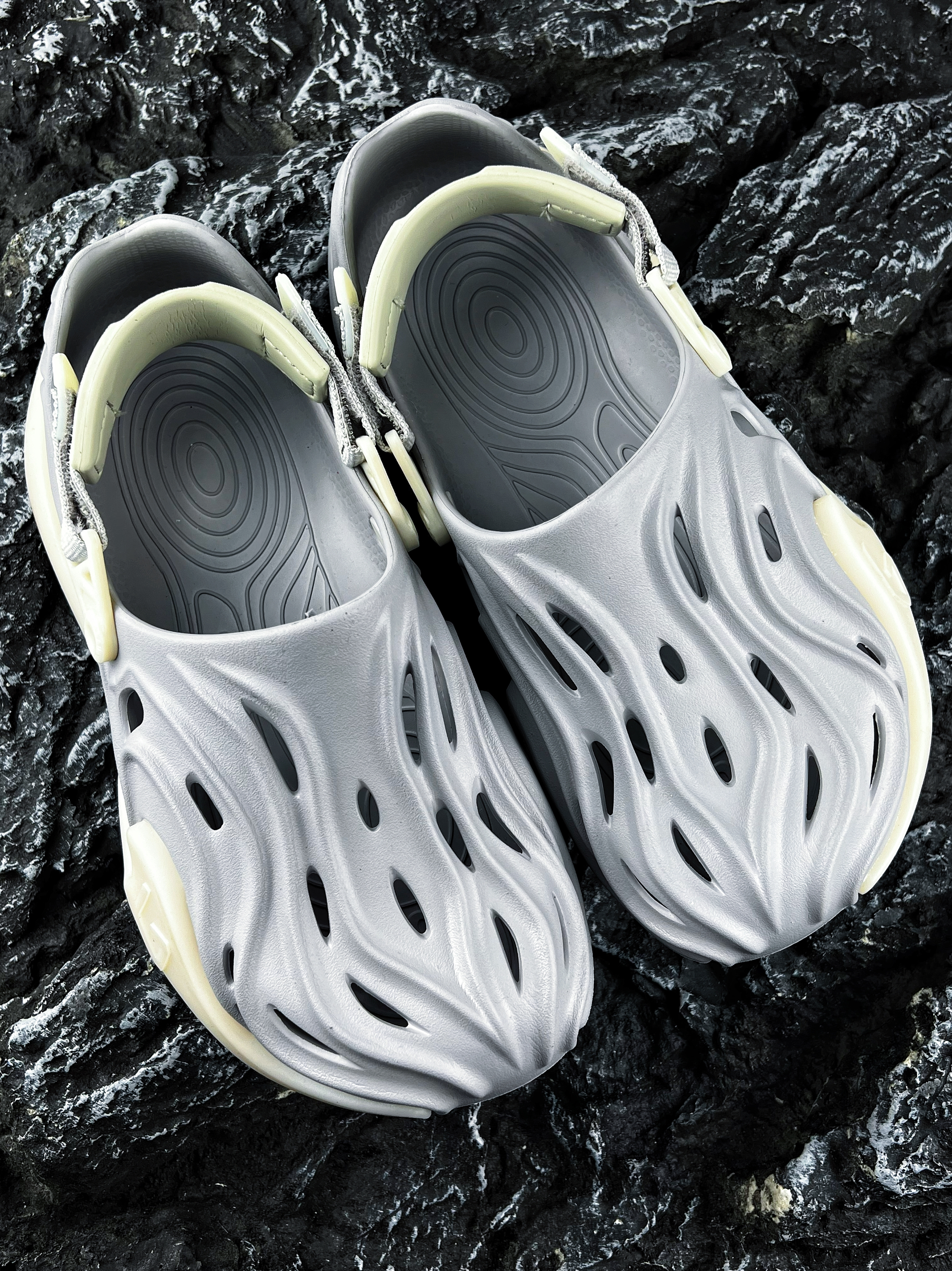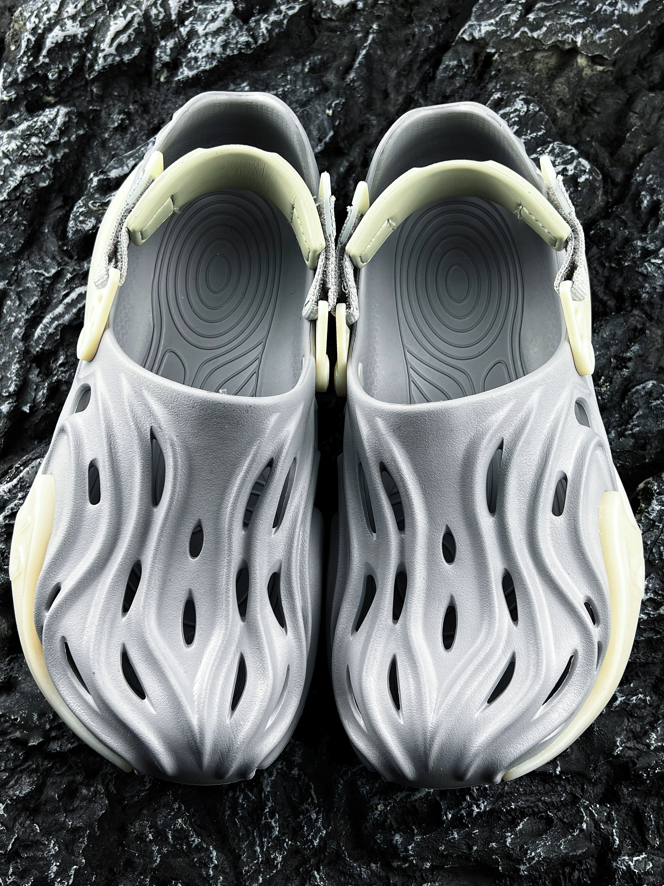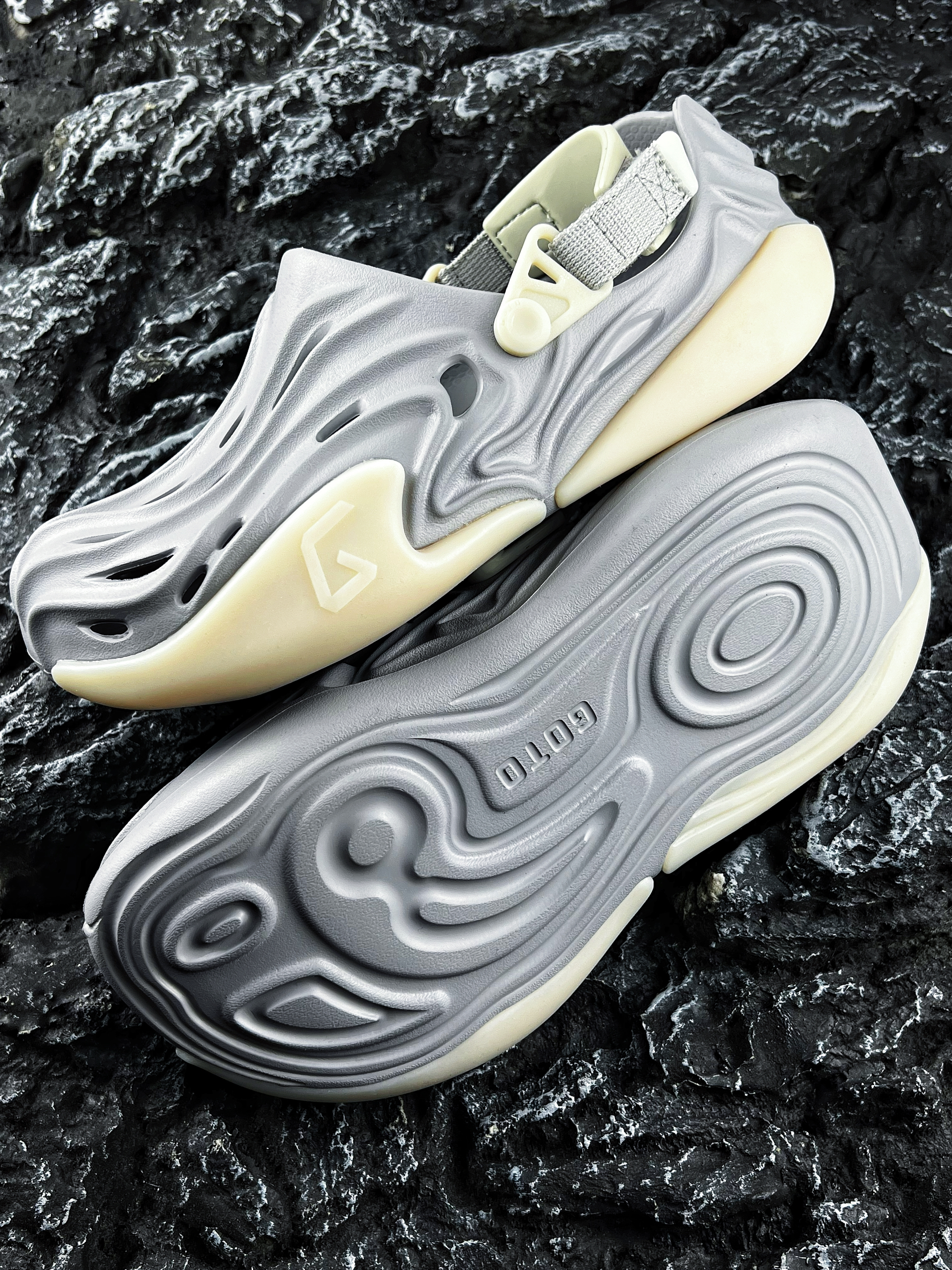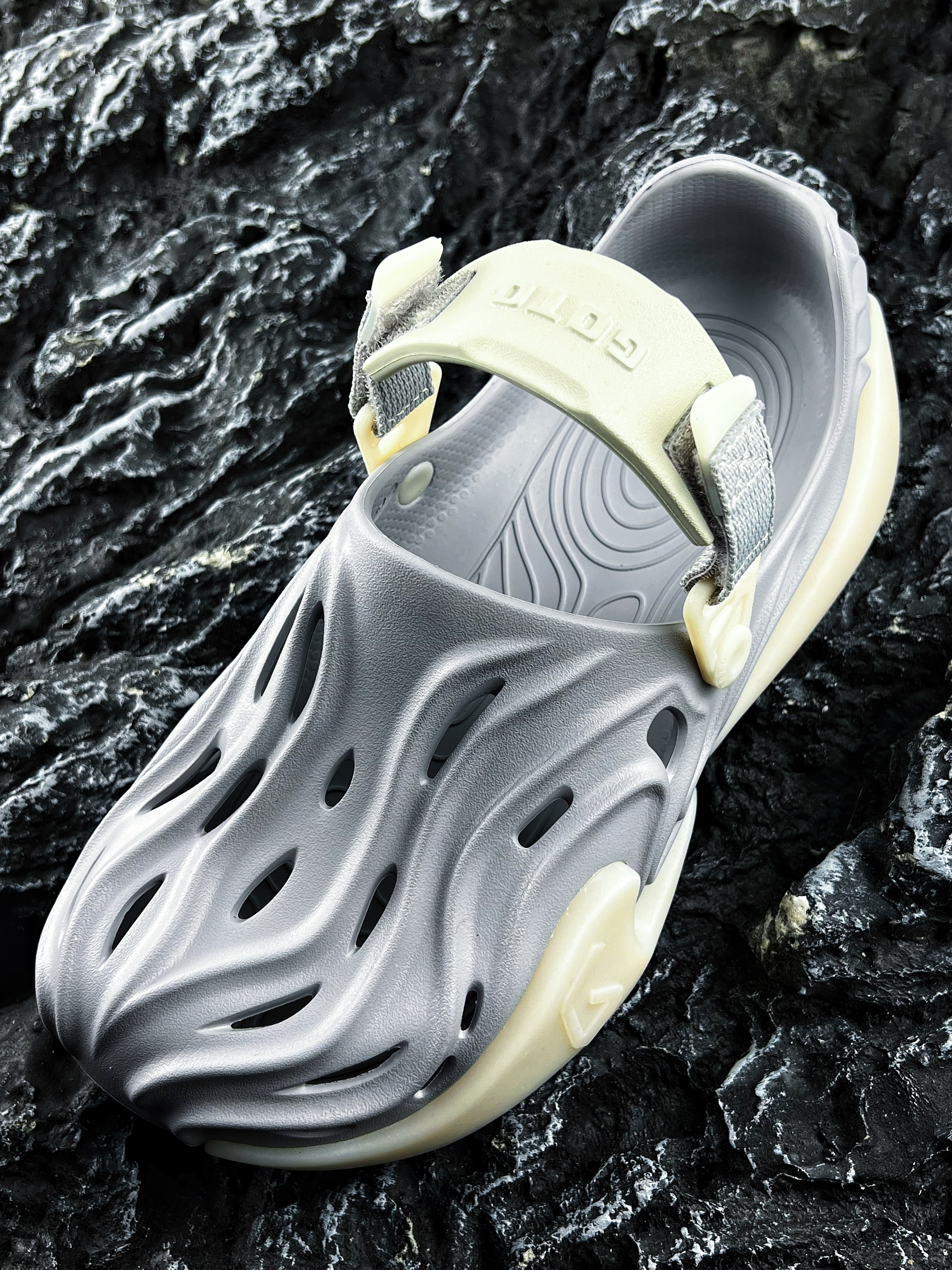 ✨哈喽大家好、这里是你们的老川! 今天为大家分享一款个性十足的潮酷拖鞋 便是这款GOTO 星云系列洞洞鞋 元祖灰 流畅的线条设计以及洞洞造型 加上百搭的元祖灰配色 整体的外观颜值还是蛮酷炫的哦 最令我喜欢的是它的夜光效果 放到晚上真的是太炸裂了!!! 可以说是一款潮流时尚的自穿好鞋 尺码建议正码就行