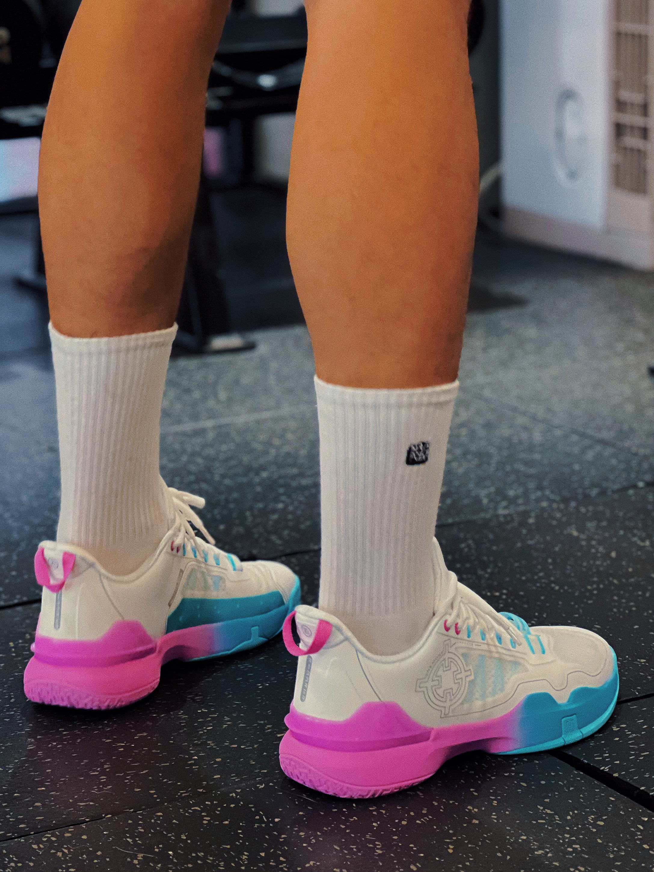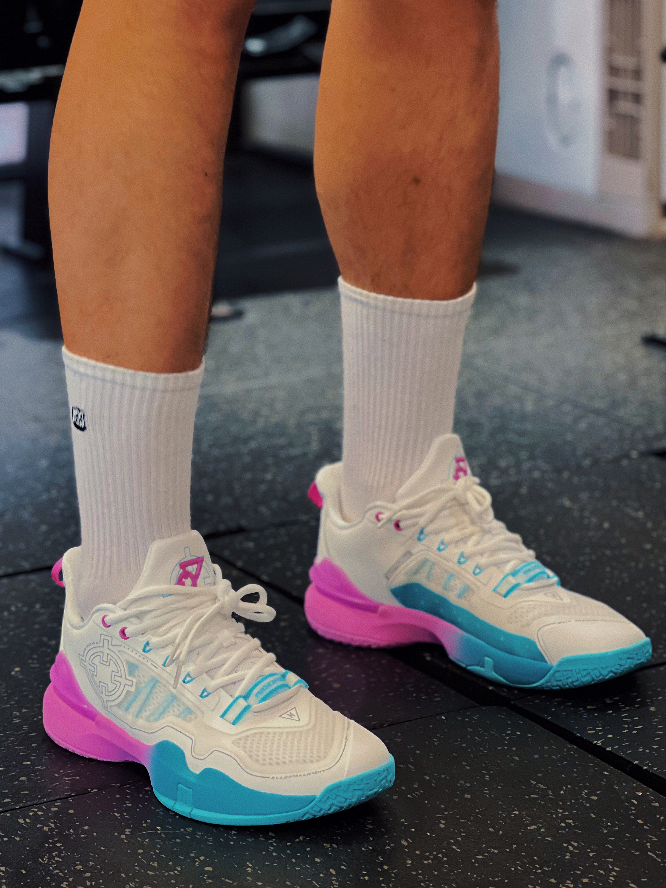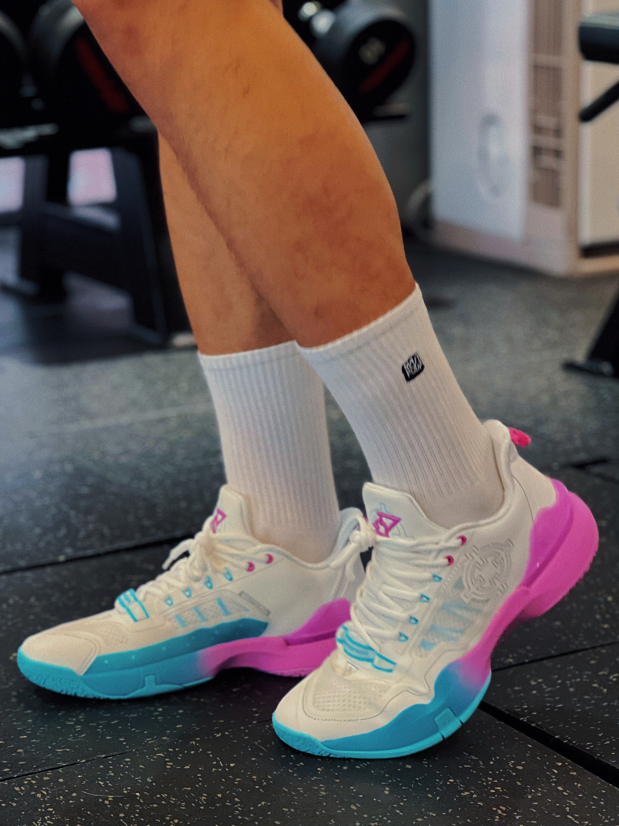 👟球鞋标签:准者 RIGORER 氢2冰淇淋 减震防滑耐磨低帮 篮球鞋 珊瑚白紫 加强版 🚶身高:192 🦶鞋码:46 🖼适合风格:篮球 实战 运动 🤔上脚感受:回弹十足 鞋面舒适透气 配色靓丽 👗穿搭建议:白色运动长袖➕黑色运动短裤 整体鞋面紧密包裹,内置异形记忆泡棉,稳固脚跟部位,防侧翻非常OK,透气mono网纱鞋面、加厚泡棉鞋口、环抱式TPU支撑,带来更加舒适稳固的运动休闲穿着体验...