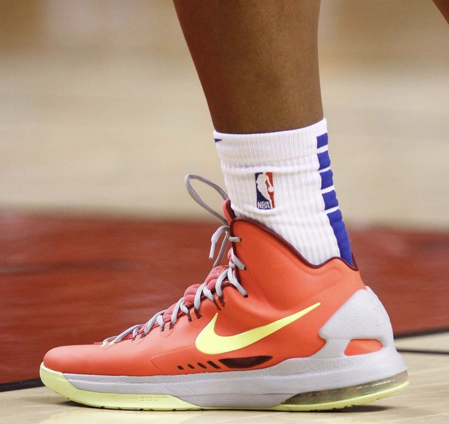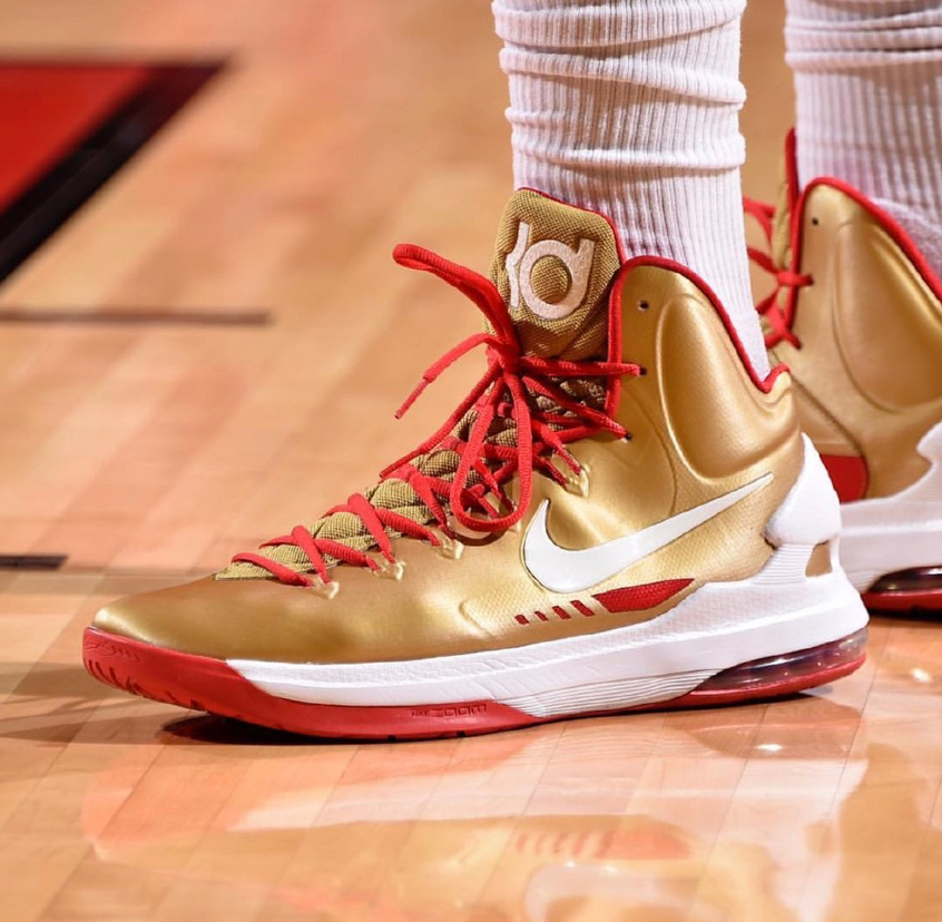 名称:Nike Zoom KD 5 上市时间:2012年 配置:Hyperfuse、前掌zoom+后掌MAX AIR+全掌phylon、XDR 适合场合/场地:外/内场 代言球星:杜兰特 关键词:实战之上 简介(设计灵感,设计师,关键科技,重大事件): KD5是Leo Chang为杜兰特设计的个人第五代战靴,为了响应杜兰特的要求,鞋子再度回归到高帮款式。鞋子设计延续了以往杜兰...