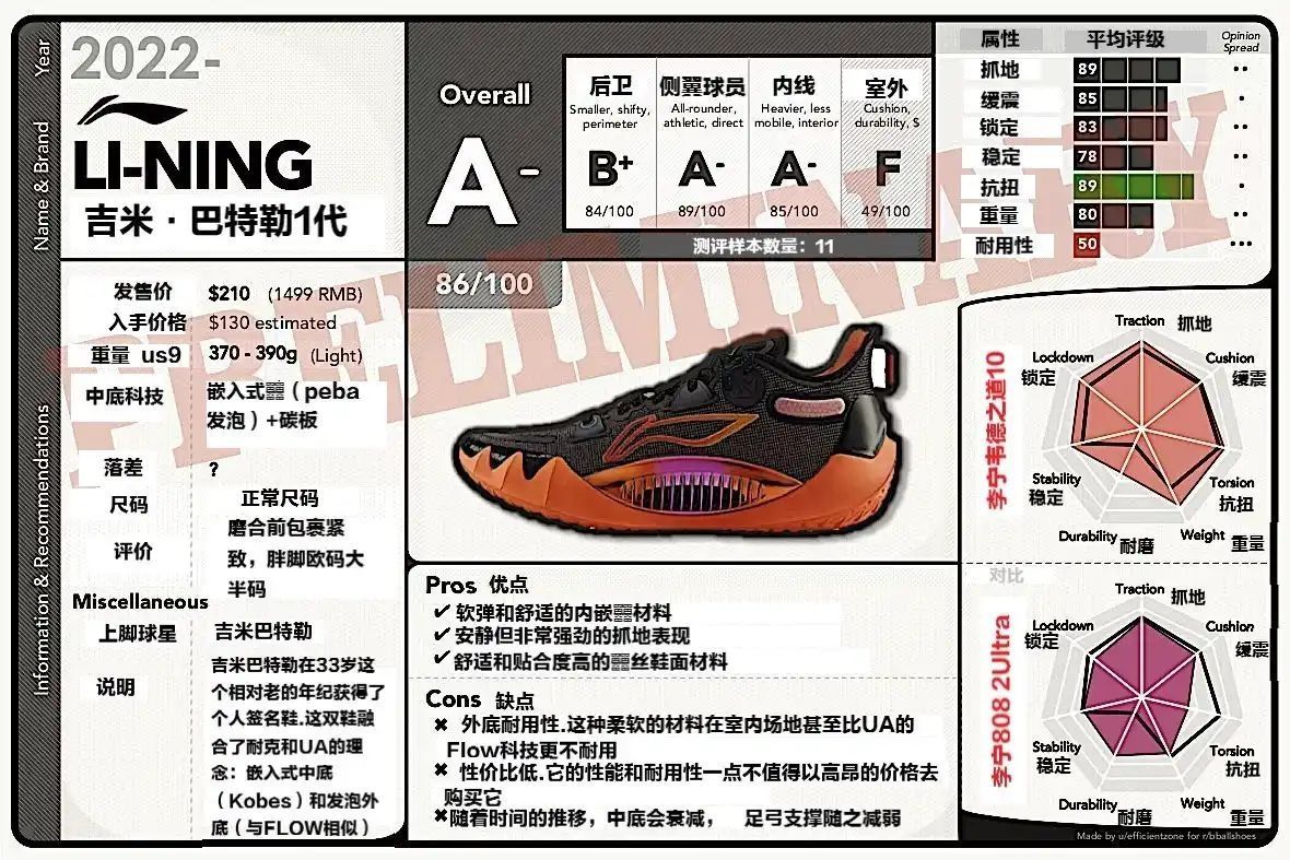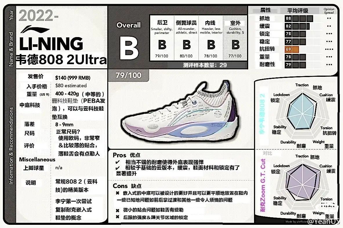 本篇笔记关联了李宁 韦德之道 808 2.0Ultra 䨻科技 稳定支撑 耐磨防滑 一体织 实战 篮球鞋 米白色/蝶兰紫、李宁 Jimmy Butler 1 吉米巴特勒1代 䨻科技 一体织 防滑耐磨 缓震透气 高回弹 碳板 实战 篮球鞋 黑色/橙色、李宁 闪击9 Premium 䨻科技 防滑耐磨 支撑高回弹 实战 篮球鞋 黑色/白色/紫色等商品,为用户提供真实的使用体验和购买参考。