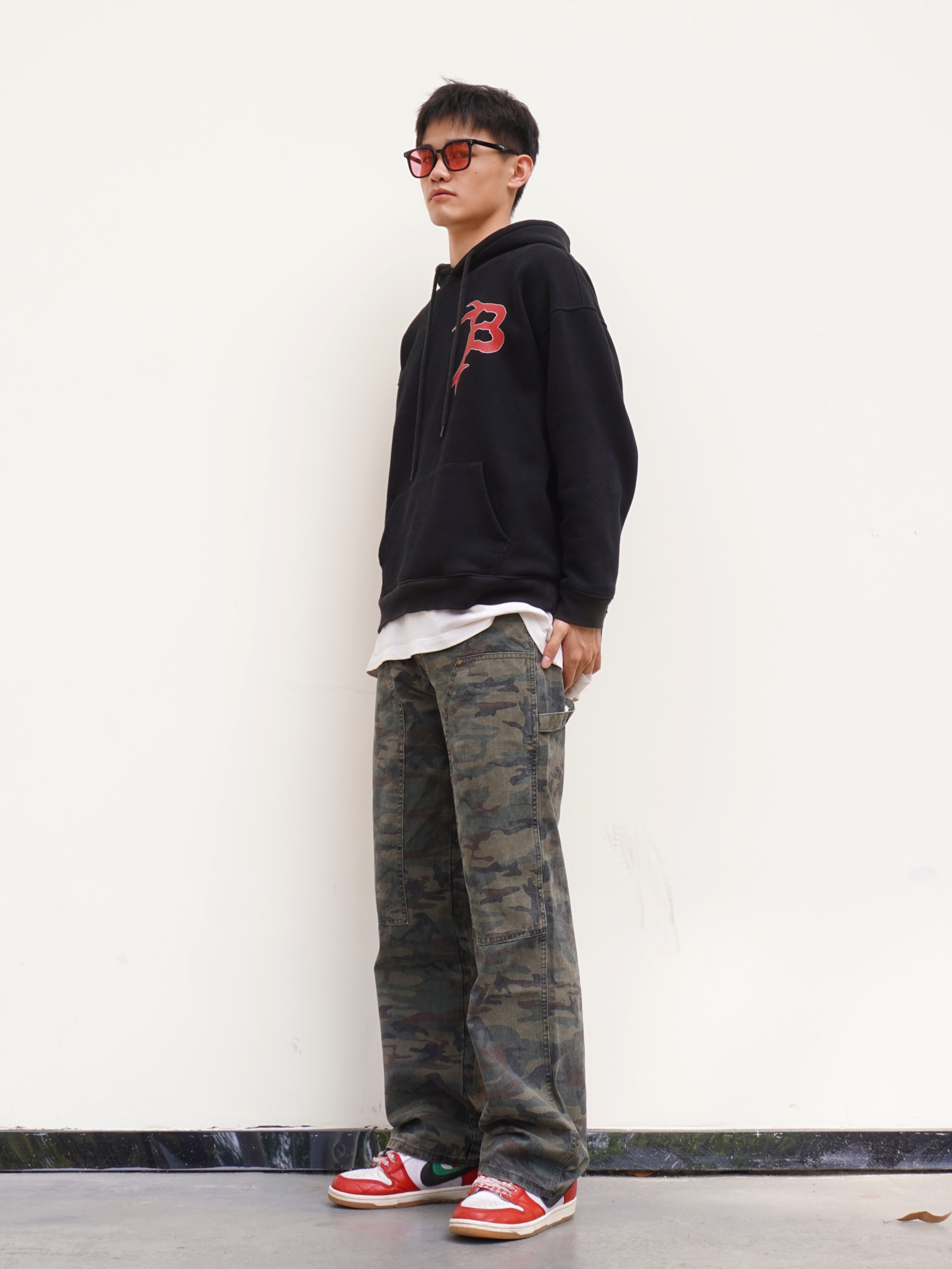 今天是开始挑战第一天 美式街头风 👖JFU高街迷彩牛仔直筒裤 分享一条非常正的高街迷彩裤 最近屡次上身 因为真的太好搭了 迷彩相比纯色系颜色更丰富 但不会有看腻了的感觉 上身无论是搭oversize还是小版型的衣服都可以 因为这条直筒裤版型很好 看着很舒服 完全可以把上身给撑住