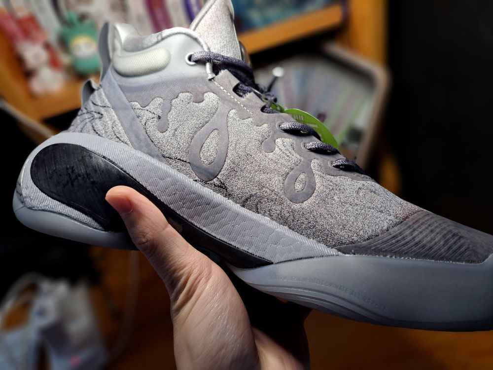 十二水图配色真的是kt7独一档。中国风满满,仿佛像有年代感的艺术品,各种独具匠心的细节和设计造型,都不舍得上脚穿去实战了哈哈,真的很棒,颜色又耐脏。这是唯一一双让我觉得kt7旁边的大波浪支撑条不显得突兀的配色。其他的总感觉黑色的波浪条一上,总感觉和整双鞋的配色不搭调。中底氮软弹,要买kt7还是得看十二水图,棒棒棒👍🏻