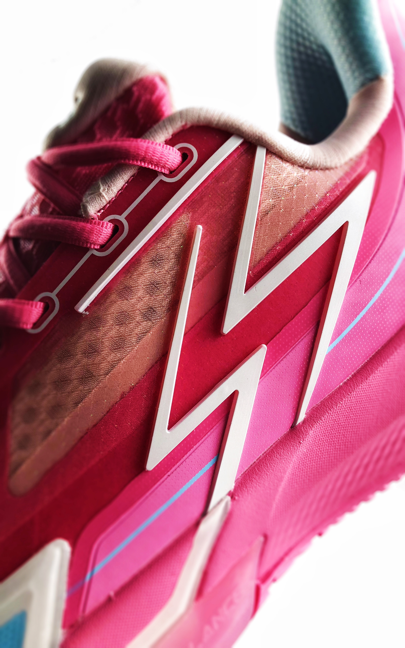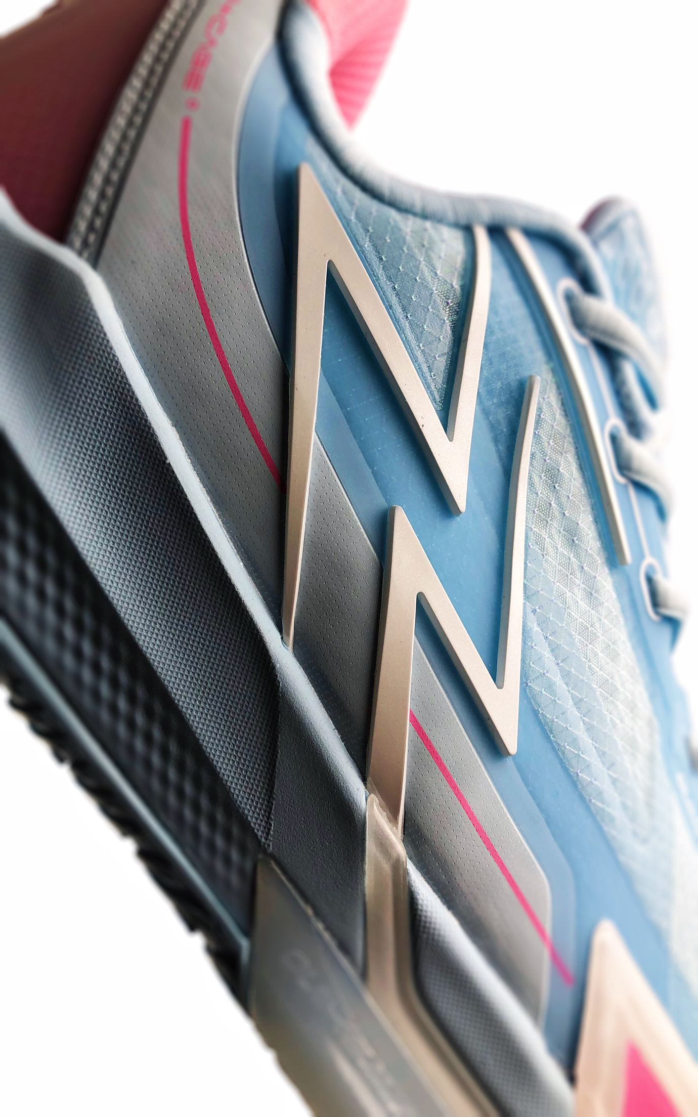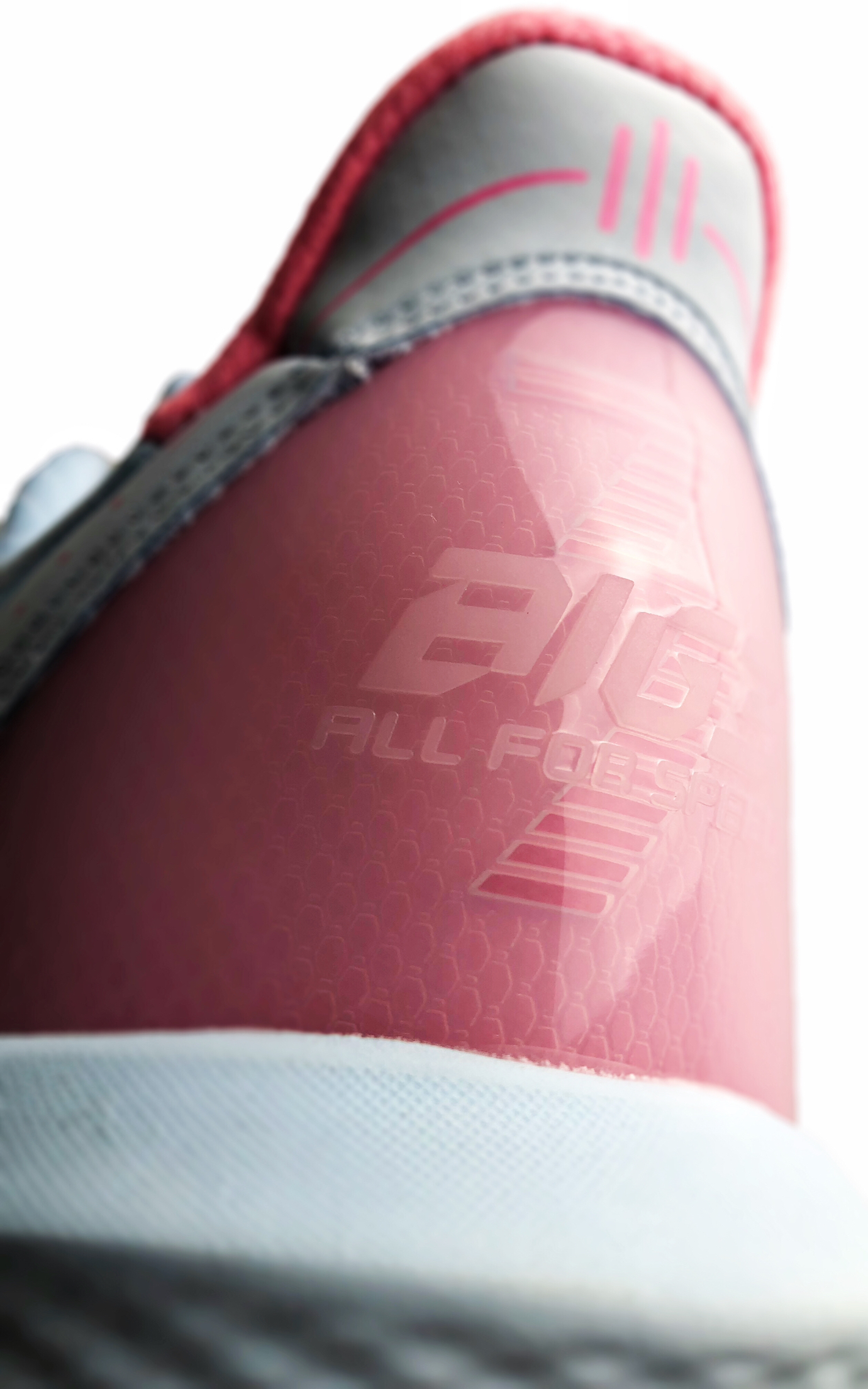 「反转」配色鞋身有个细节:有类似珠光粉的颗粒遍布鞋身,通过不同角度的光照可以让其显现出来!