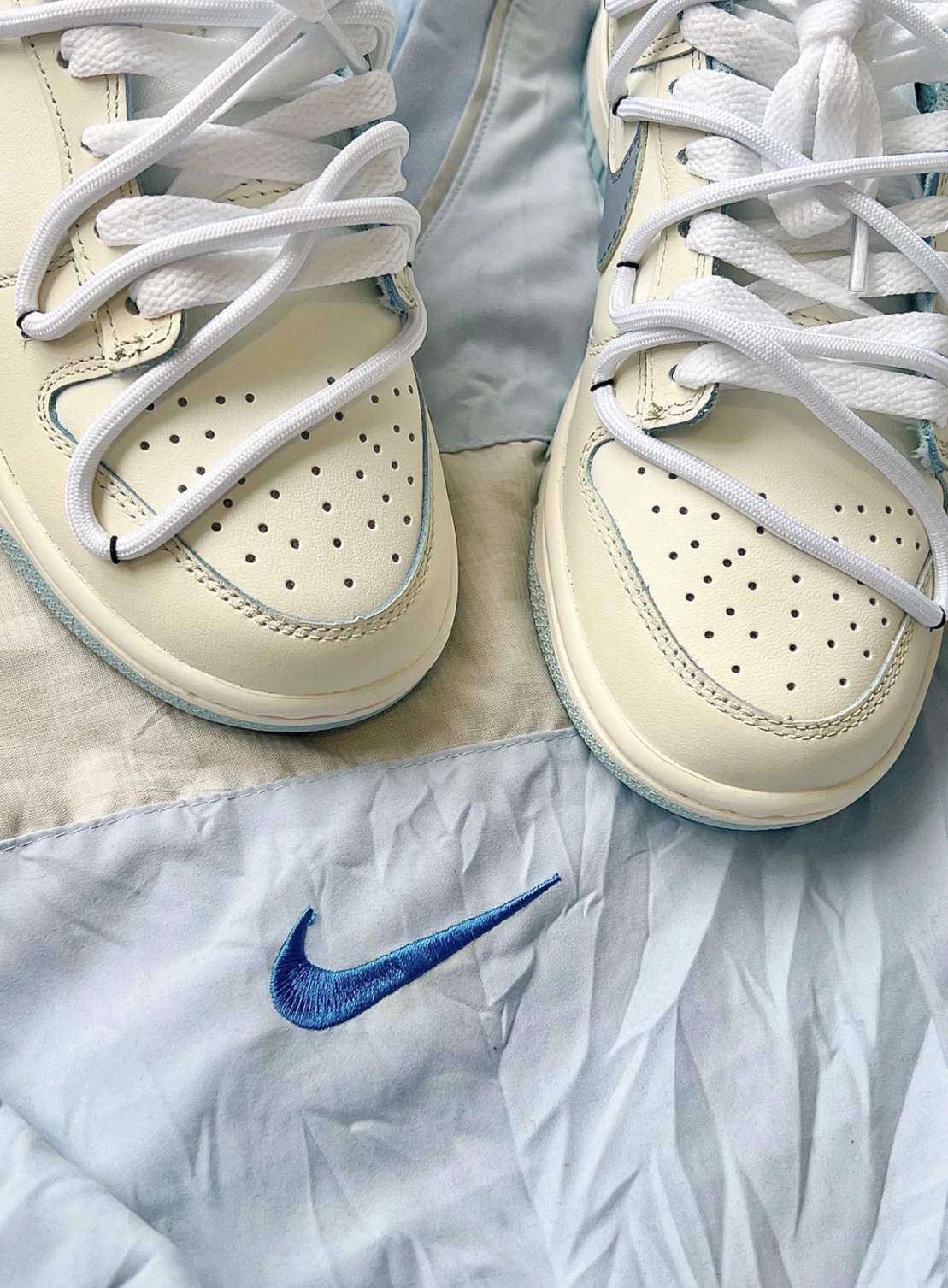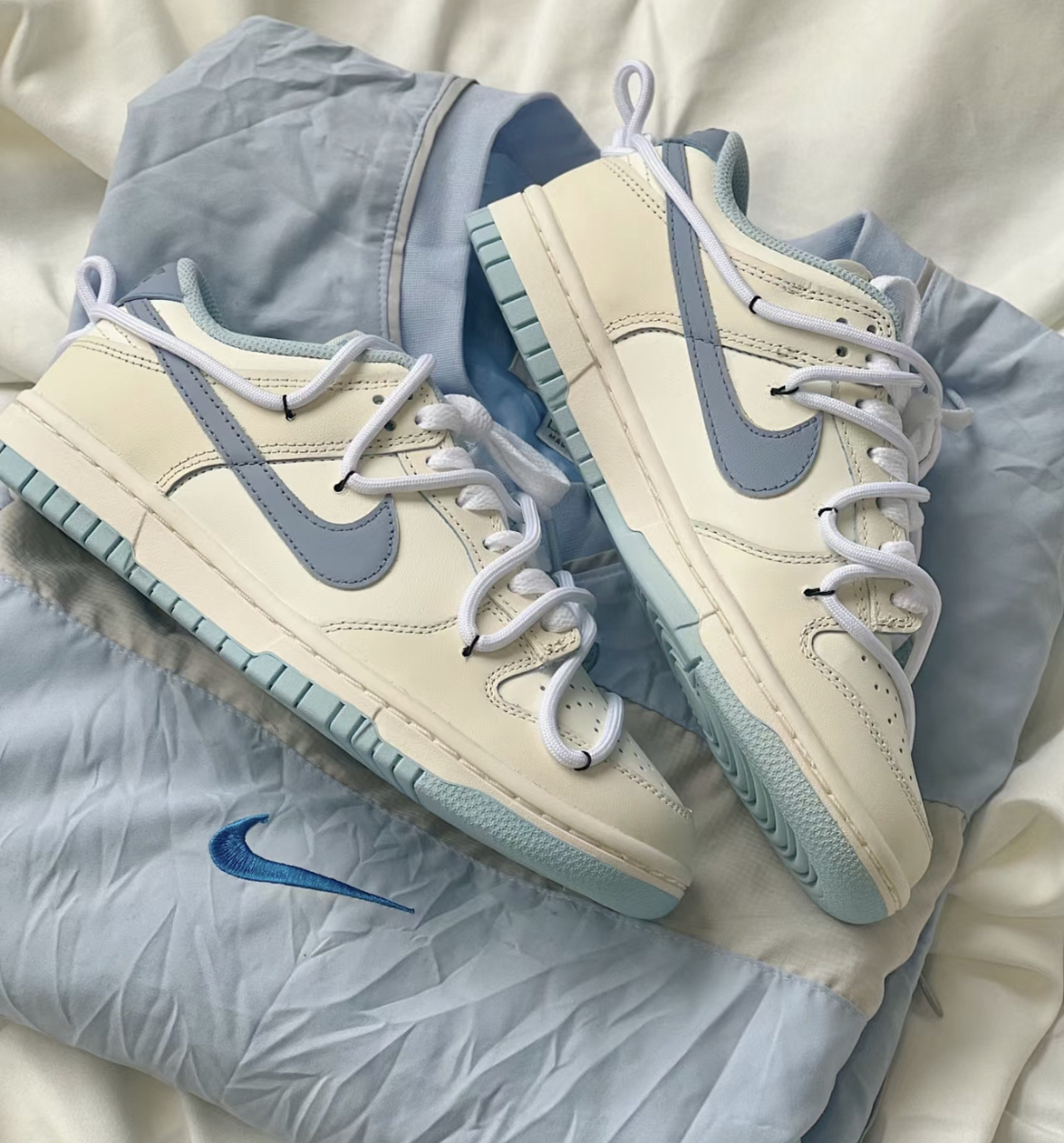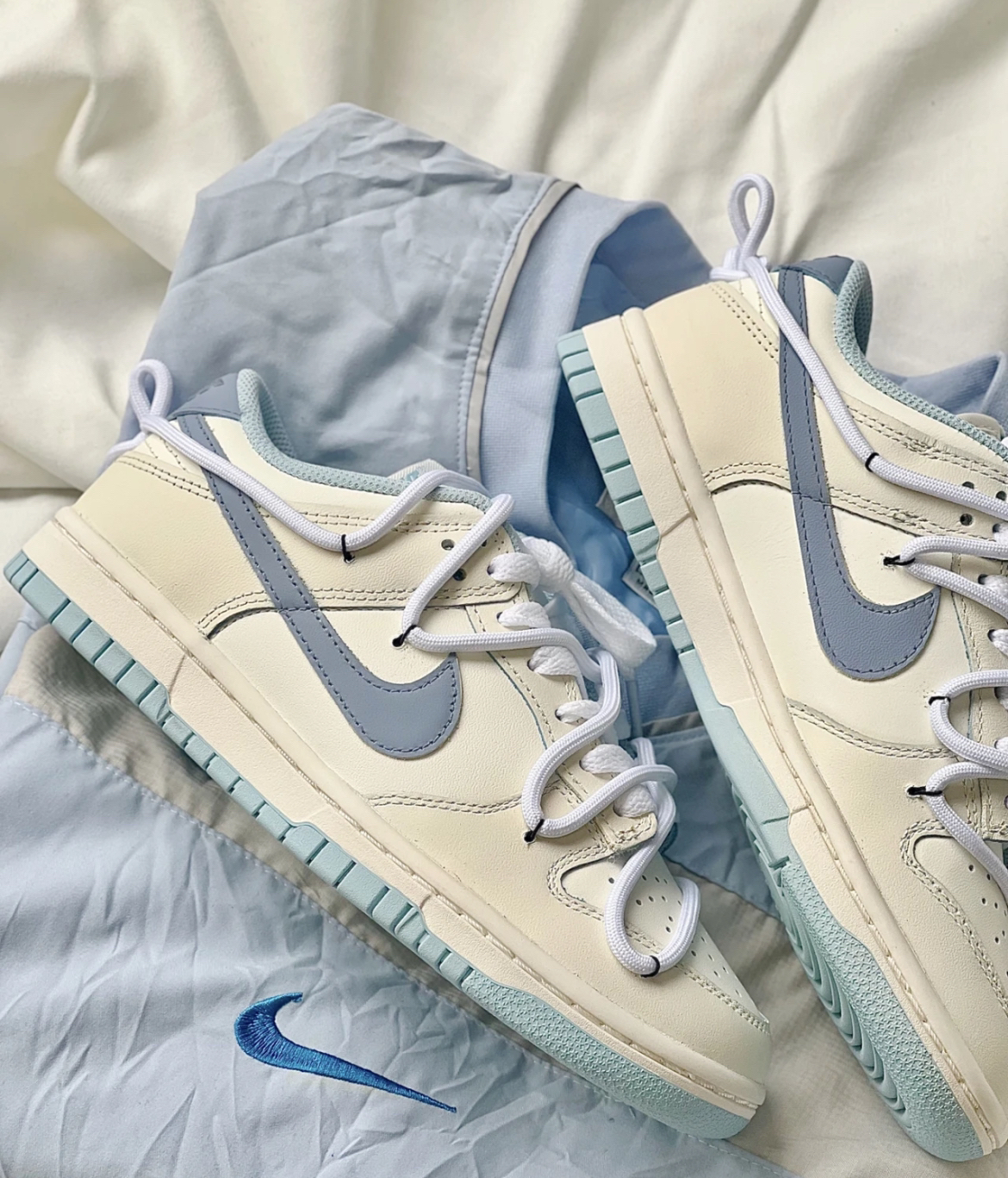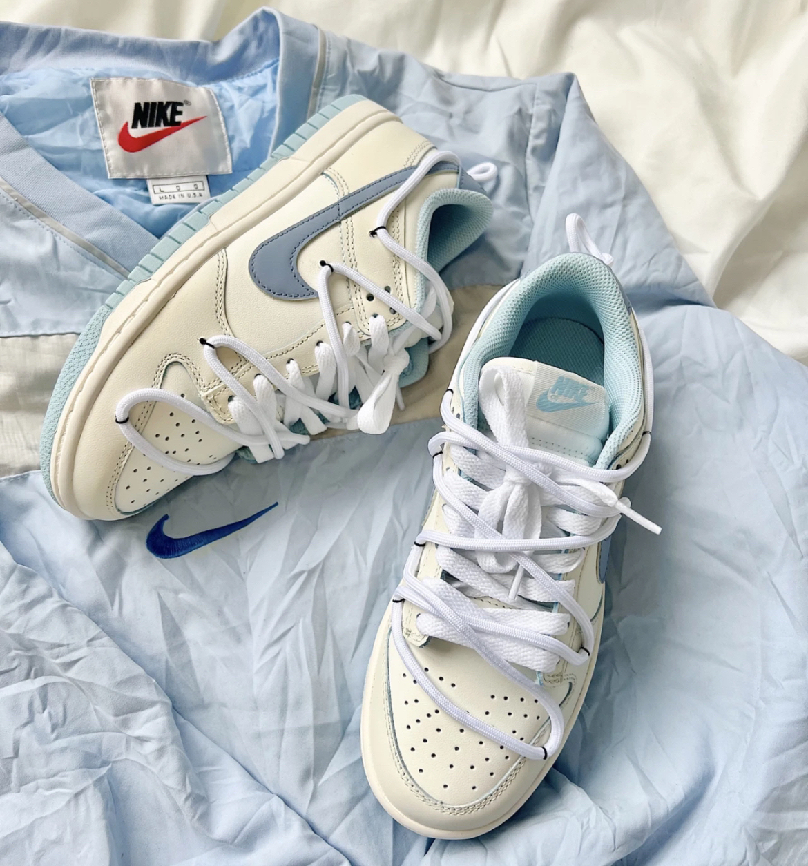 👟球鞋名称:【定制球鞋】Nike Dunk Low 海盐牛奶冰 夏 🔍分享理由:日感 清爽小众 百搭 低帮 板鞋 女款 牛奶蓝 🤔整体感受:这也太好看了吧 呜呜 真的好治愈好好看