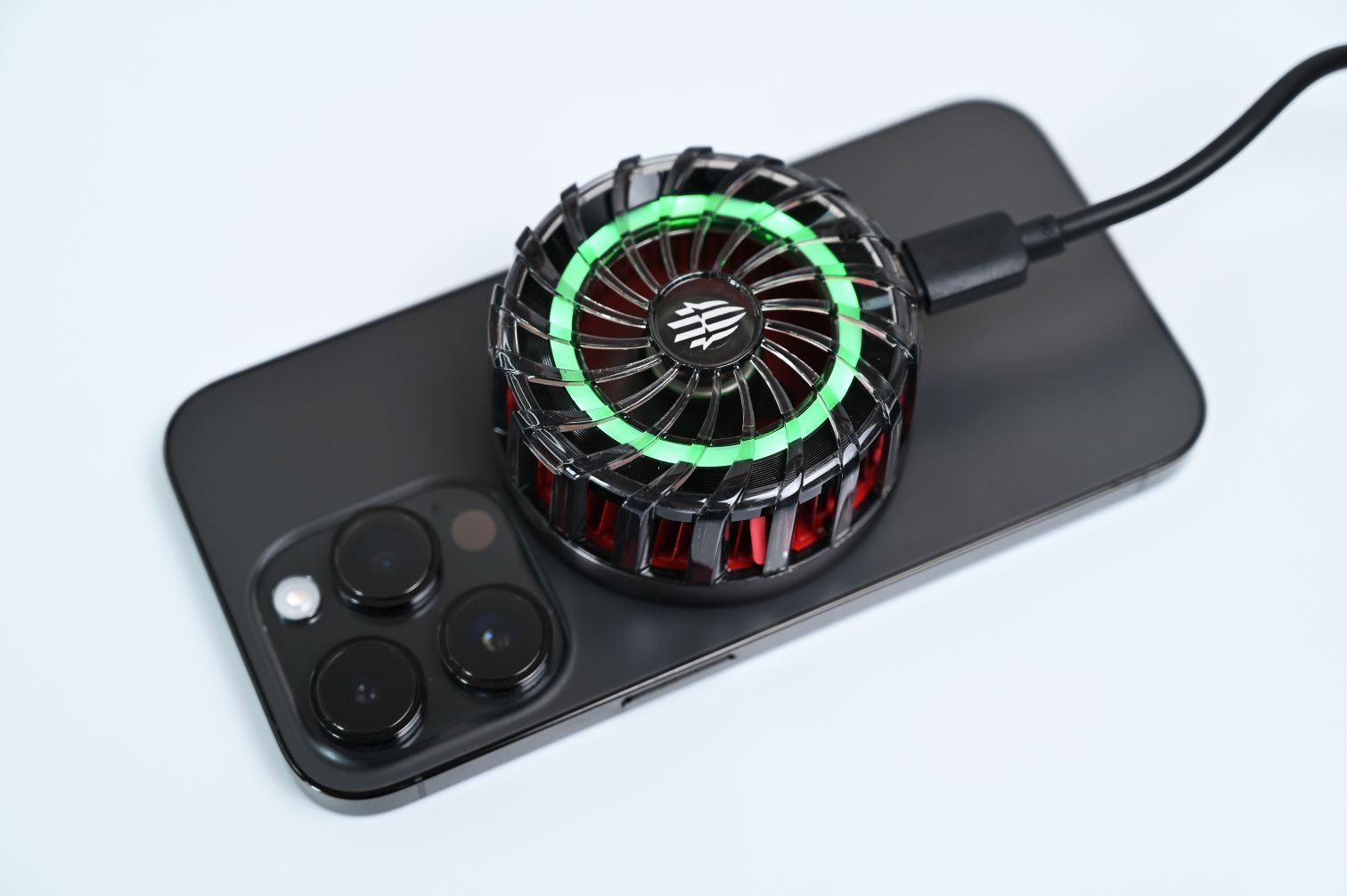 眼瞅着天气是越来越热了,整了个红魔散热器4 Pro磁吸散热器,最高30W的功率,说是能给手机降温9度,这大夏天的打游戏那不得爽死。我接电后上手试了试,降温速度确实挺快,7叶高速涡轮增压风扇,每分钟可达5400转,也就不到半分钟左右时间吧,吸盘上就已经有冷凝水了,时间久了能结冰也说不定。 金属的外壳+铝合金中框再加上通电后炫彩的灯效,质感是拉满了。重量差不多90克左右吧,和iPhone14 Pro...
