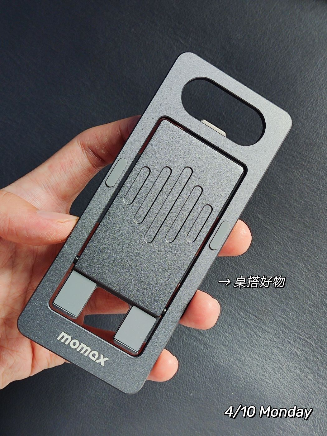 秉承着「一切从简」的原则, 虾米经常选择设计简约又很实用的东西。 最近打造「极简桌面」, 挑选了很久,看上了这款手机支架~ - 全铝合金的材质,结实耐用的特性先不说 更多的是比起塑料支架,整体质感提升很多! 高颜值的设计,给桌面增添高级氛围感~ - 小巧轻薄是我喜欢它的主要原因, 支架形如小卡片、薄至4mm 超级便携, 所以我一下子购买了俩, 一个放于桌面,另一个随身携带走哪带到哪用。 - 平常吃...