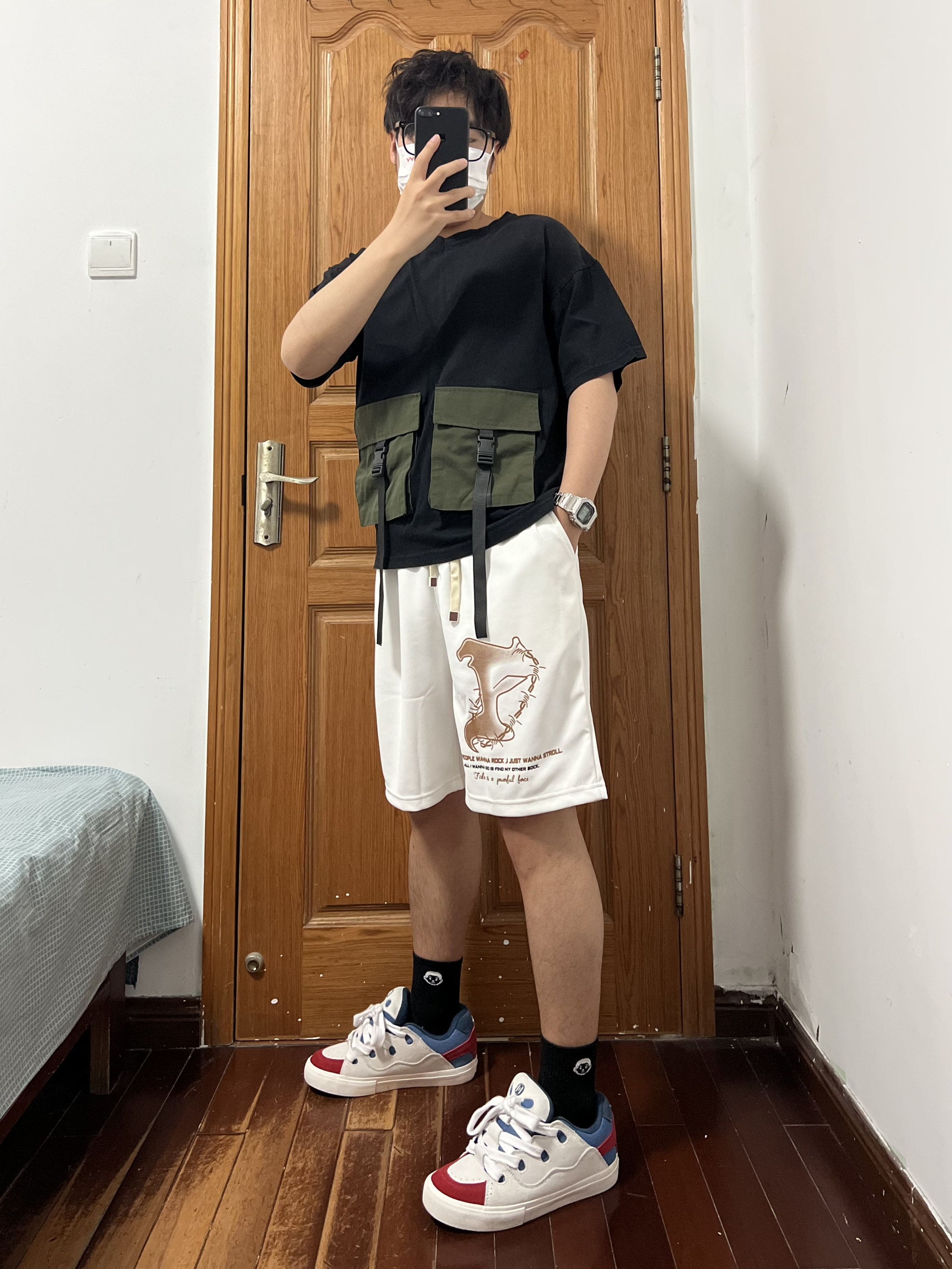 今日份穿搭分享🎉 小尼力夏季美式机能风多口袋工装短袖t恤 潮流穿搭还得看小尼力✌️这还是前年买的呢! 满满的阿美咔叽潮牌复古感💯街头那味 独树一帜的风格超适合街舞或者滑板少年 直接买最大码很宽松我当时就买小了还是cool 搭配一条杏色FIDO DIDO 哥特字母印花短裤 整的就是一feel宽松版型很有型呢❗️ 一个简单的大logo D设计独到不输大牌 面料是聚酯纤维97.5%氨纶2.5%透气排汗...