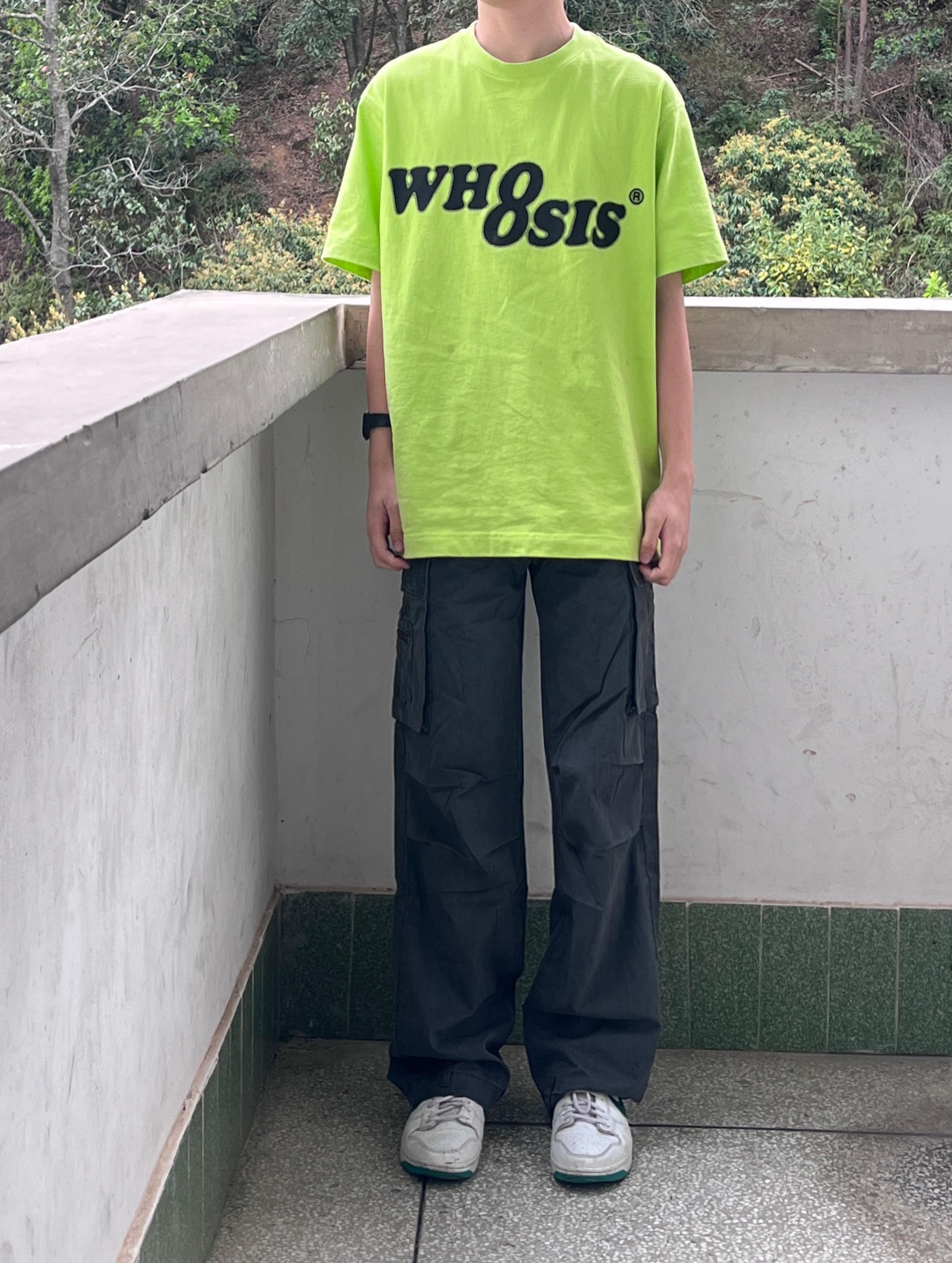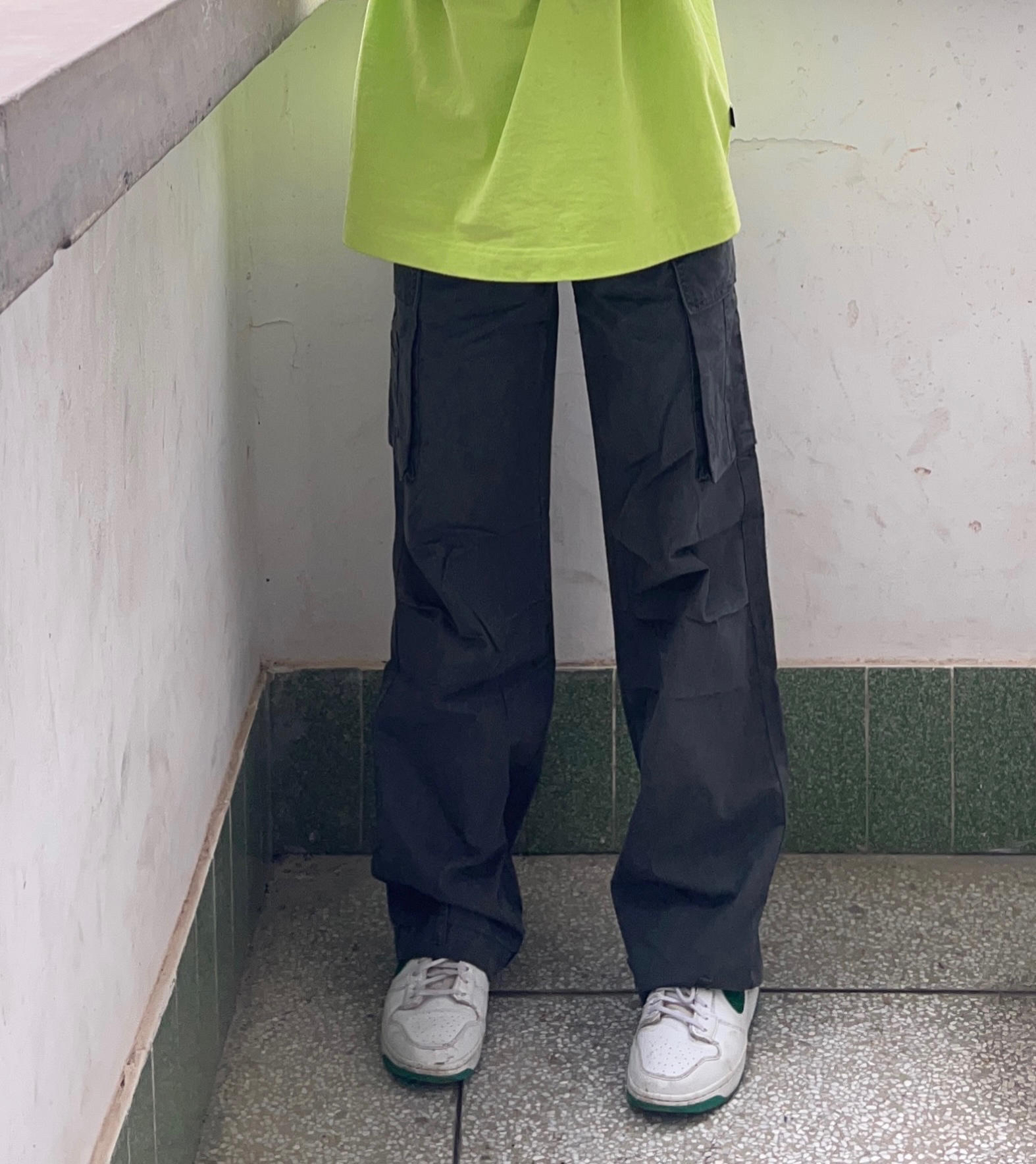 今天分享一套很爱的工装风穿搭‼️ / 衣服是最近很爱的一款荧光绿国潮短袖 超级显白 版型也是宽松oversize风 搭配我超爱的美式高街工装裤 多口袋设计 版型宽松显腿长 修饰腿型 - 再搭配dunk经典小白板鞋点缀 一套下来 夏天穿妥妥出街必备啊