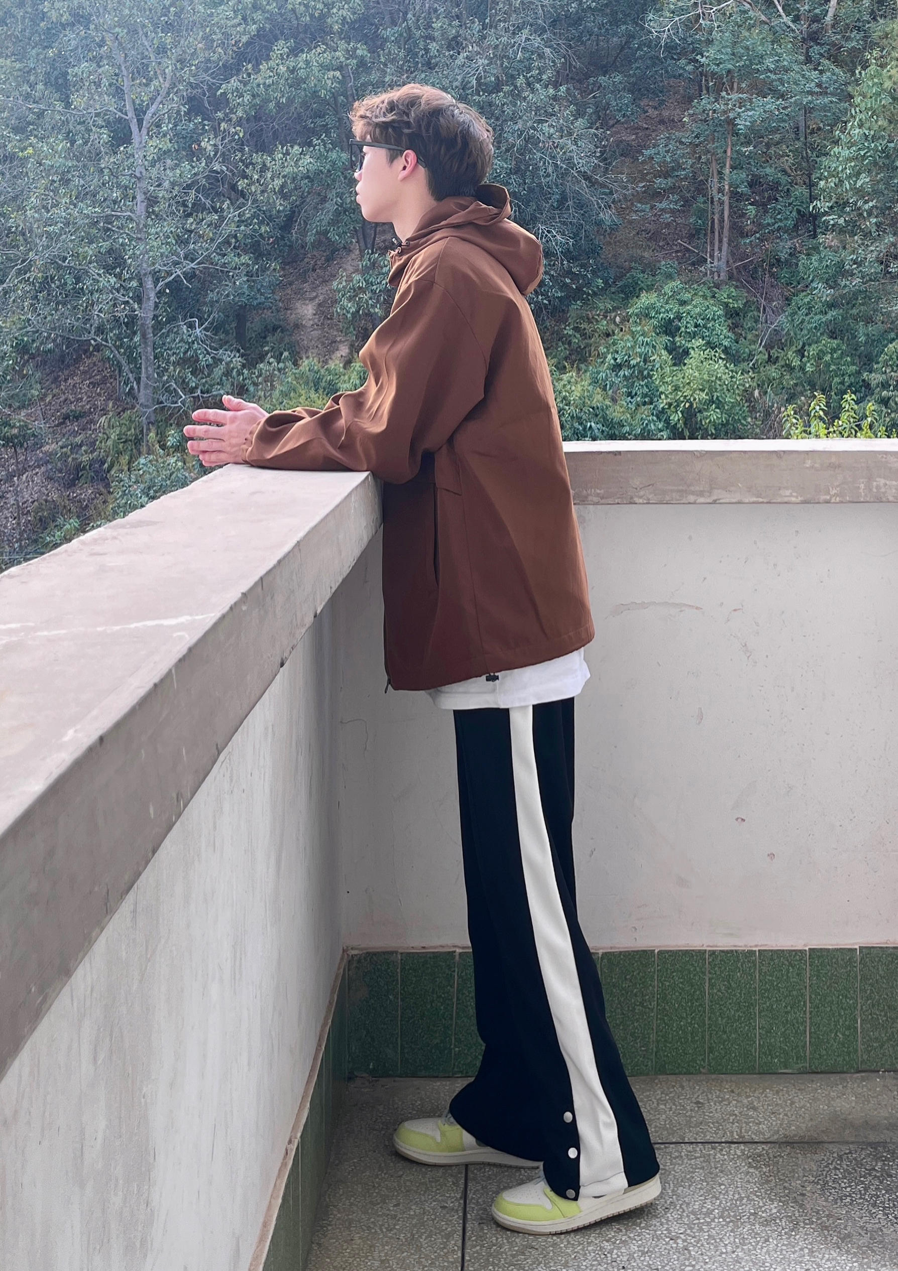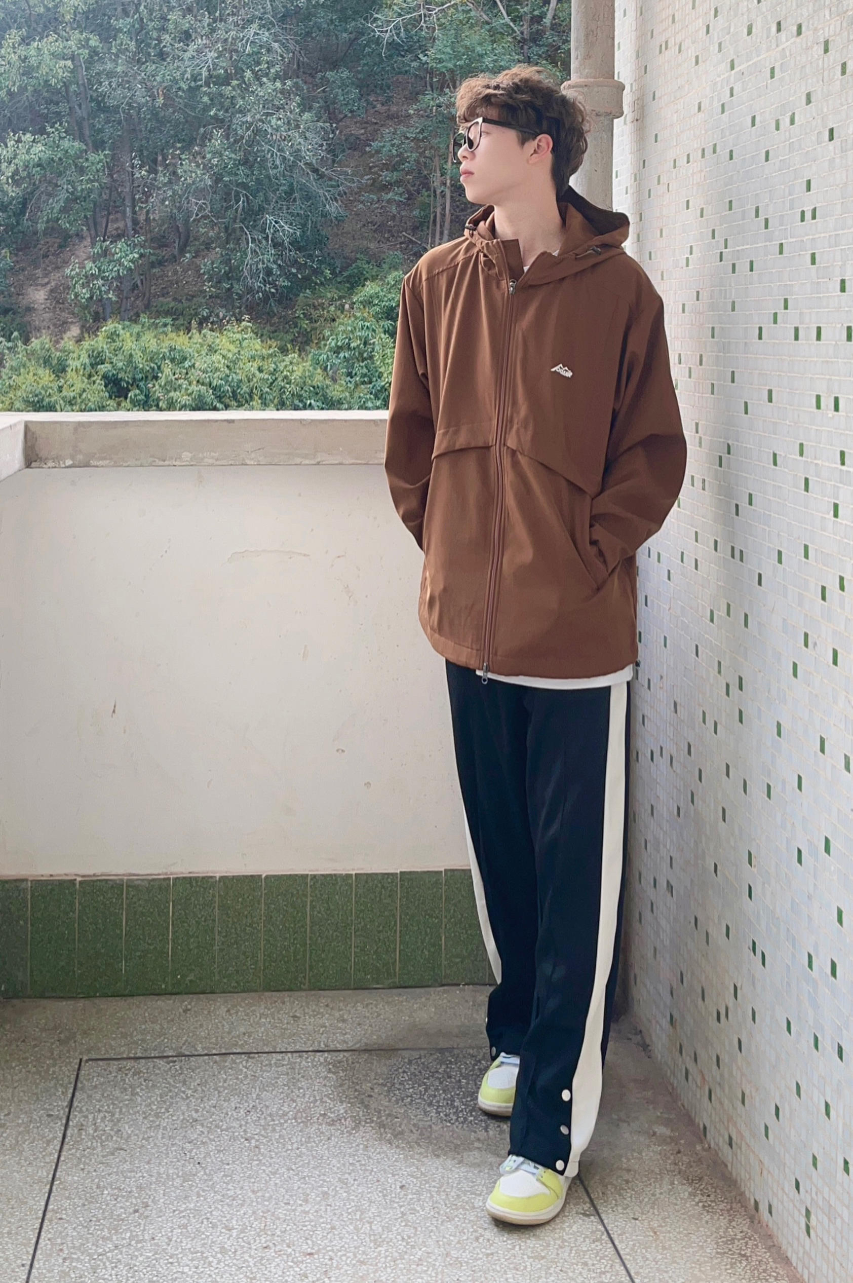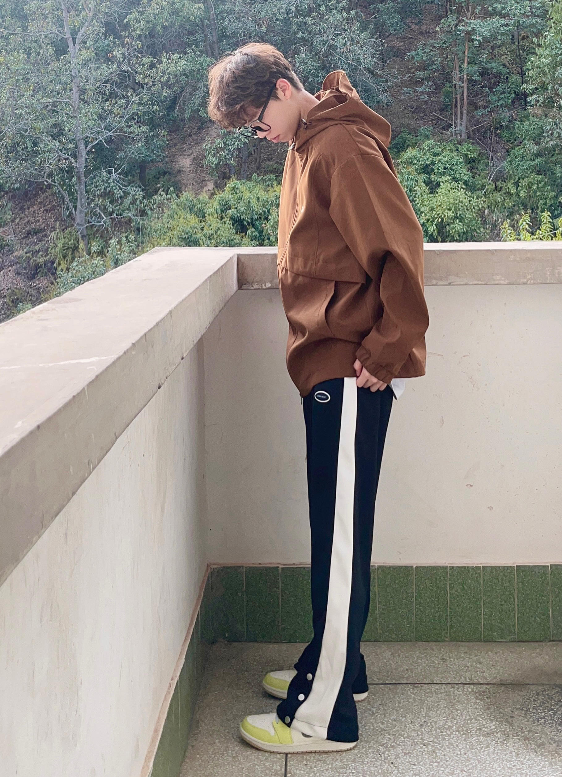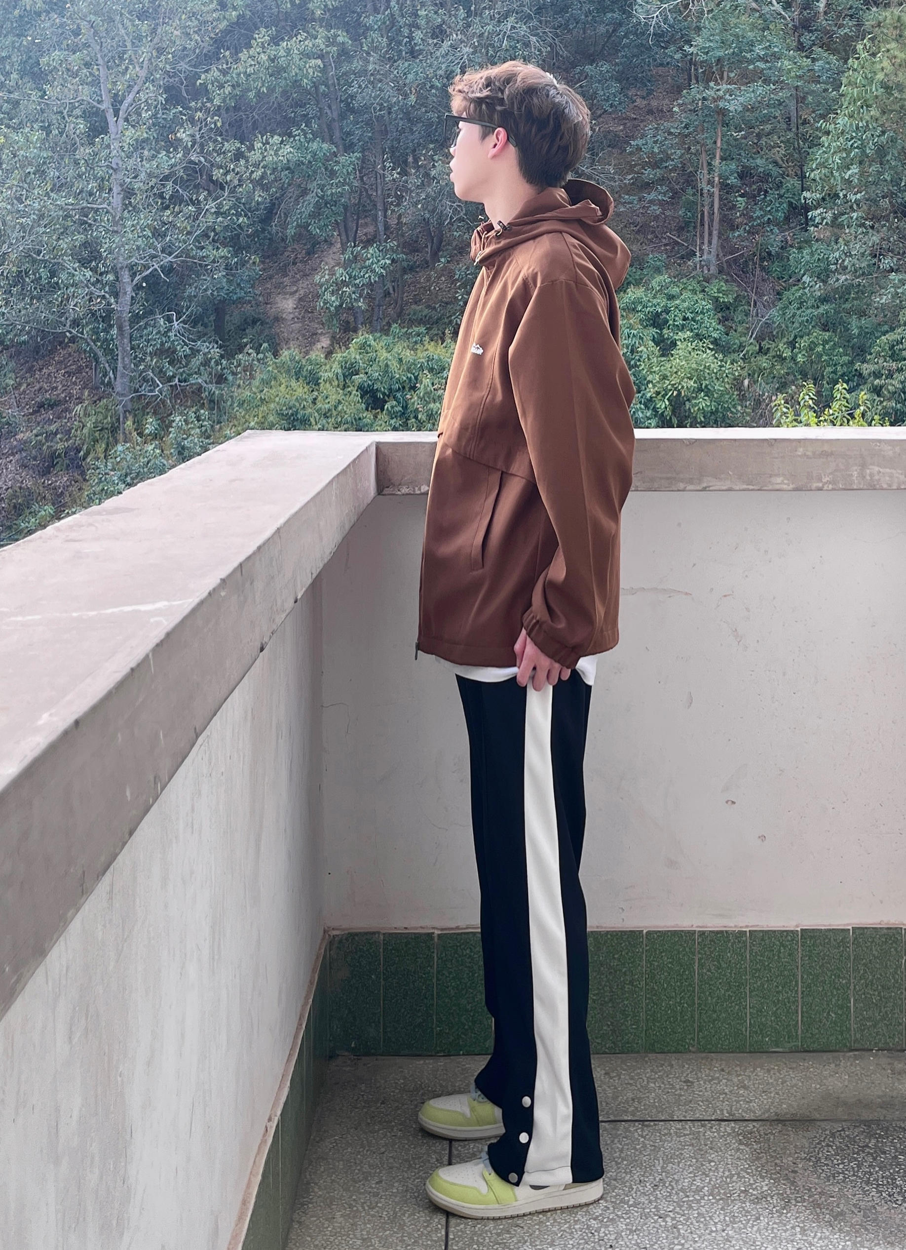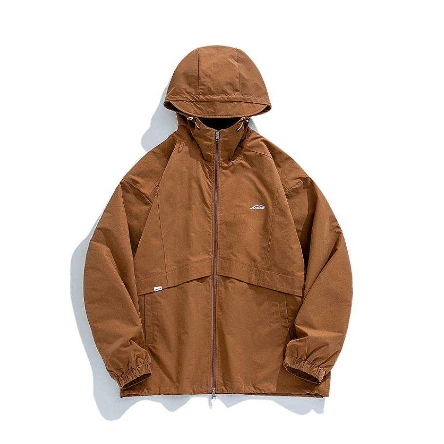 今天带来一套春季冲锋衣山系穿搭‼️ : 衣服是浅咖啡色的冲锋衣 拉链抽绳设计 穿上也很宽松舒适 质量非常不错 防风也防水 很适合户外活动🧗 - 裤子是黑色的休闲卫裤 裤脚处的排扣设计很有特点 版型宽松显腿型 面料和弹性都很不错 / 一套搭配下来 无论是冲锋外套还是排扣卫裤 都非常适合运动 你pick到了吗