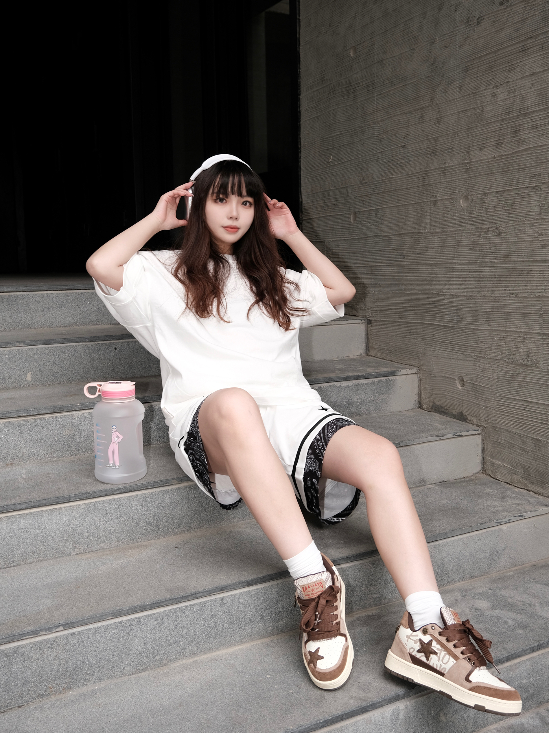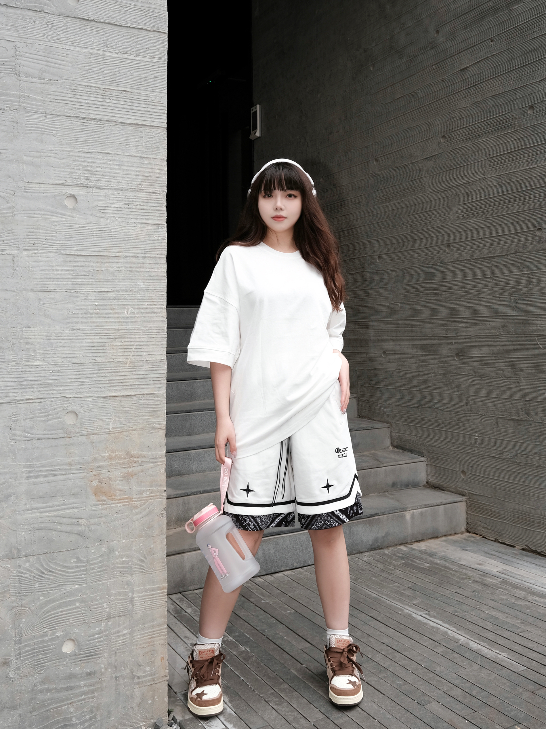 𝐇𝐢,下午好呀! 这里是你的朋友小须, 白色系的校园穿搭💼 总能让🤖感受到清新🍃的气息~ 春日里最适合穿的就是一件纯白色⚪️的宽松T恤, 搭配一条甜美可爱的腰果花五分短裤🩳 整体款式简单大方🎧 还十分适合日常出街穿搭, 时刻保持利落帅气~ 搭配棕色星星鞋👟 更显得个性! 夏日感拉满🆙