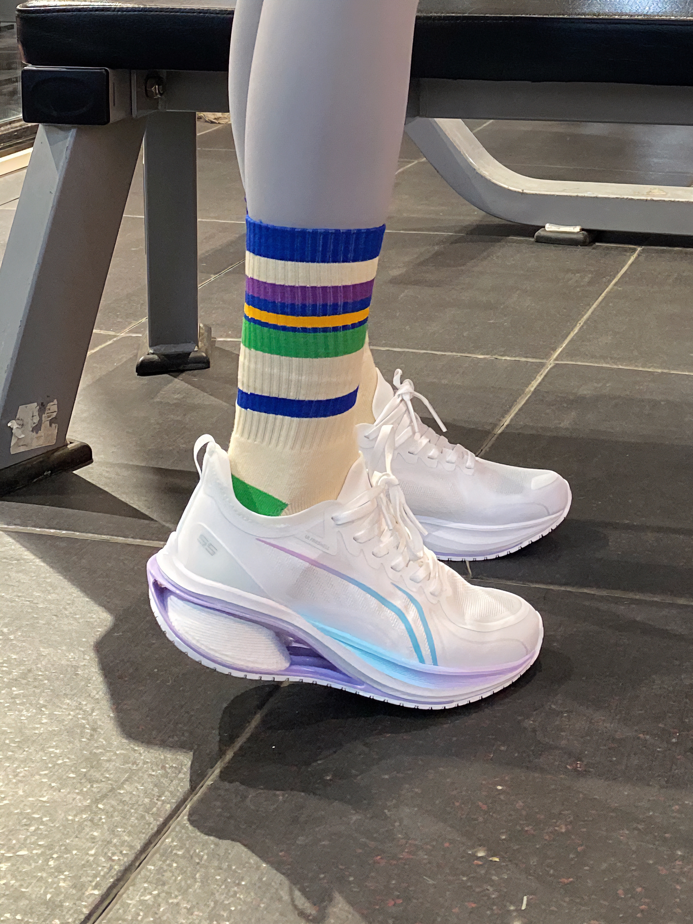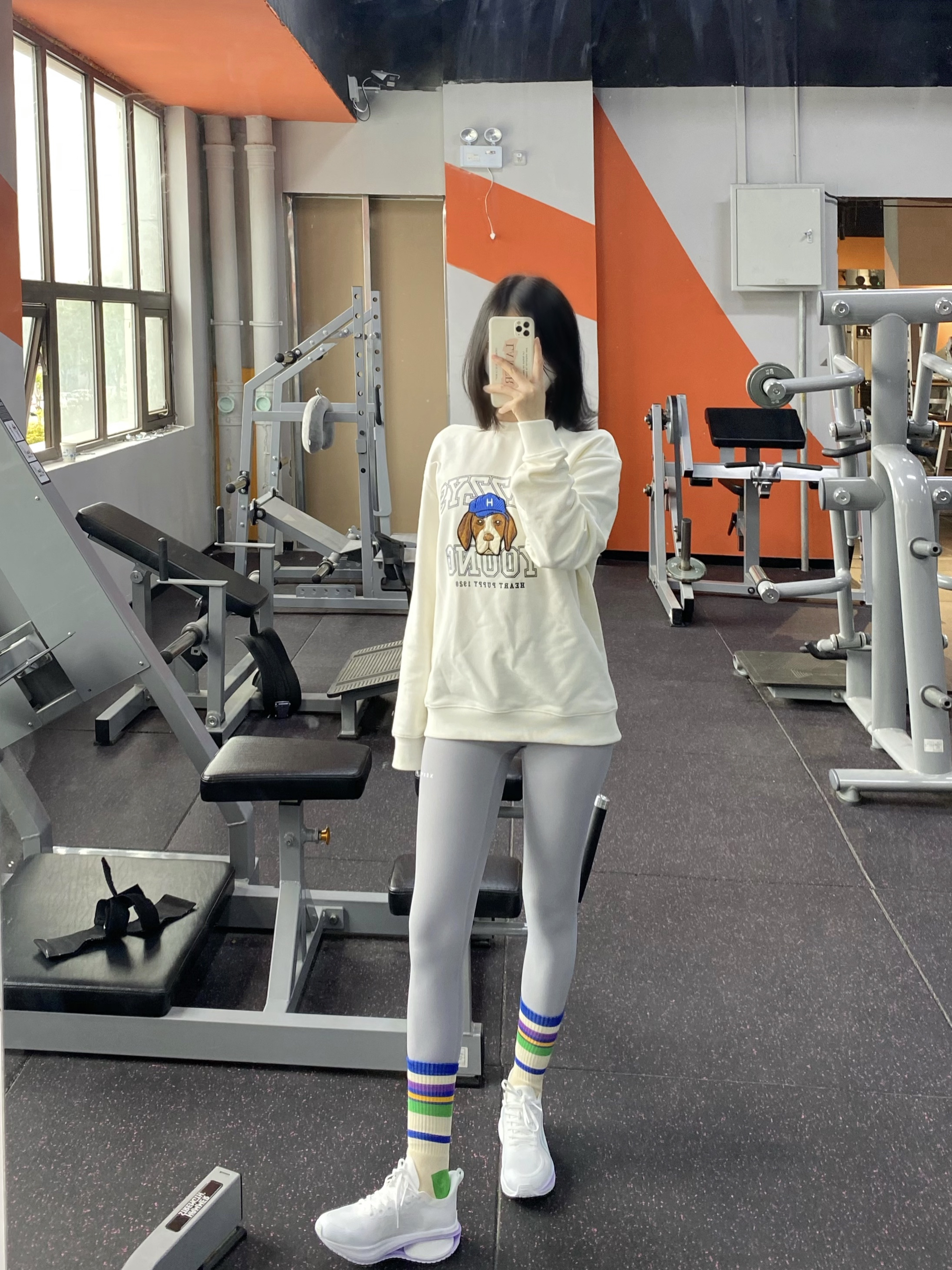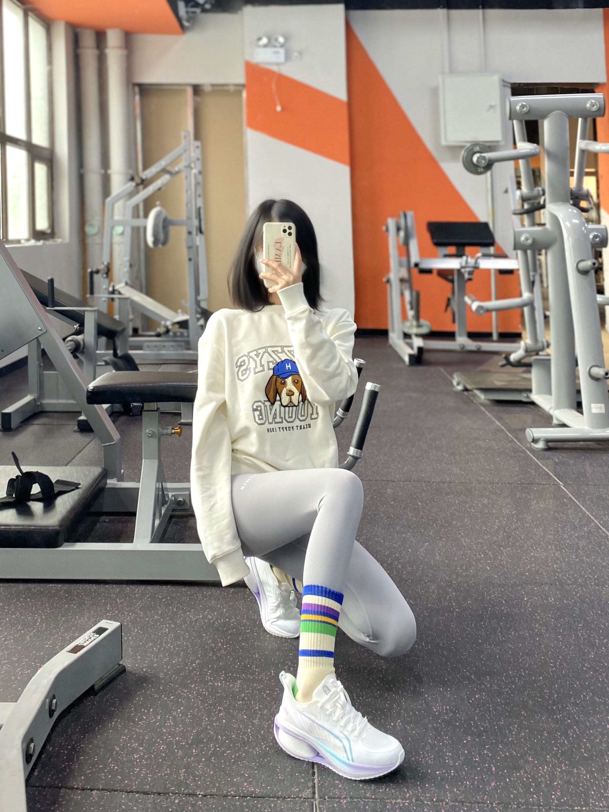 今天又是健身day 夏天快到了 减脂有氧运动一起来8⃣️ 今天这套就很适合跑步🏃♀️有氧穿哦 跑步时我一般穿卫衣 这样排汗会多一些 白色印花卫衣搭配浅灰色鲨鱼裤 简单干净 低调不张扬 重点是脚上这双李宁吾适跑鞋 鞋子整体的版型比较秀气不显脚大 脚后跟的缓冲设计还有增高的效果 跑步穿起来脚感还不错哦 妥妥的拿捏小个子
