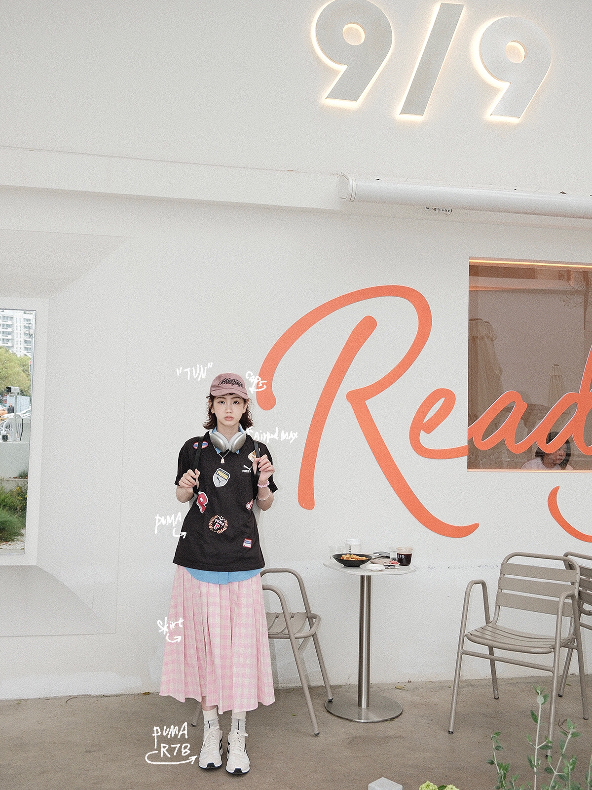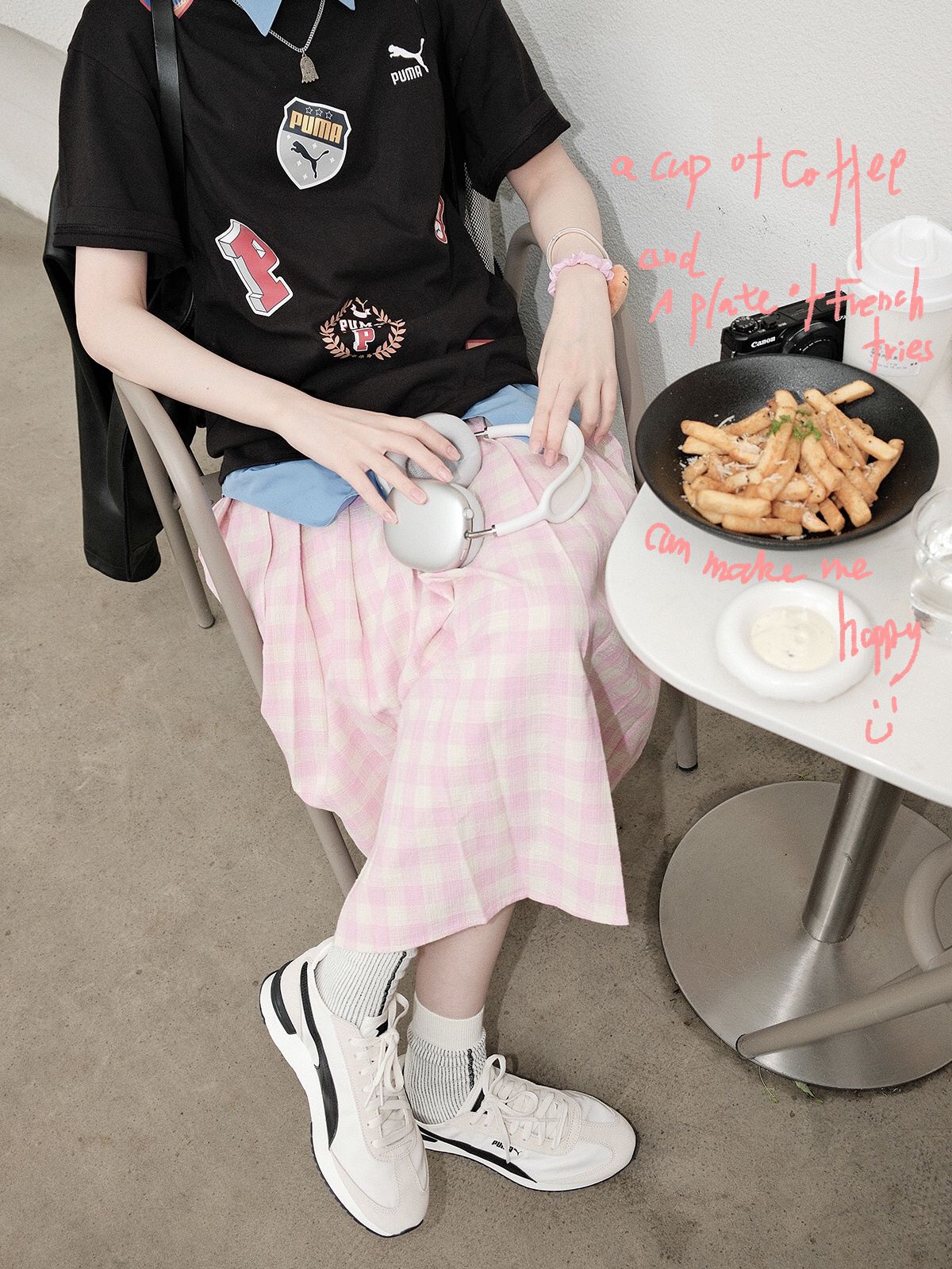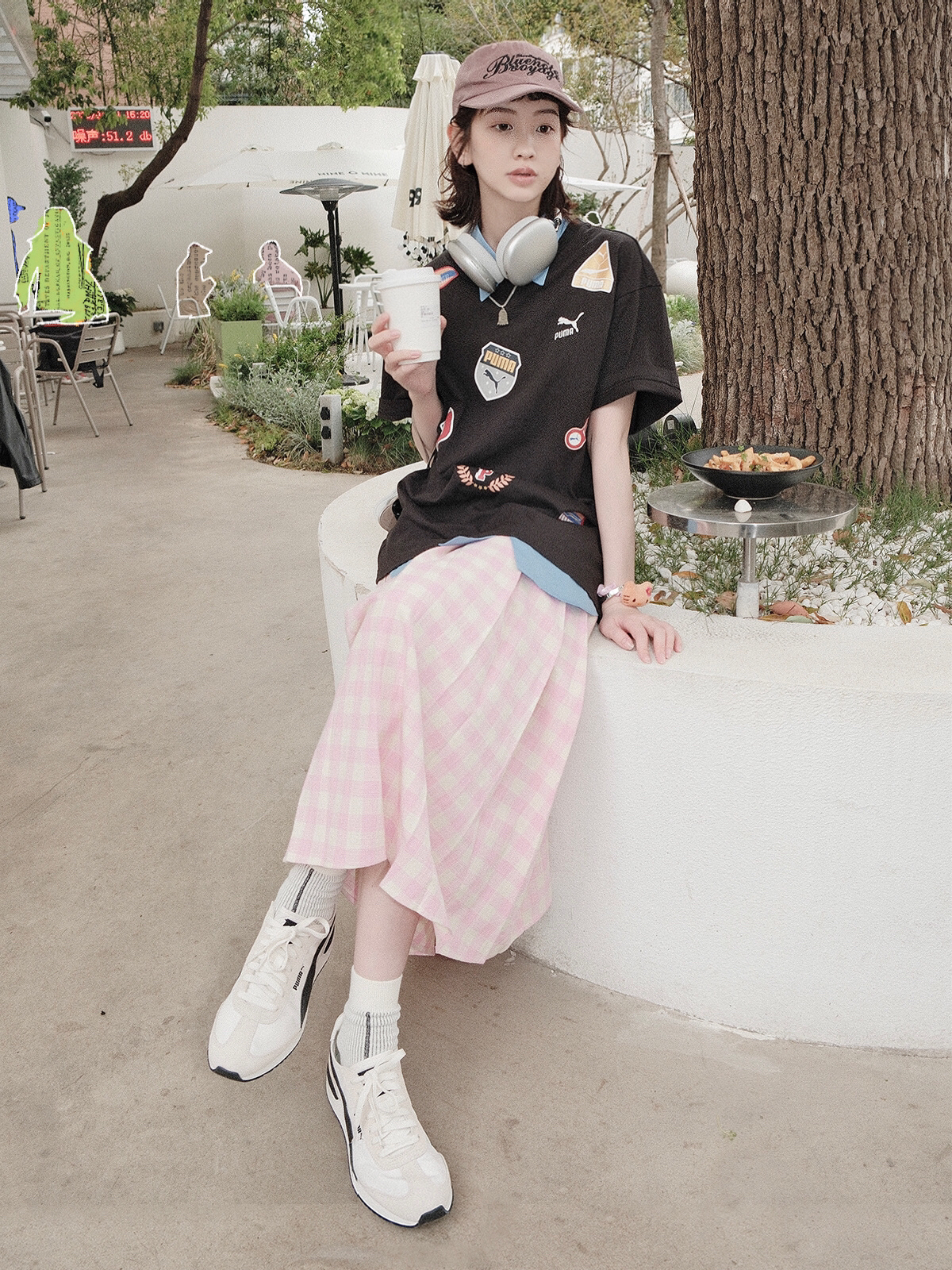𝐇𝐢𝐢𝐢𝐢𓁋 . “没喝咖啡别叫我工作” 于是就出来喝☕️了·͜·˖ 成年人的生活总是可以这样自在呀 也喜欢这样松弛感的穿搭:D . 一件随性又布满徽章的Tee,用粉色格子裙撞击少年感💖还有新入的黑白配色跑鞋!!!也是NCT127同款𖤐上脚就是活力girl👧🏻鞋型复古而且脚感也特别舒服透气✌🏽初夏超爱用它搭裙子和牛仔裤 - 𝐎𝐮𝐭𝐟𝐢𝐭📒 •T恤:PUMA •裙子:kokia •鞋子:PUMA...