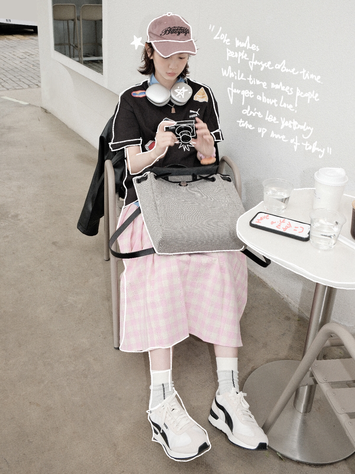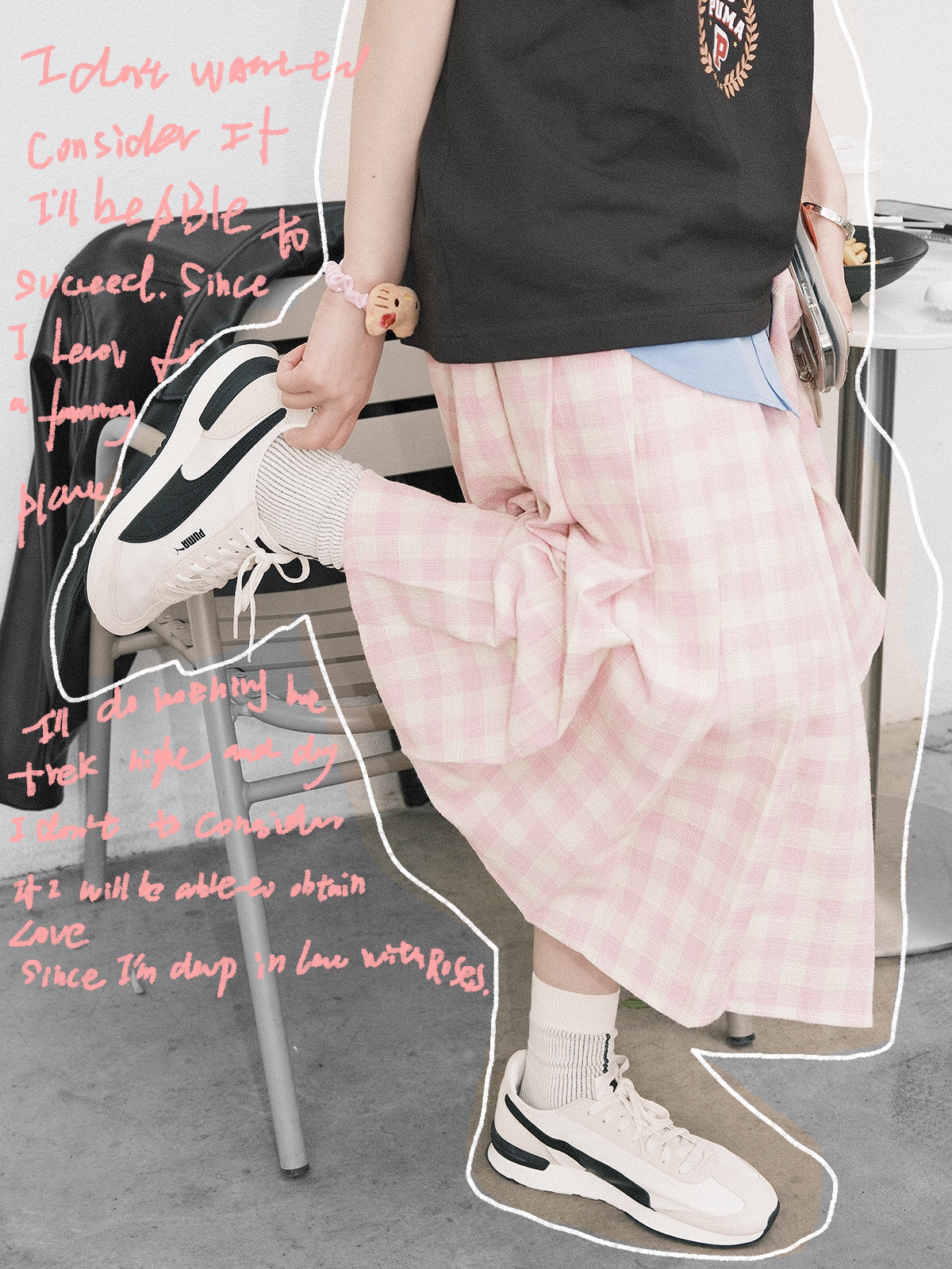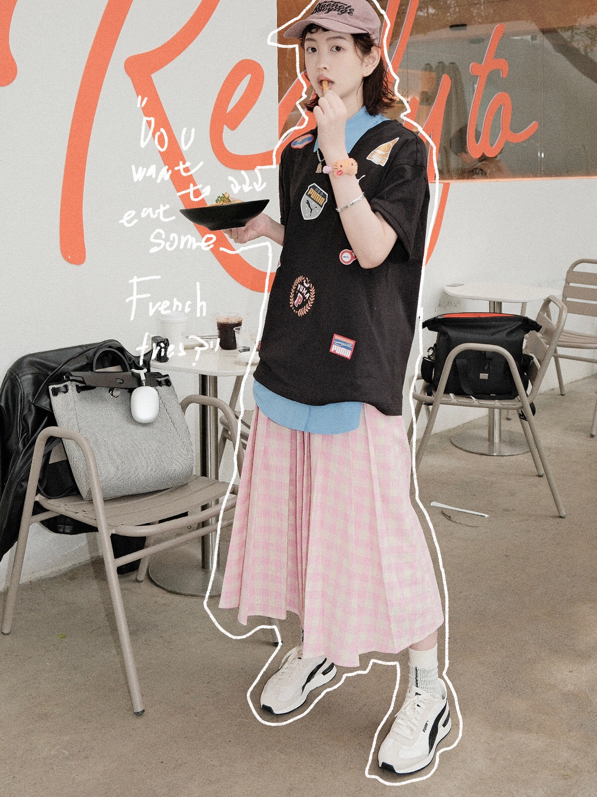 𝐇𝐢𝐢𝐢𝐢𓁋 . “没喝咖啡别叫我工作” 于是就出来喝☕️了·͜·˖ 成年人的生活总是可以这样自在呀 也喜欢这样松弛感的穿搭:D . 一件随性又布满徽章的Tee,用粉色格子裙撞击少年感💖还有新入的黑白配色跑鞋!!!也是NCT127同款𖤐上脚就是活力girl👧🏻鞋型复古而且脚感也特别舒服透气✌🏽初夏超爱用它搭裙子和牛仔裤 - 𝐎𝐮𝐭𝐟𝐢𝐭📒 •T恤:PUMA •裙子:kokia •鞋子:PUMA...