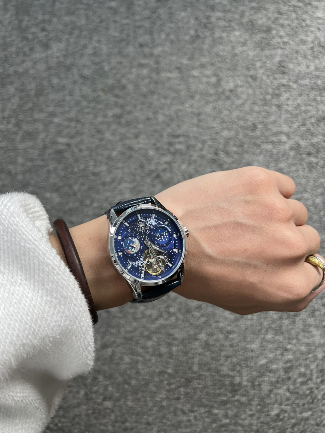 很少会这么去安利一款手表,马克华菲国潮机械腕表,双面镂空背透,镜盘内设计应该是采用汽车轮毂为灵感,十分个性。为什么说巨具性价比,200元左右,这样的设计颜值还是品牌腕表真的目前没有能比的。
