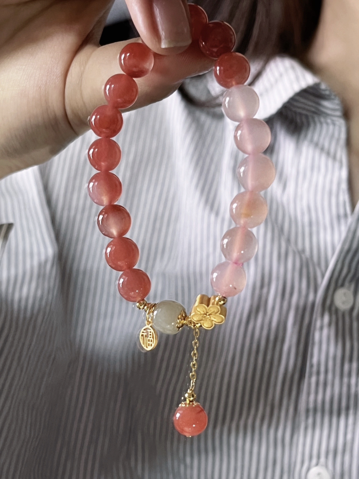 🛒好物名称:周大生十里桃花手串 🤔推荐理由: 和田玉和玛瑙搭配桃花+小福牌 国风元素拉 满 玉石透出的自然色泽 属于春天粉粉嫩嫩的颜色 和田玉独有的温润 感觉气质都温柔了许多 整体质感很好 清透的感觉很漂亮 新中式国风美学真的会爱