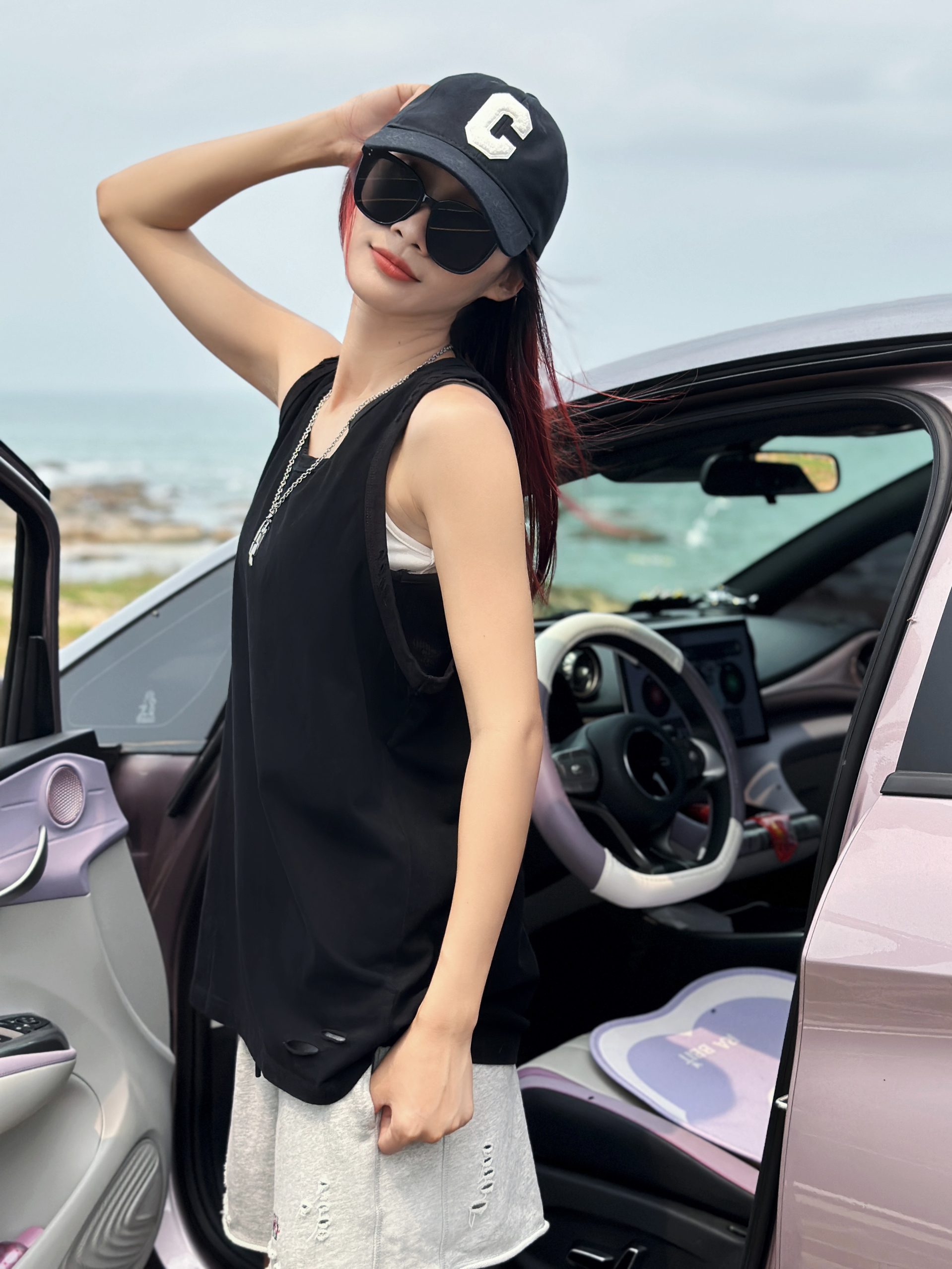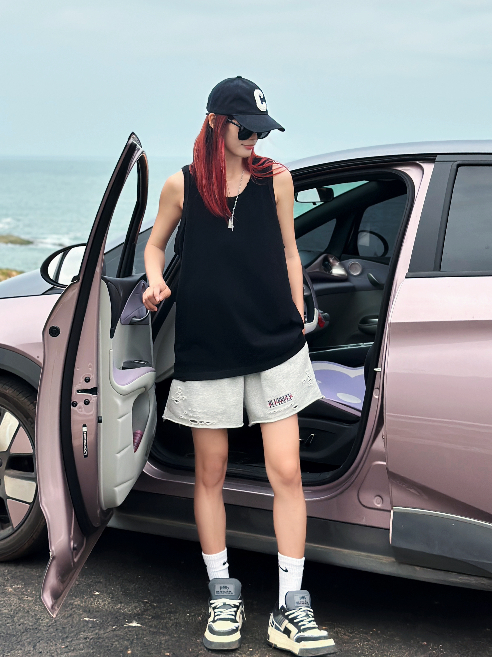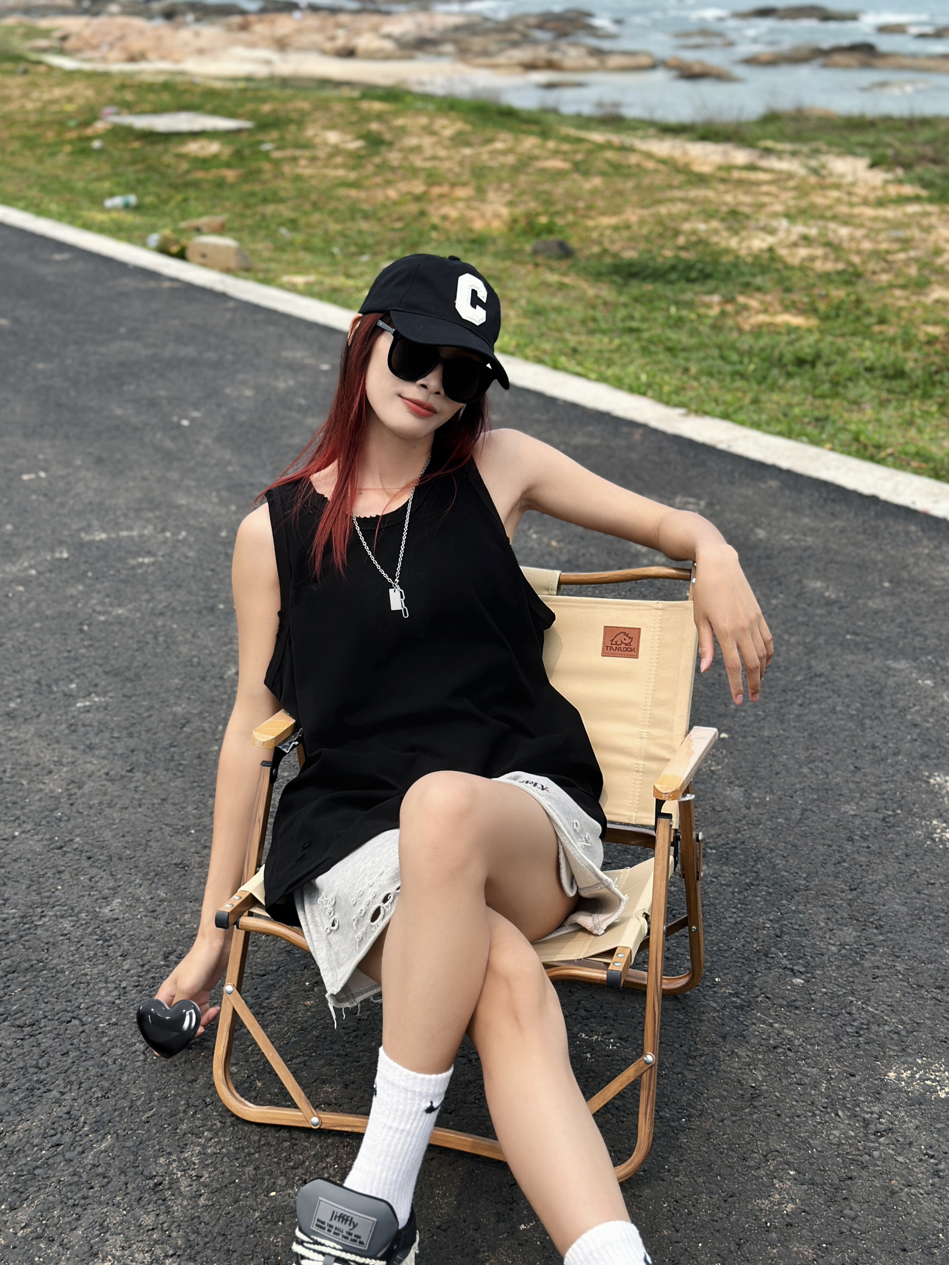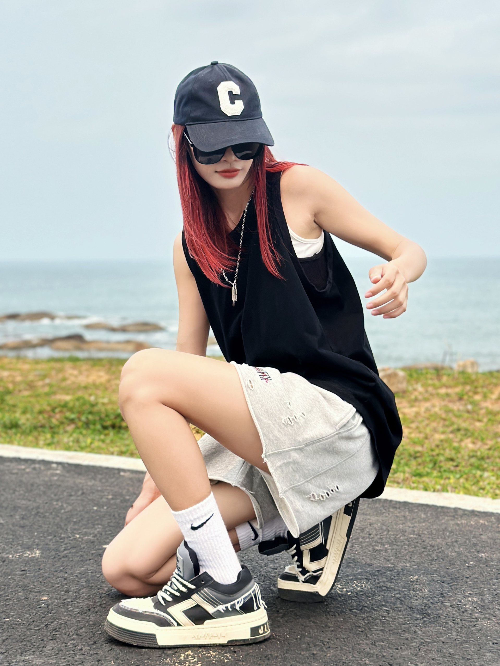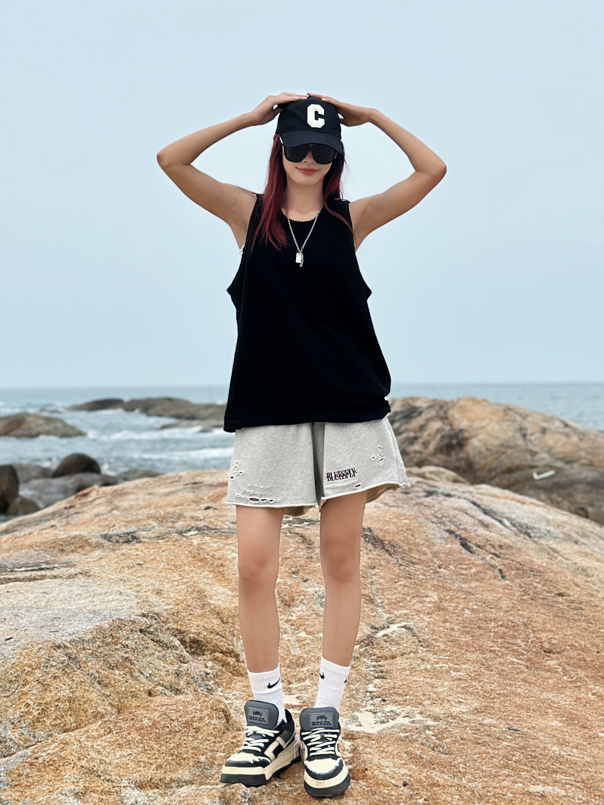 👧:168cm 48kg 👉🏻今日穿搭分享: 👕: BLUESFLY (S) 🩳: BLUESFLY (S) 🧢: CMFY ▫️夏天穿无袖背心真的既凉快又舒服,这种宽松版型穿上去很显瘦,内搭小背心就OK啦~ ▫️裤子搭配花灰色破洞短裤,卷边设计很特别,版型比较大,女孩子选S码就🉑️ ▫️这么帅气的一身当然少不了酷酷的棒球帽啦[WOW]帽子版型太正了!!不挑脸型还很显脸小,刺绣C...