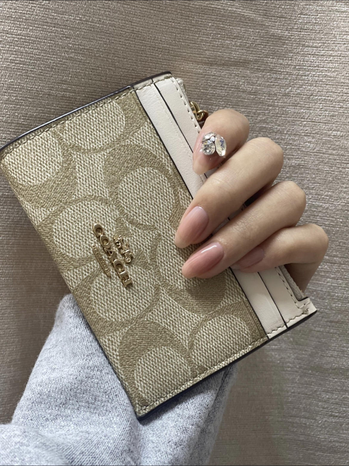 品牌名称:Coach Complimentary 17 纯色拉链开合抛光鹅卵石皮革零钱包 小小一只,最近非常爱带!算是出行必备了,出门取快递遛狗什么的,带上好方便!钥匙还可以挂上去,颜色百搭,摸起来质感好好! 图源网络侵删