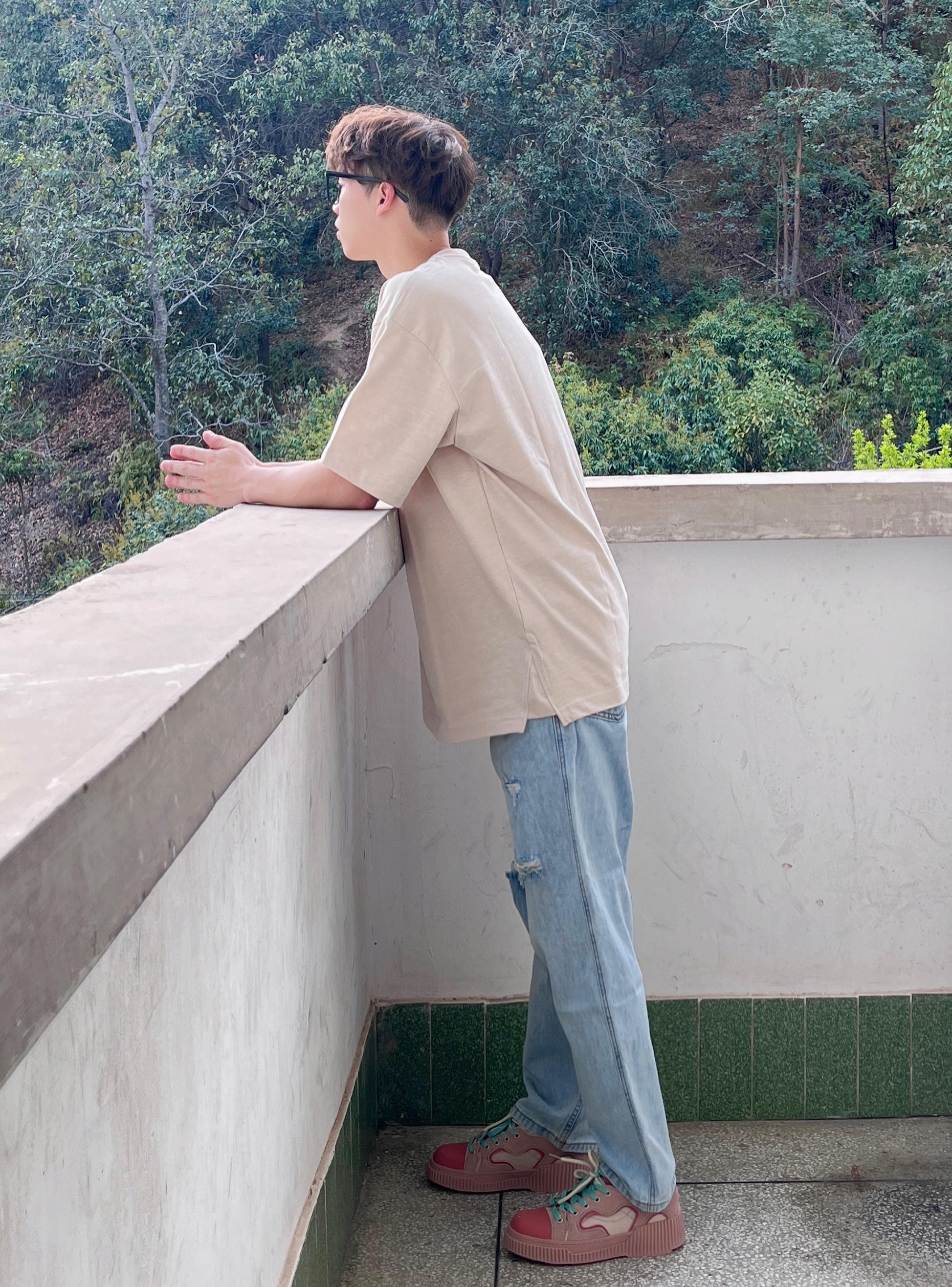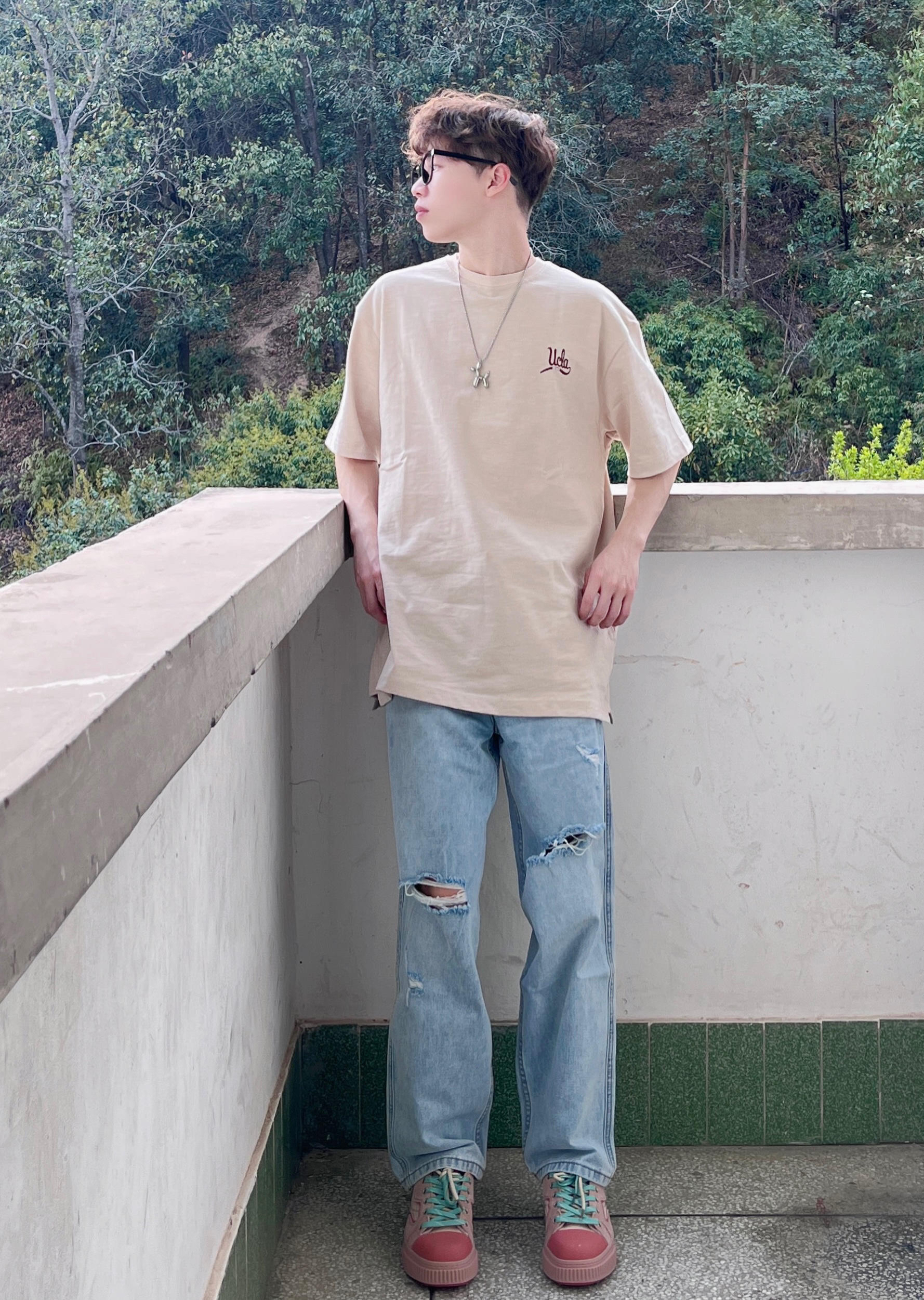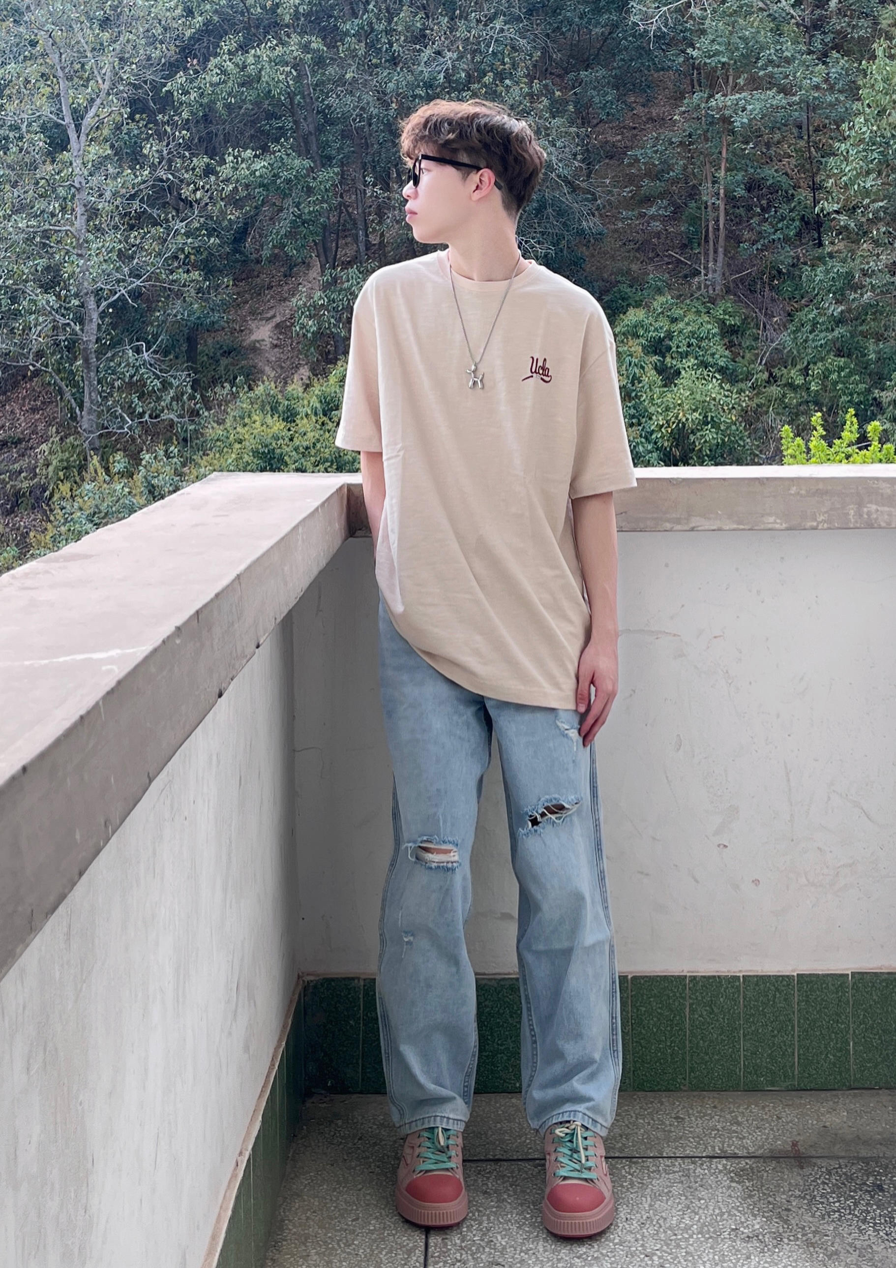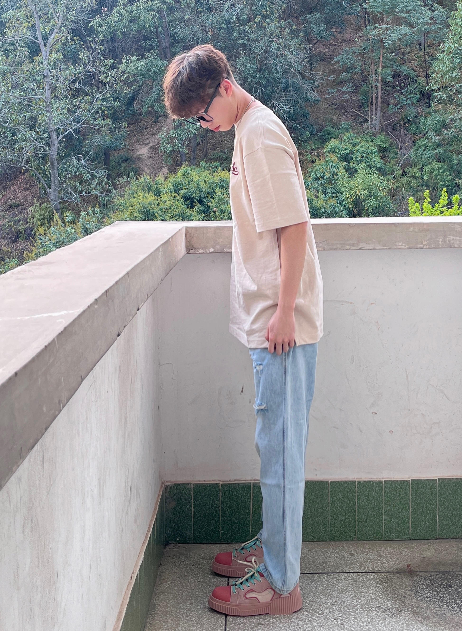 今天带来一天春季休闲感穿搭分享‼️ : 衣服是米白色的日系短袖 休闲简约风格 采用竹节棉面料 摸起来手感很舒适 很适合春夏出街 - 裤子是浅蓝色破洞牛仔裤 版型宽松又垂感 穿上舒适又显高 / 今天上脚的是小众原创的粉色滑板鞋 厚底增高设计 鞋面是很耐看的皮粉色 上脚感受舒适透气 质量和做工都很nice - 最后再搭配一条气球狗项链点缀 立体又可爱 一套搭配下来 真的很有感觉 你get到了吗