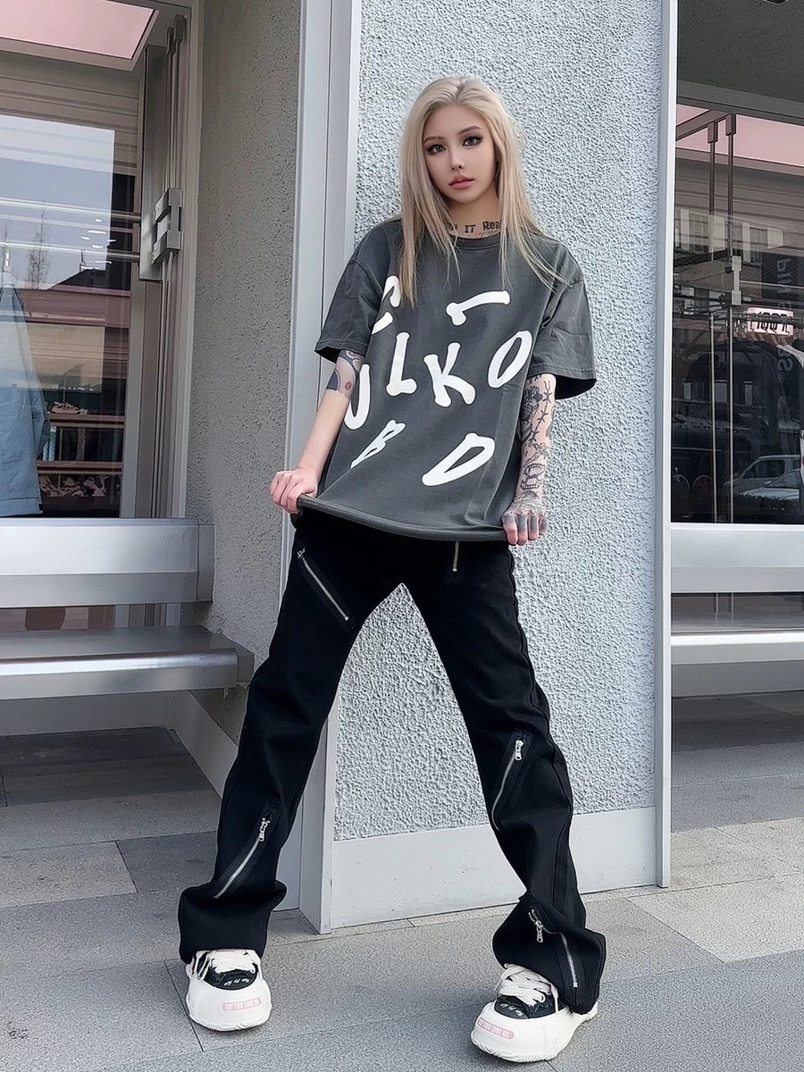 不得不说这也太鲨我了!!!一复古美式也太帅了开叉拉链简直了还无敌显腿直腿瘦!大小腿肉都被遮住了!!