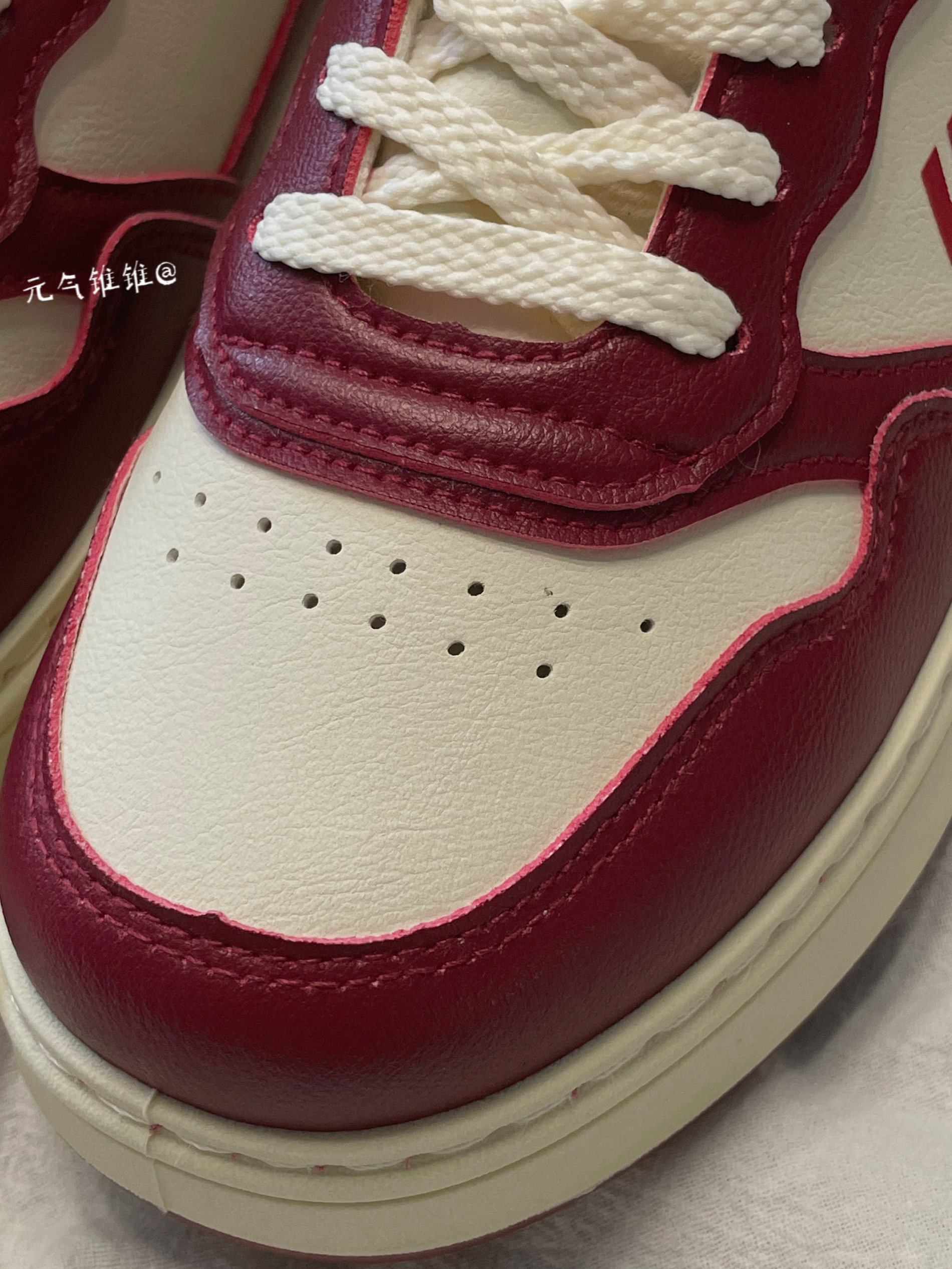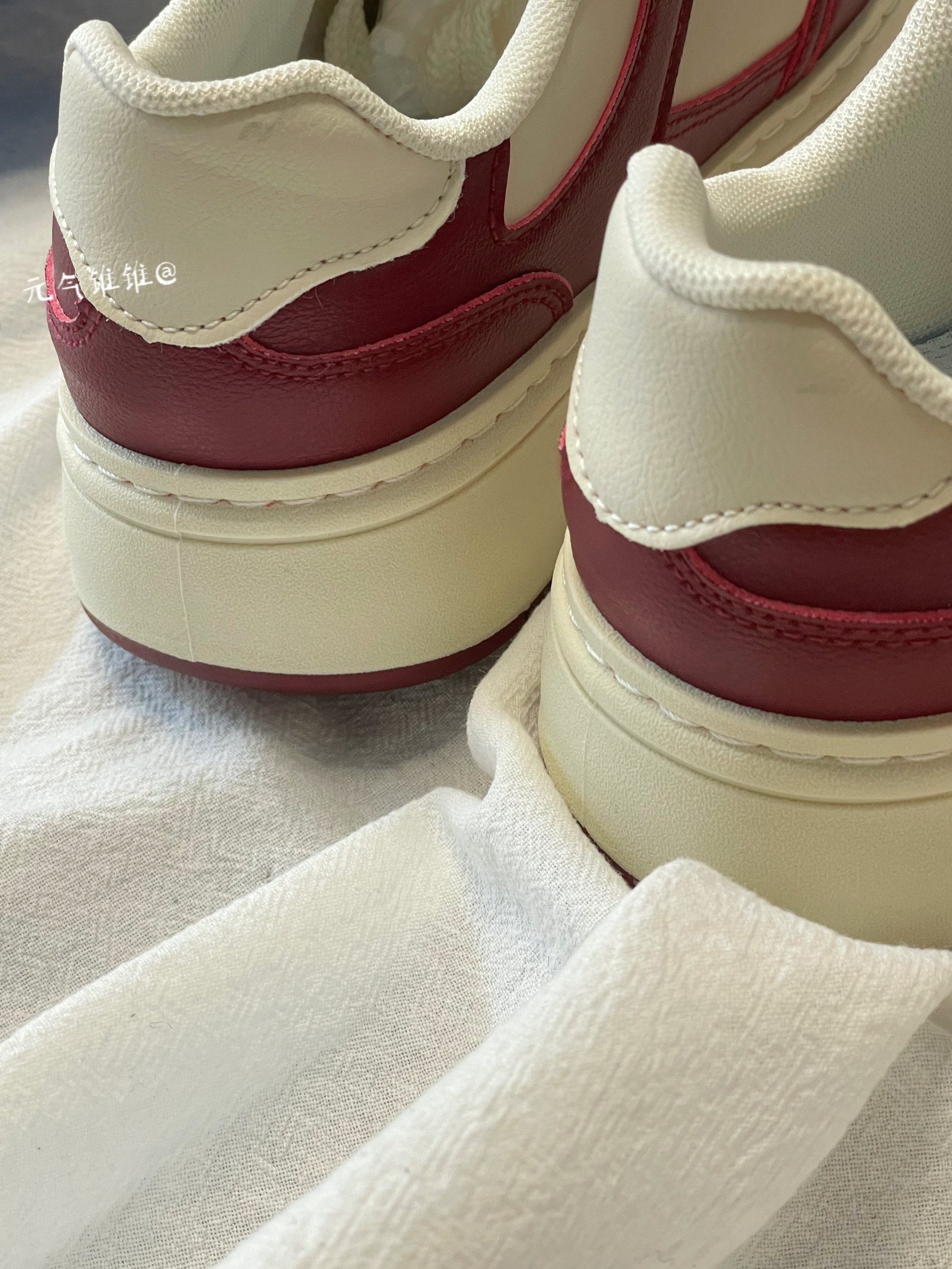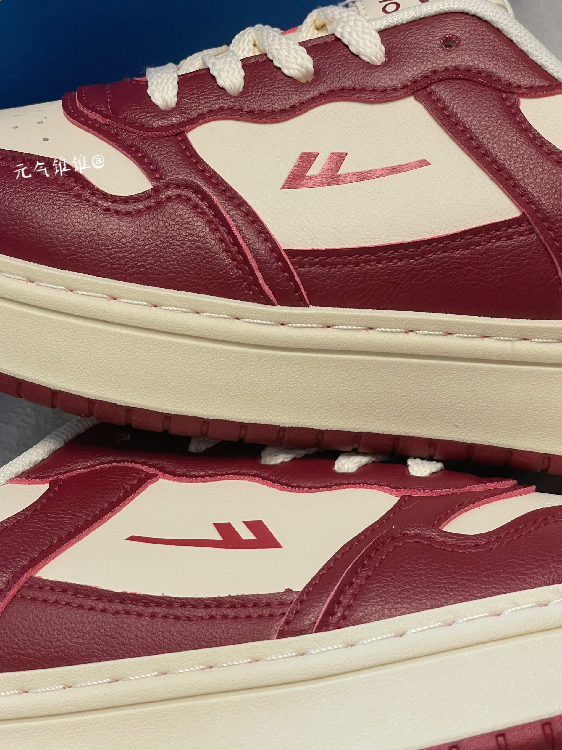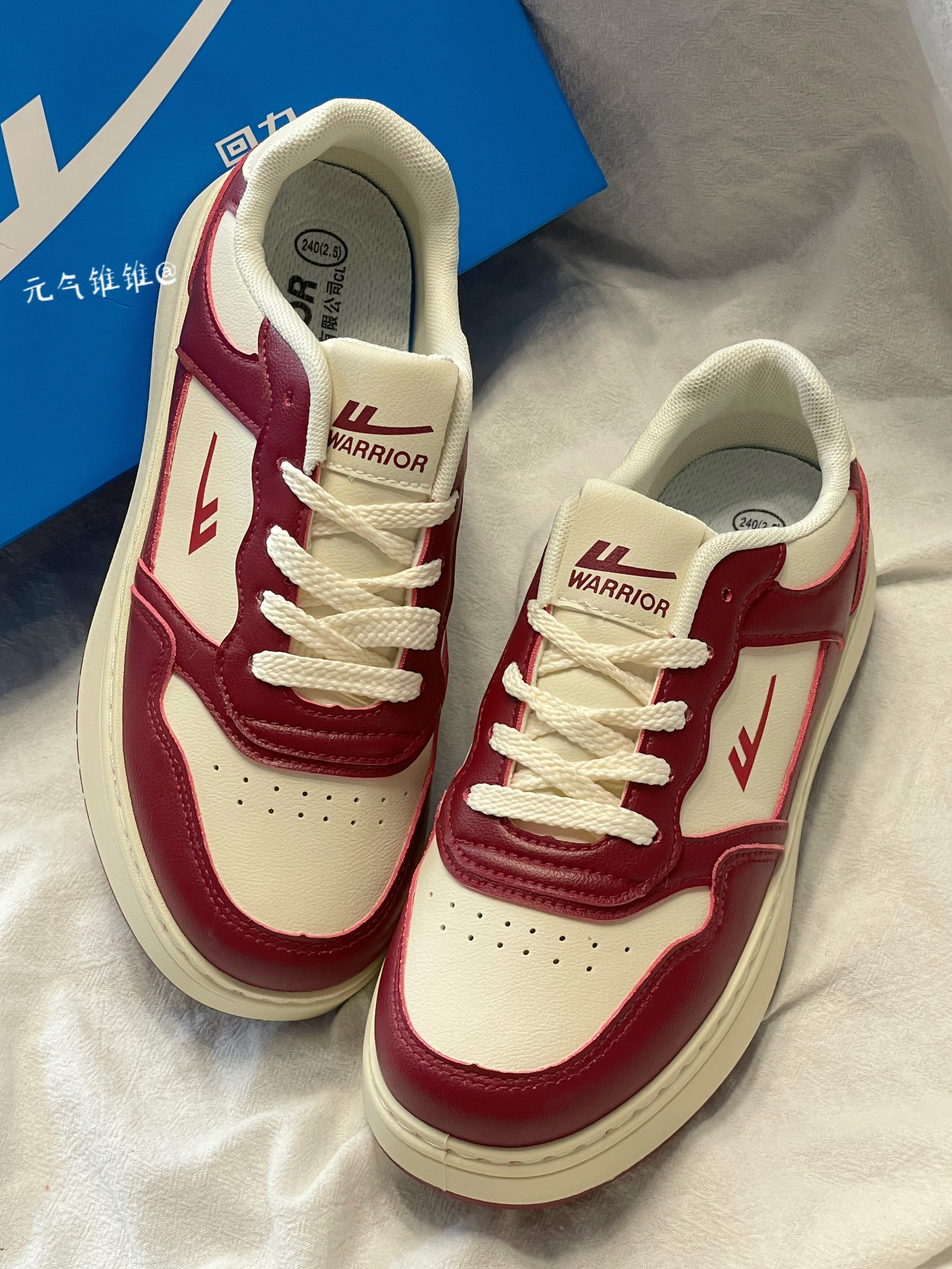 Warrior回力 复古 低帮板鞋 女款 米酒红 鞋身采用酒红和白色拼接搭配,鞋面合成革材质质感柔软,酒红色鞋框搭米白鞋面,鞋舌、外侧logo也是酒红色搭配,白色柔软内里,同时还搭配米白色厚底设计,必须得有增高!!搭配红色橡胶大底 配色比较简洁复古一点,日常也特别好搭配,还带有增高效果!