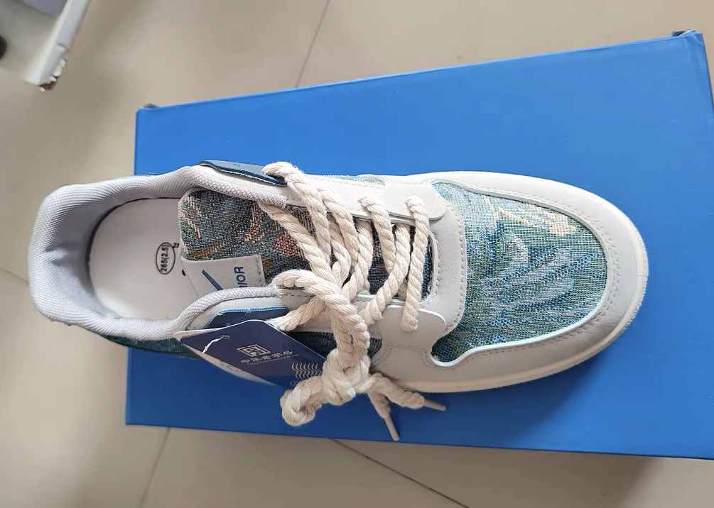 超级好看的一款板鞋!蓝绿色系相互交织勾勒 有一种渐变染料的感觉颜值非常顶!鞋面透气舒适 鞋带采用麻绳材质设计独特 还有增高效果 尺码正常选