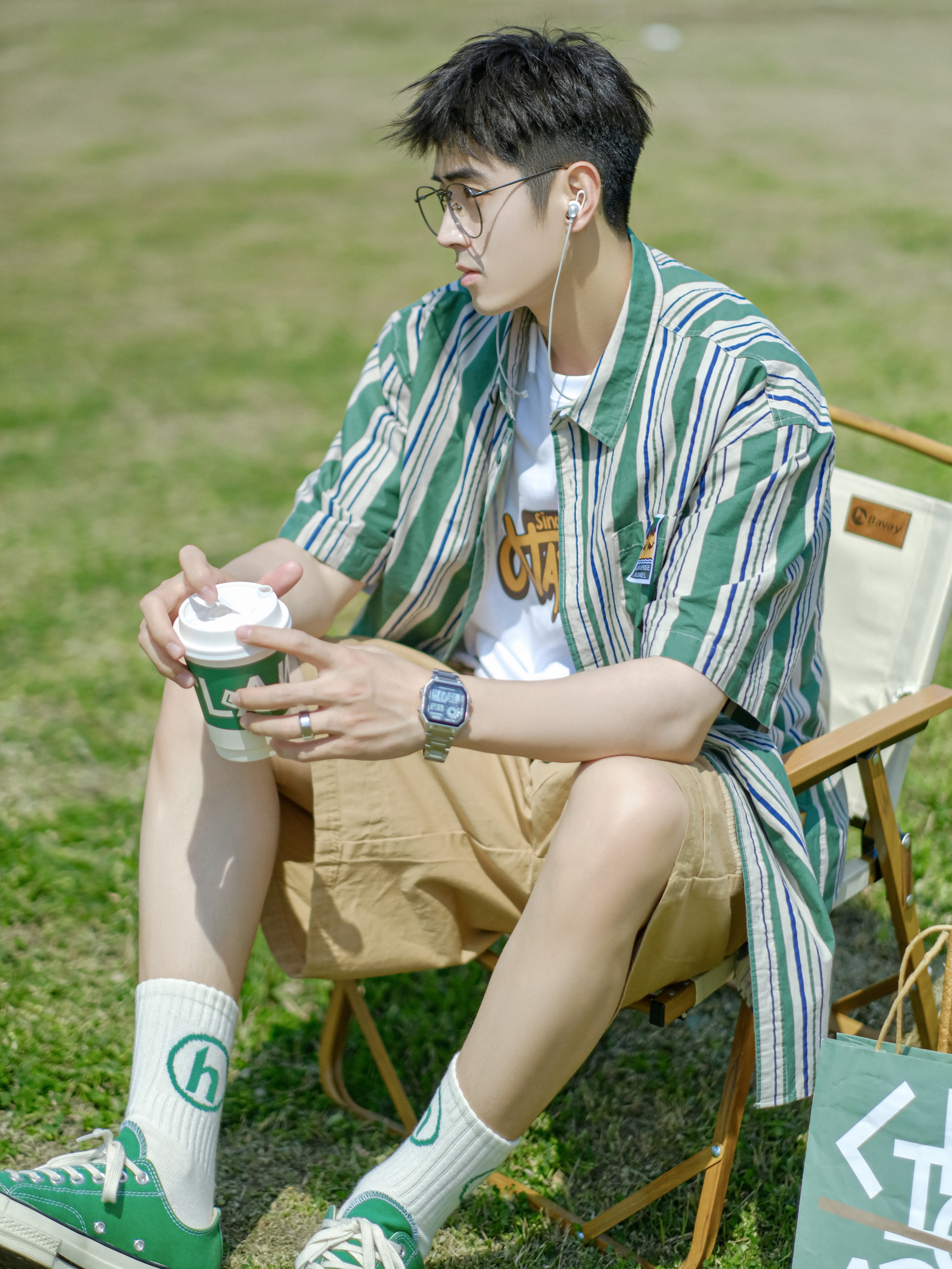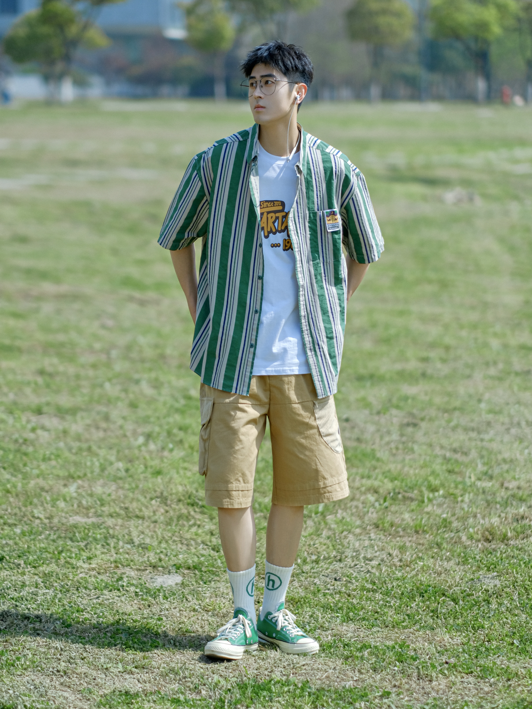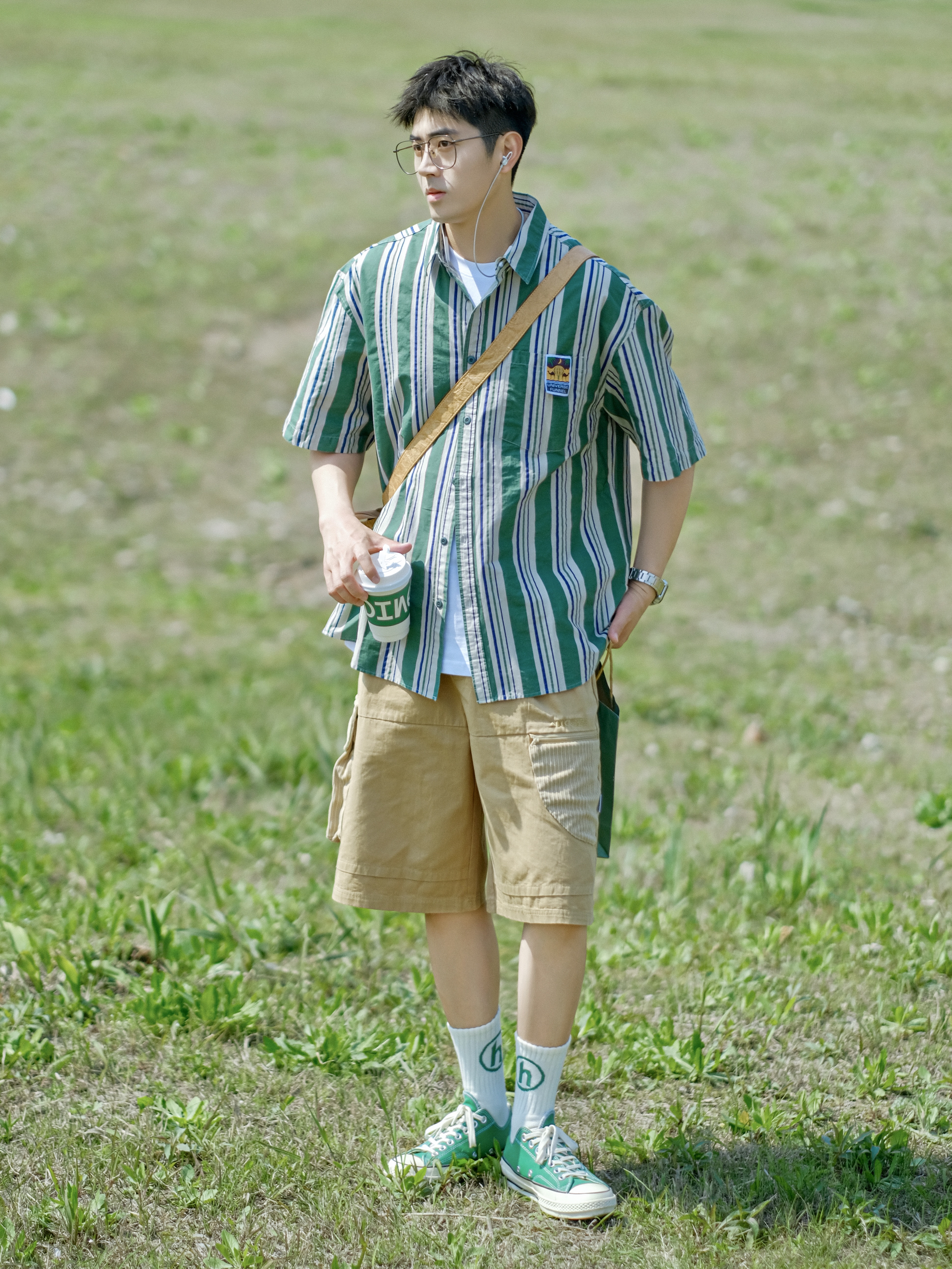 🍃夏天来了哦……周末快乐!😊✨…… — 🍃今天分享一套“初夏穿搭”—“绿色系”夏日露营穿搭!一整个清爽干净盐系男友风少年感穿搭!真的好适合男生夏季穿搭!🍃✨…… — ⚠️本人身高|体重:176CM|62KG(🉑️参考) — ⭐️今日份色彩搭配:“绿白橙”三色搭配🟢⚪️🟠…… · 1⃣️·🟢【绿白】条纹短袖衬衫,小清新日系单品,满满的日系少年感,好适合大学生周末出去露营穿搭!✨ 2⃣️·⚪️【白橙】...