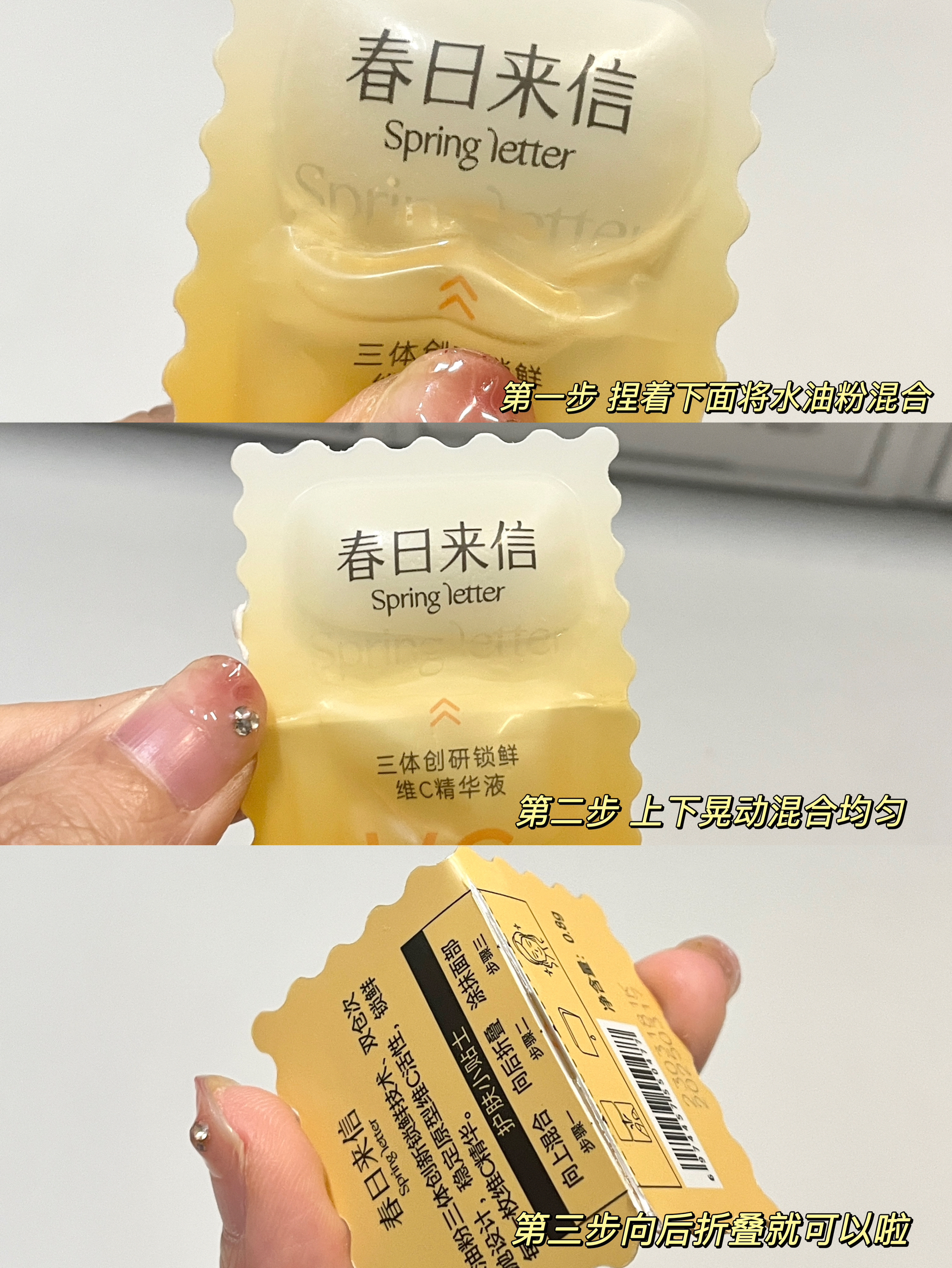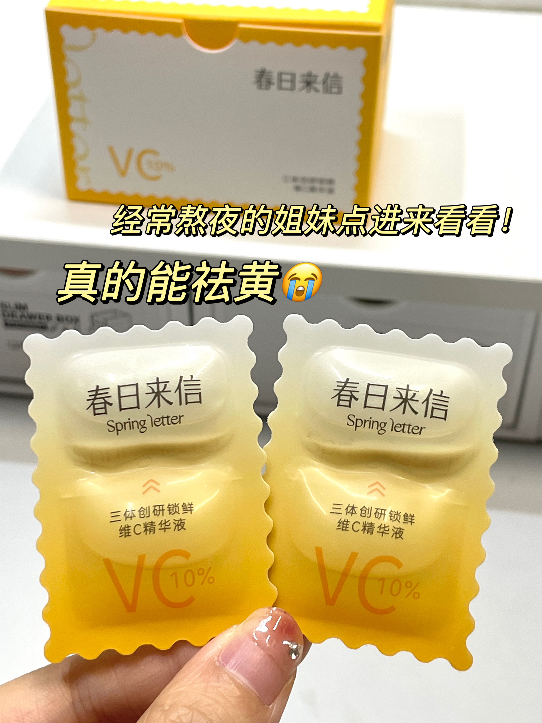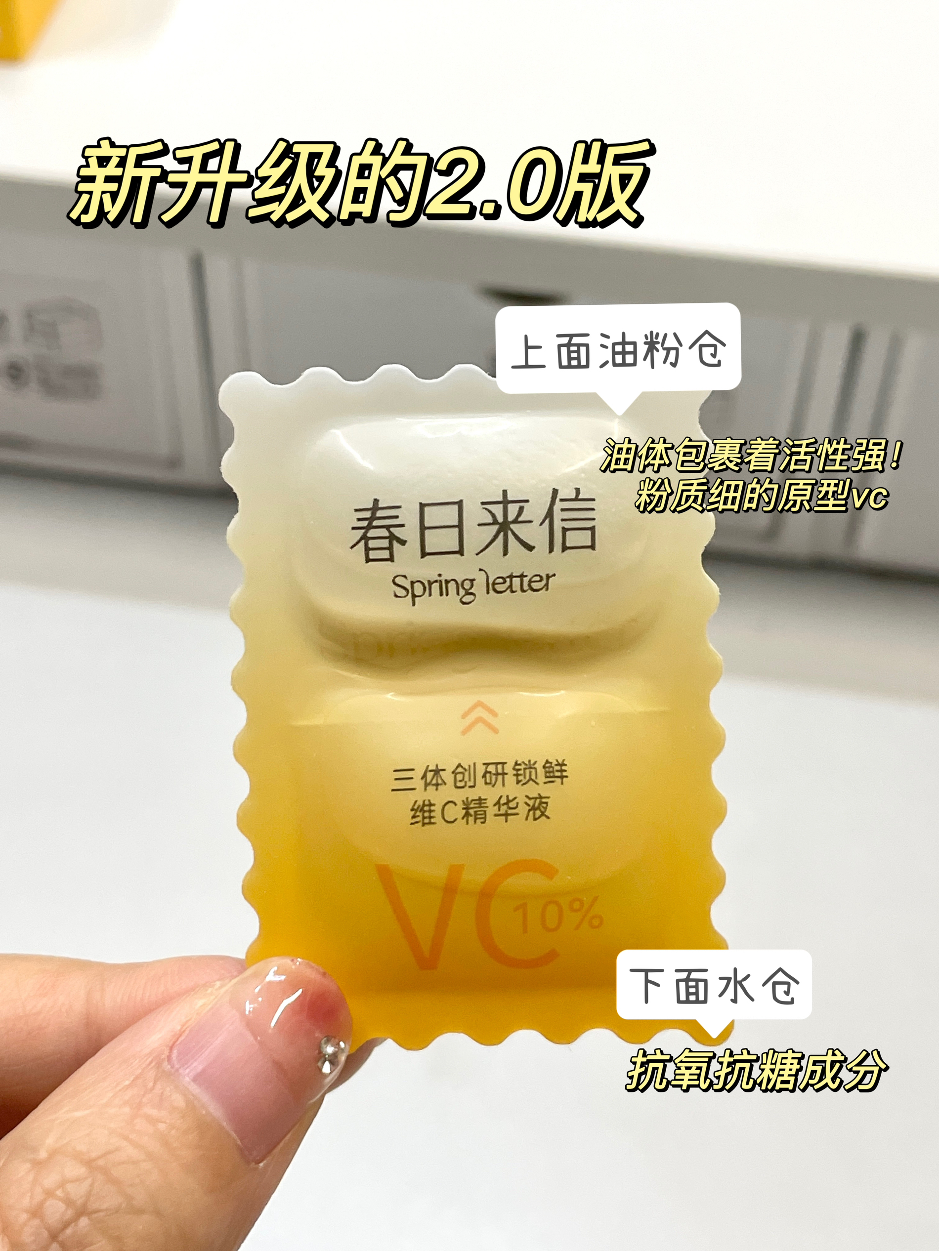 春日来信vc2.0版真的别太好用🐮 尤其是爱熬夜的宝子 用一次亮一次 还是双仓设计 很好避免vc失活氧化的情况 肤感很舒服~上脸清爽不油腻 熬夜后用它第二天皮肤就会很透亮 次抛设计 出门玩的时候带也很方便 宝子们记得根据皮肤情况 建立适应期 敏敏肌的姐妹也可以用~