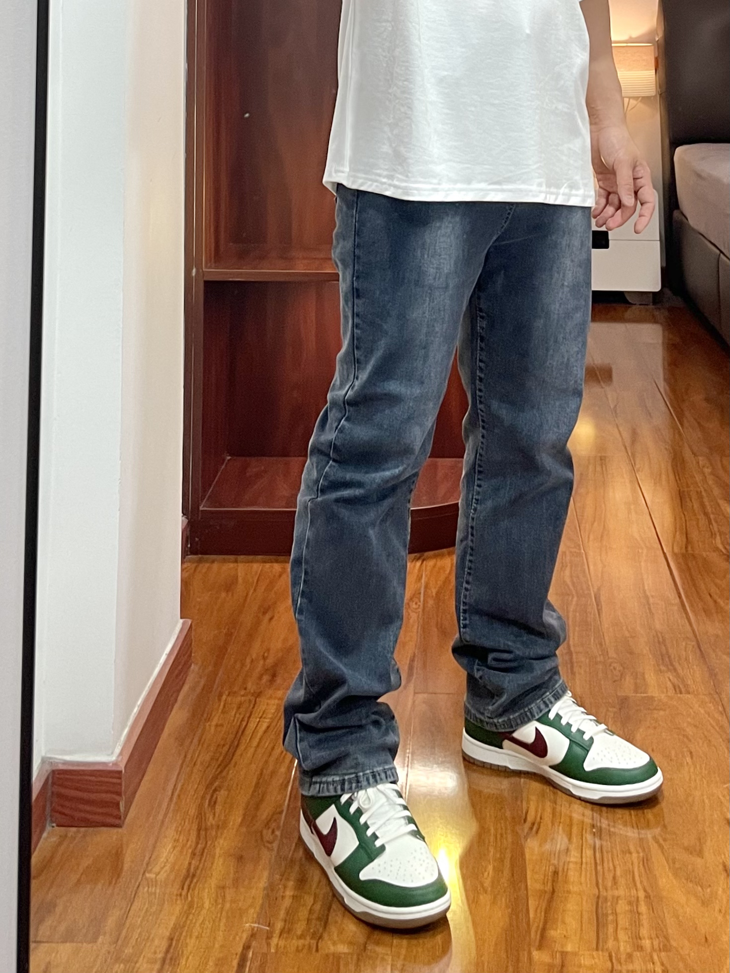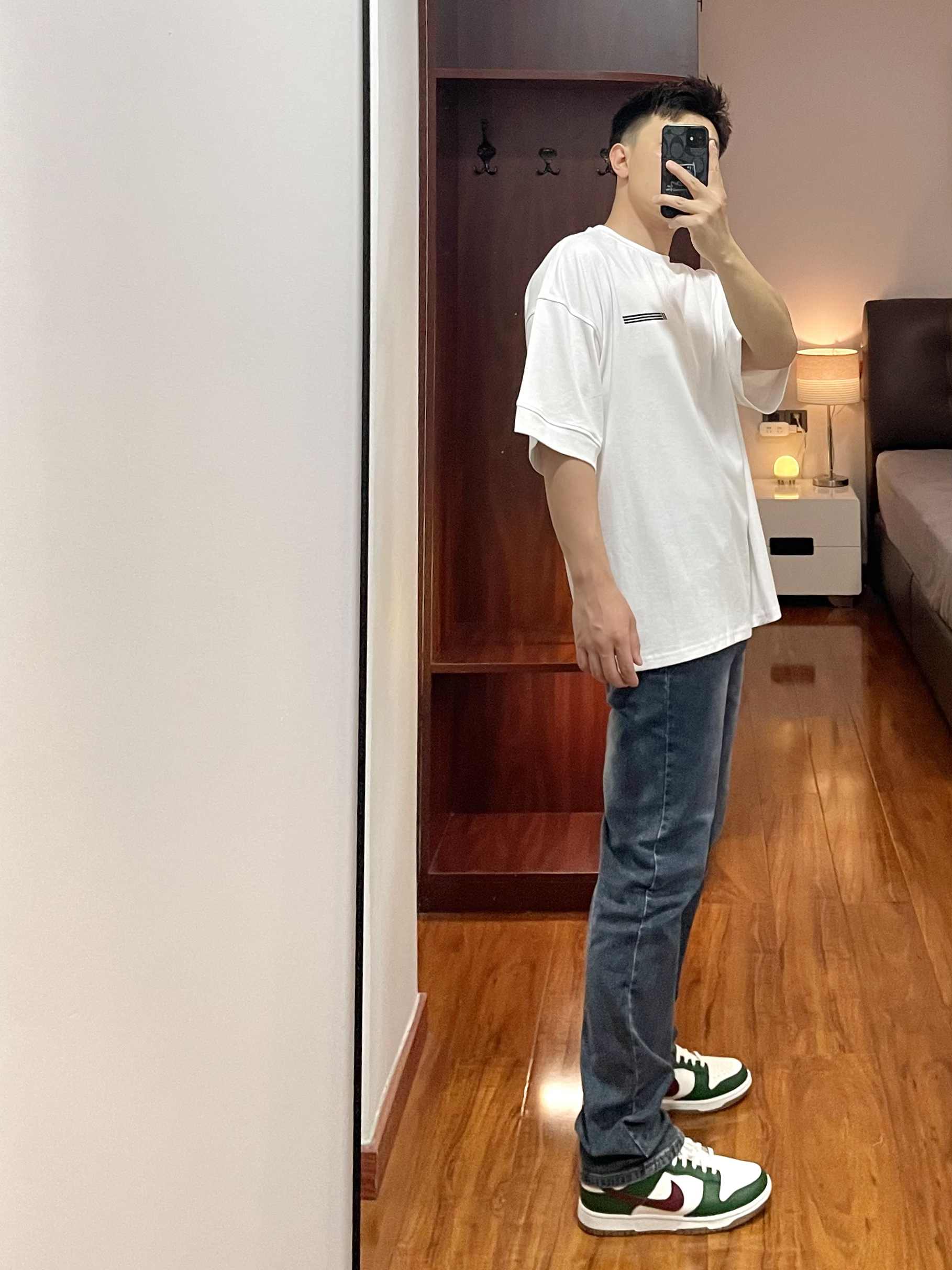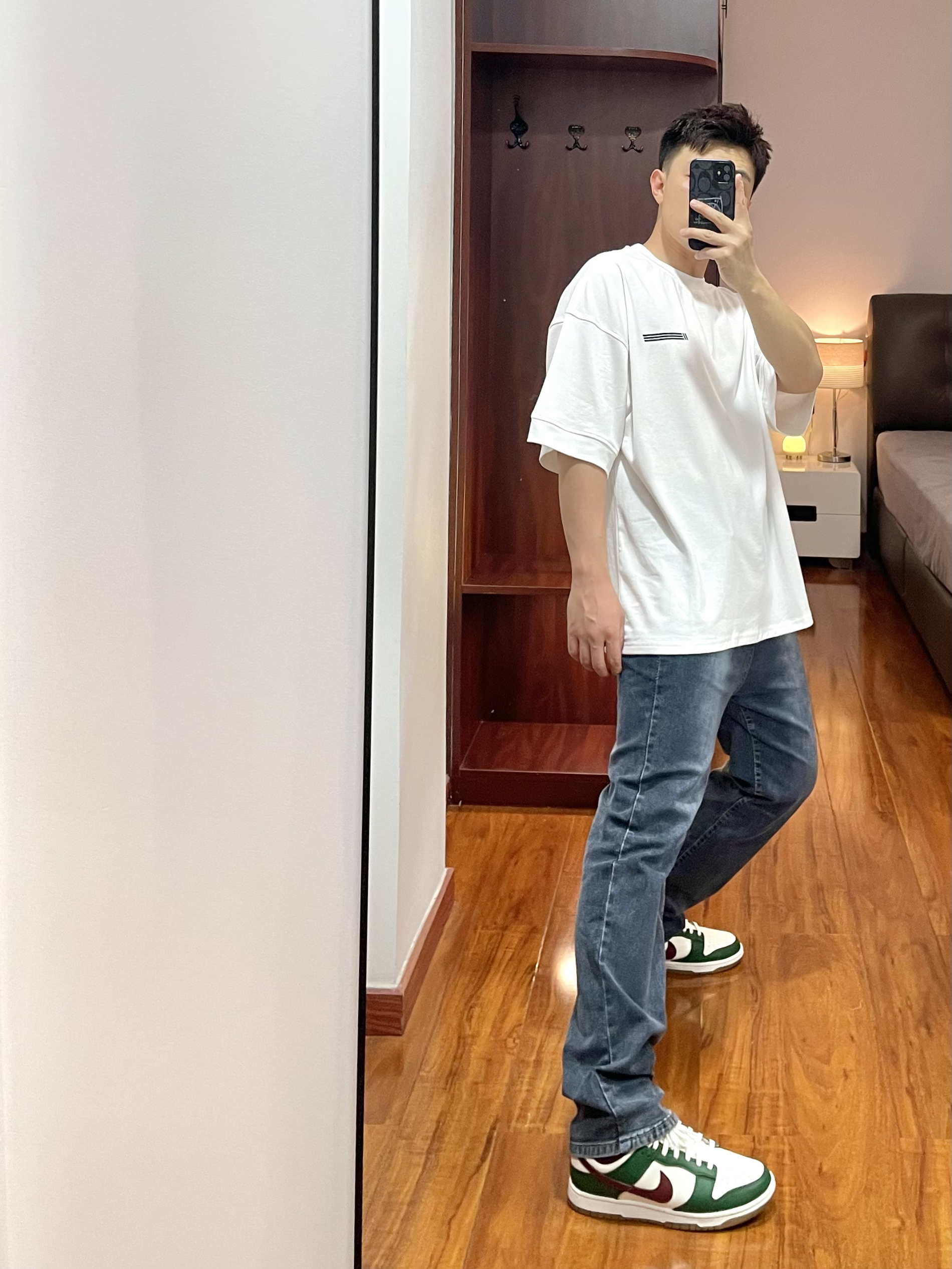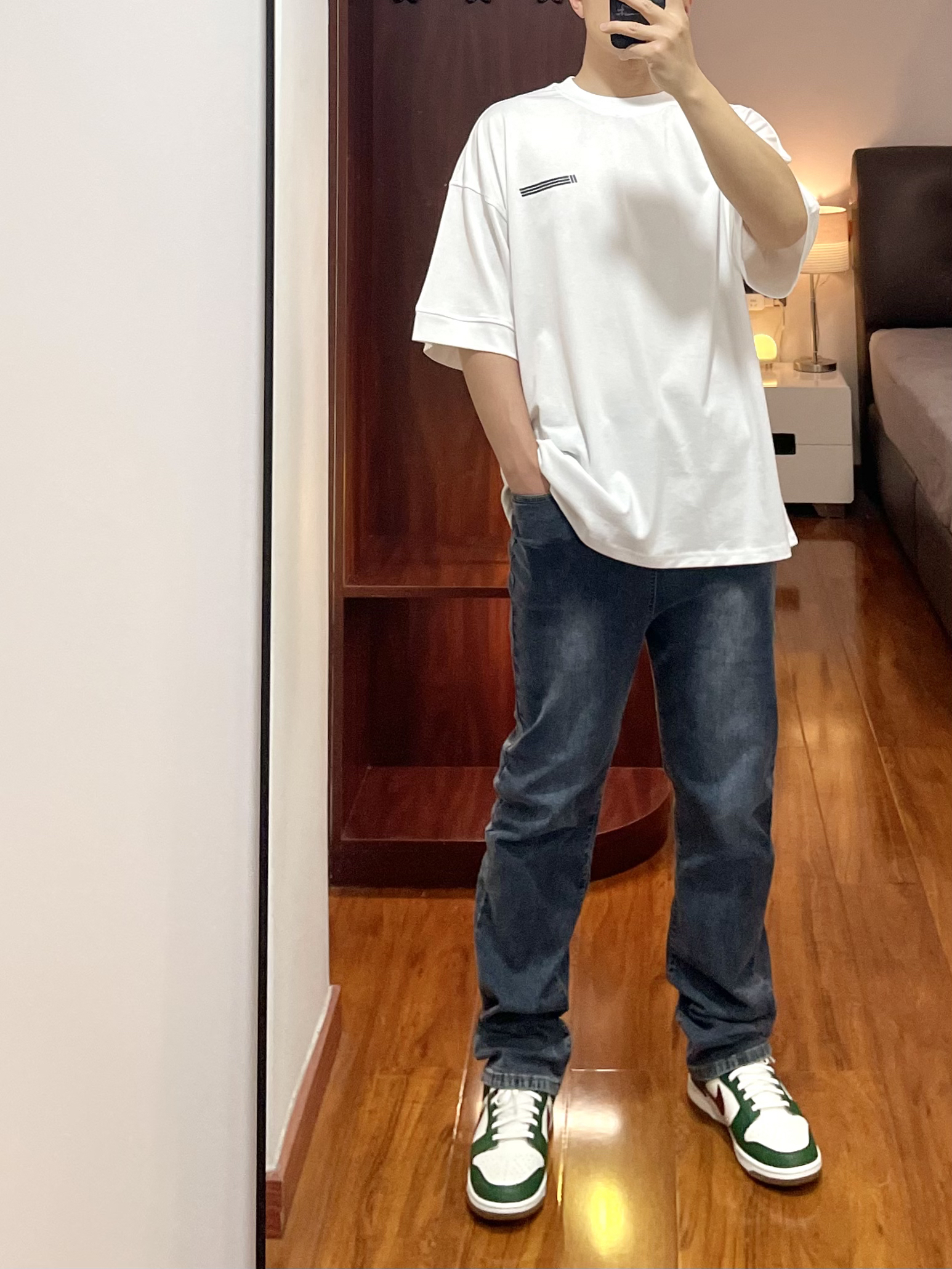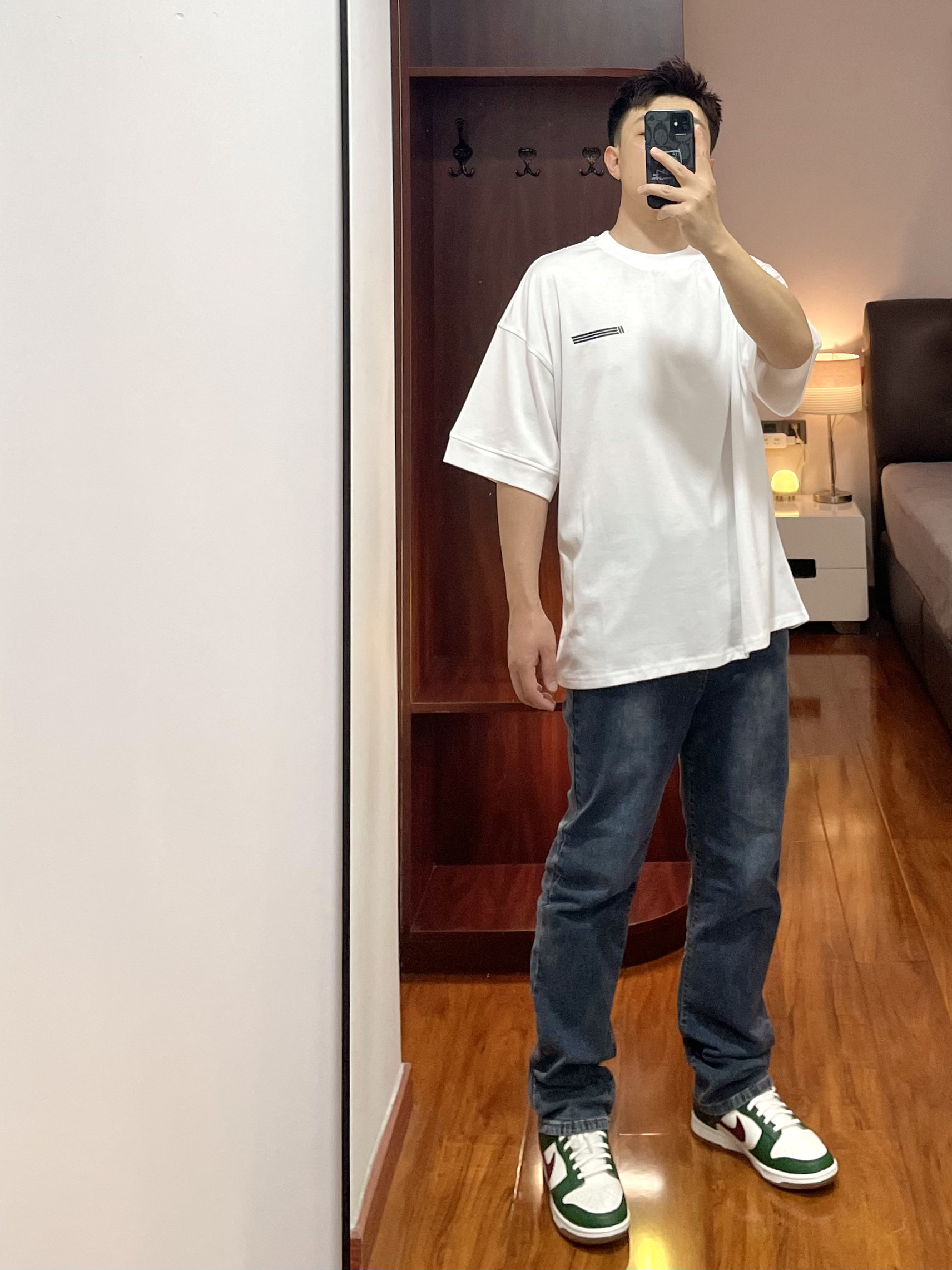 170cm/67kg 一个普通人的穿搭分享 👕:11ESTRANGER T恤-S 宽大的版型oversize风格的T恤,简单小logo印花,T恤上带有螺纹袖口也是挺特别的。 👖:牛仔裤 修身版型的牛仔裤,带有弹力的面料柔软不会有紧绷感,上宽下窄搭配与裤脚处的堆叠那感觉就出来了。 👟:Nike dunk