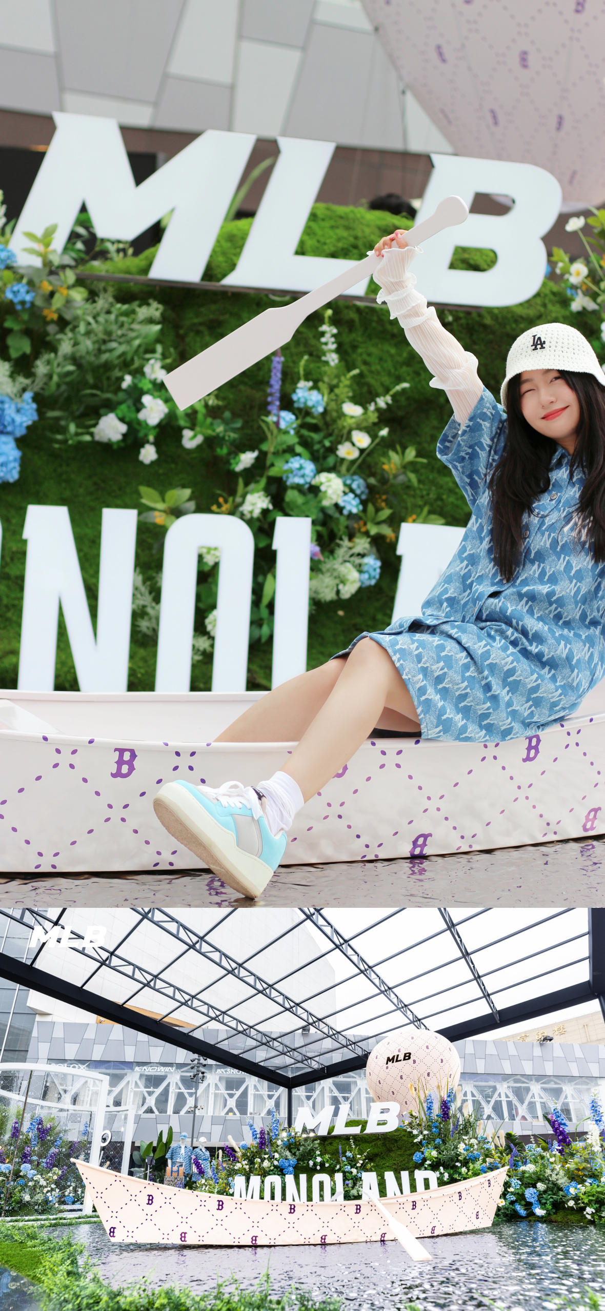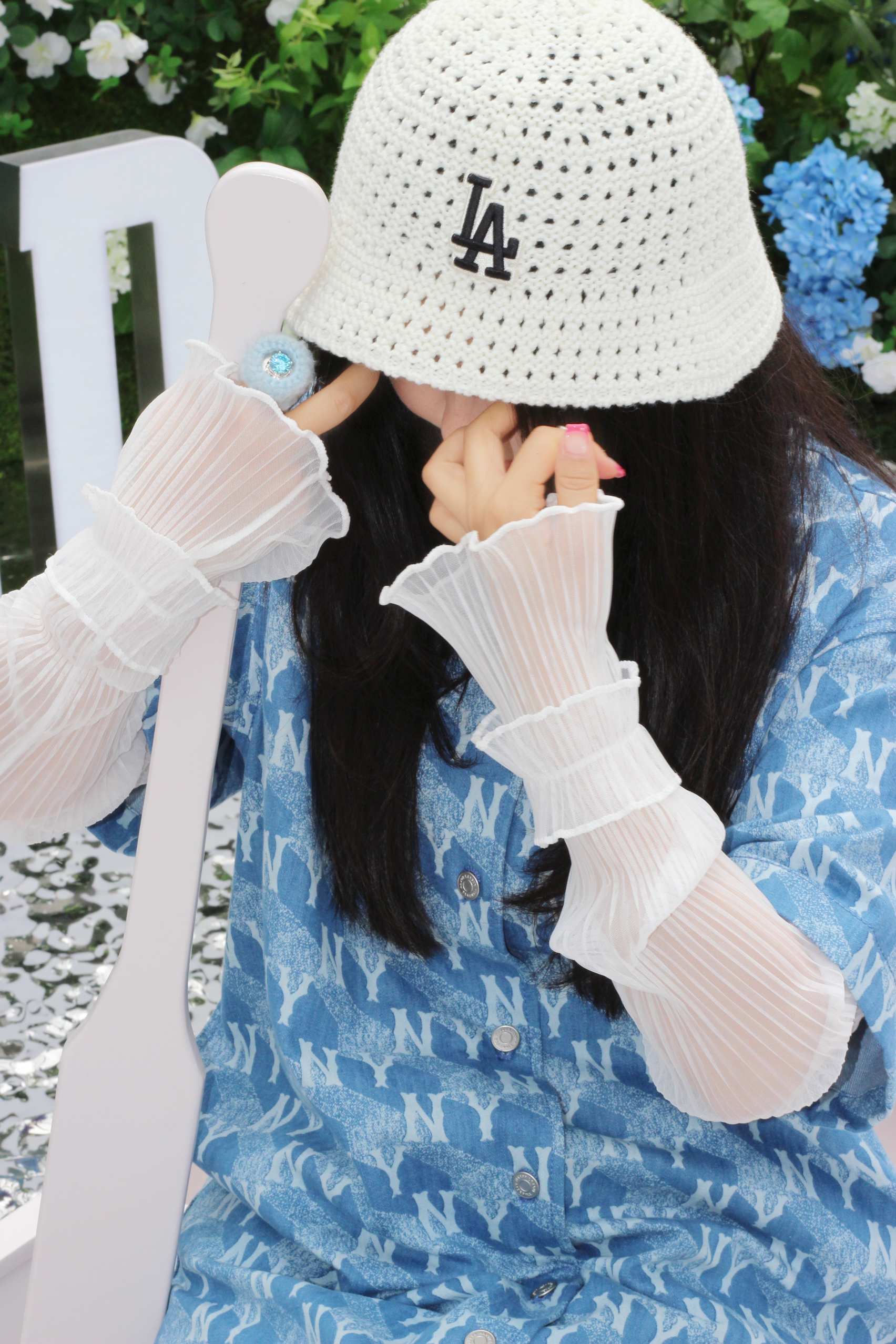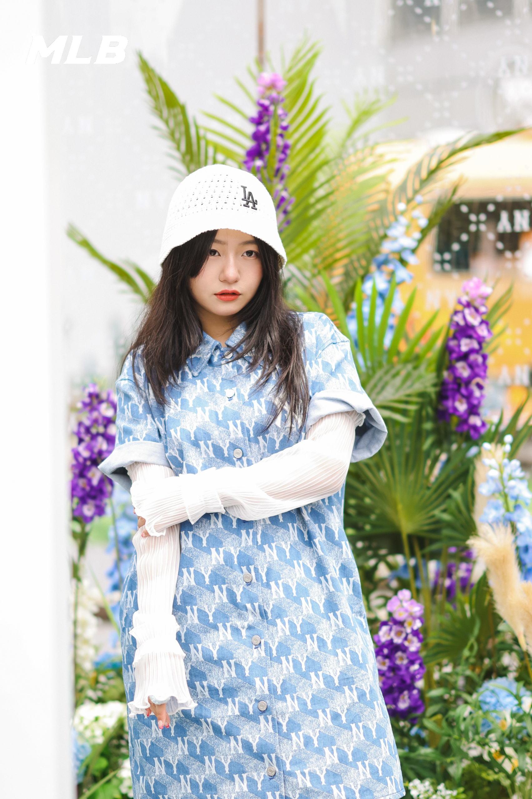 逛个展见到了@张凌赫z 。好瘦好高好白。 顺便夸一夸这个展好丰富,好玩! #Hedy OOTD# 看到最近泫雅在音乐节上的白色针织钩花帽子造型,立马搞了顶类似款,好看。[哇]牛仔连衣裙也被人夸了。 服装/帽子:MLB 鞋子:ARTICLE NO.