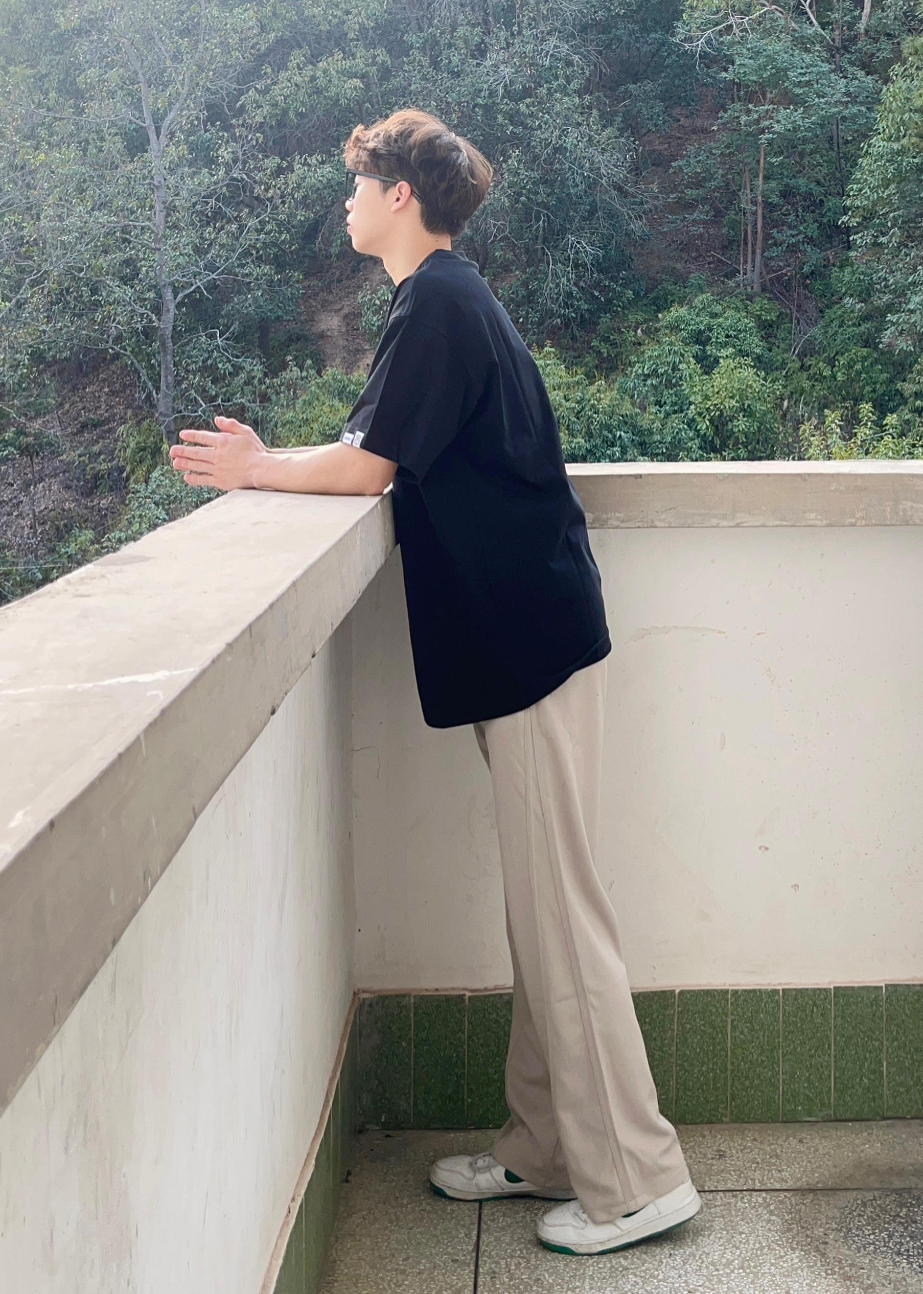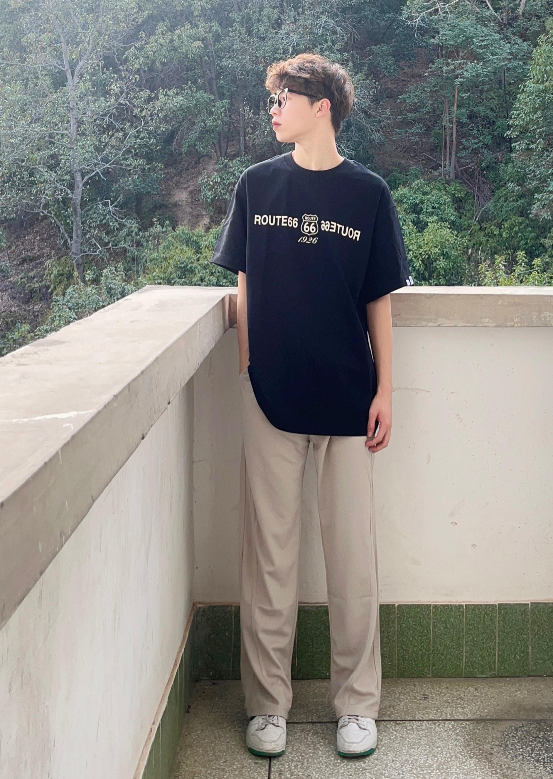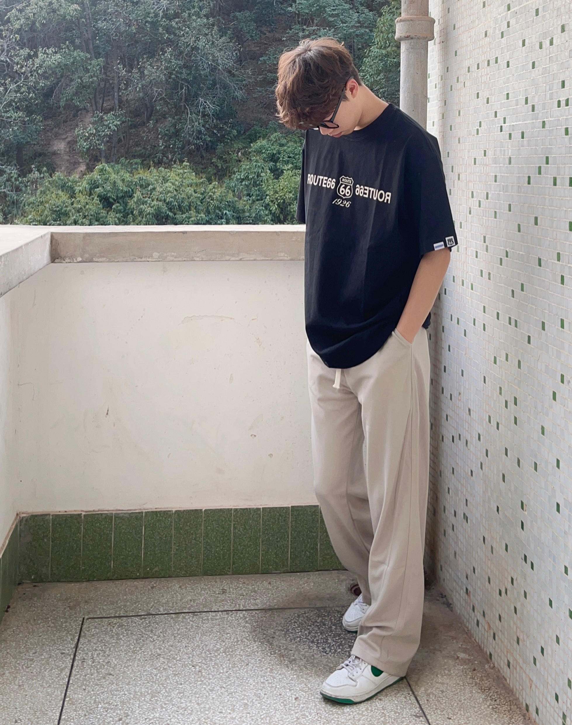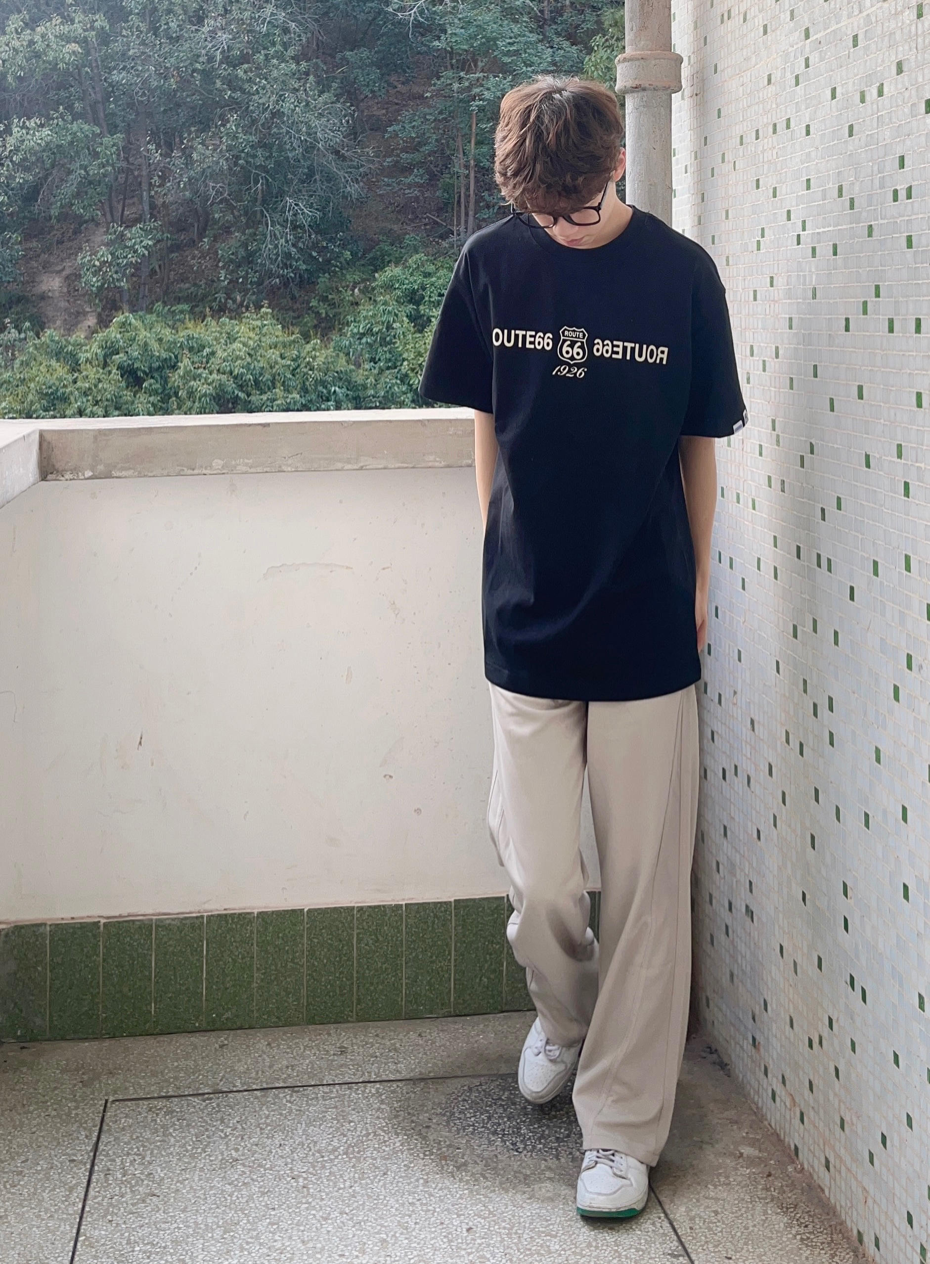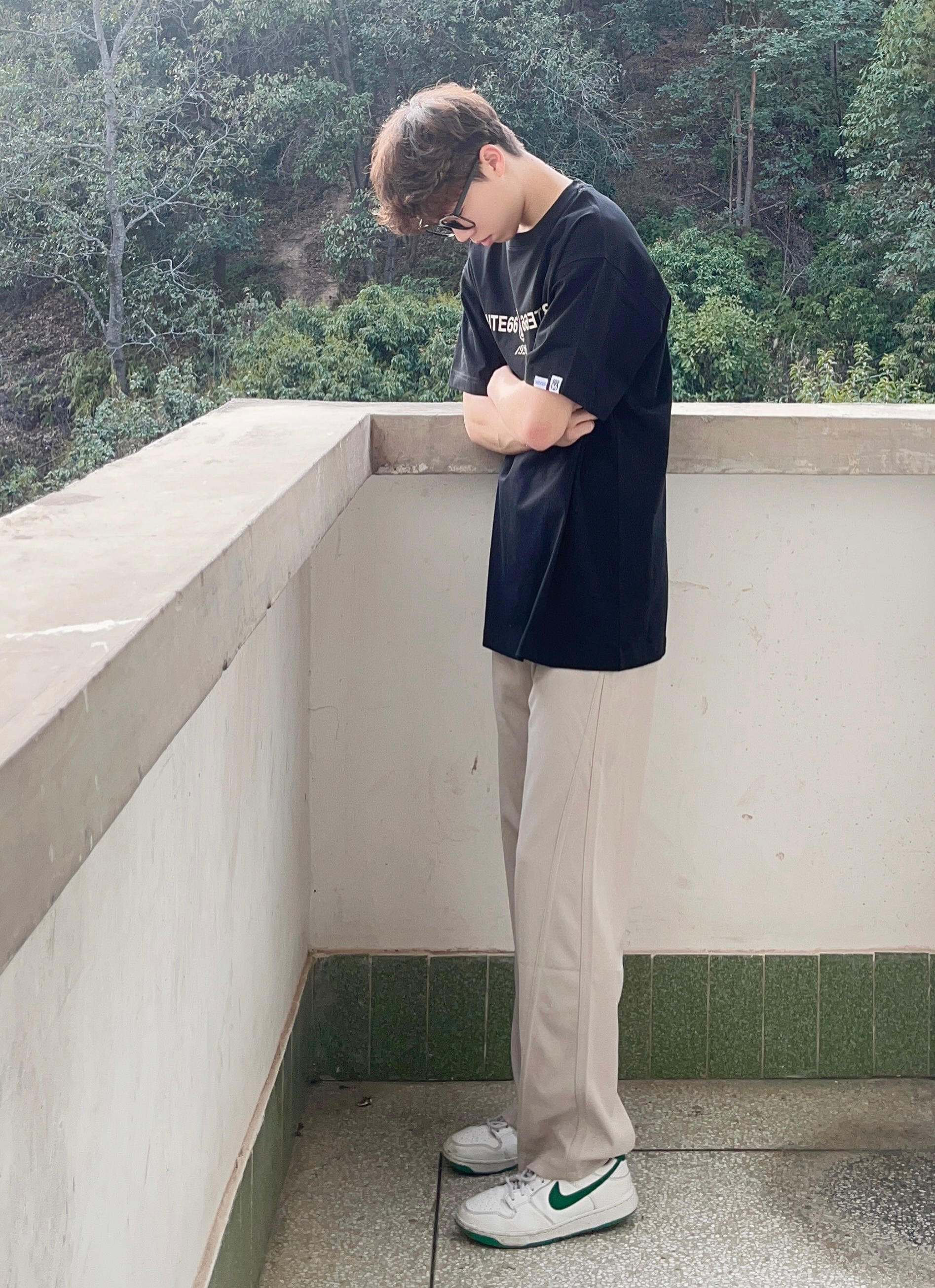 今天带来一套少年感穿搭分享‼️ - 黑色的美式短袖搭配白卡其色的直筒休闲裤 最后上脚一双白绿色板鞋点缀 春夏出街非常合适 - 一套搭配下来 少年感拉满 你pick到了吗