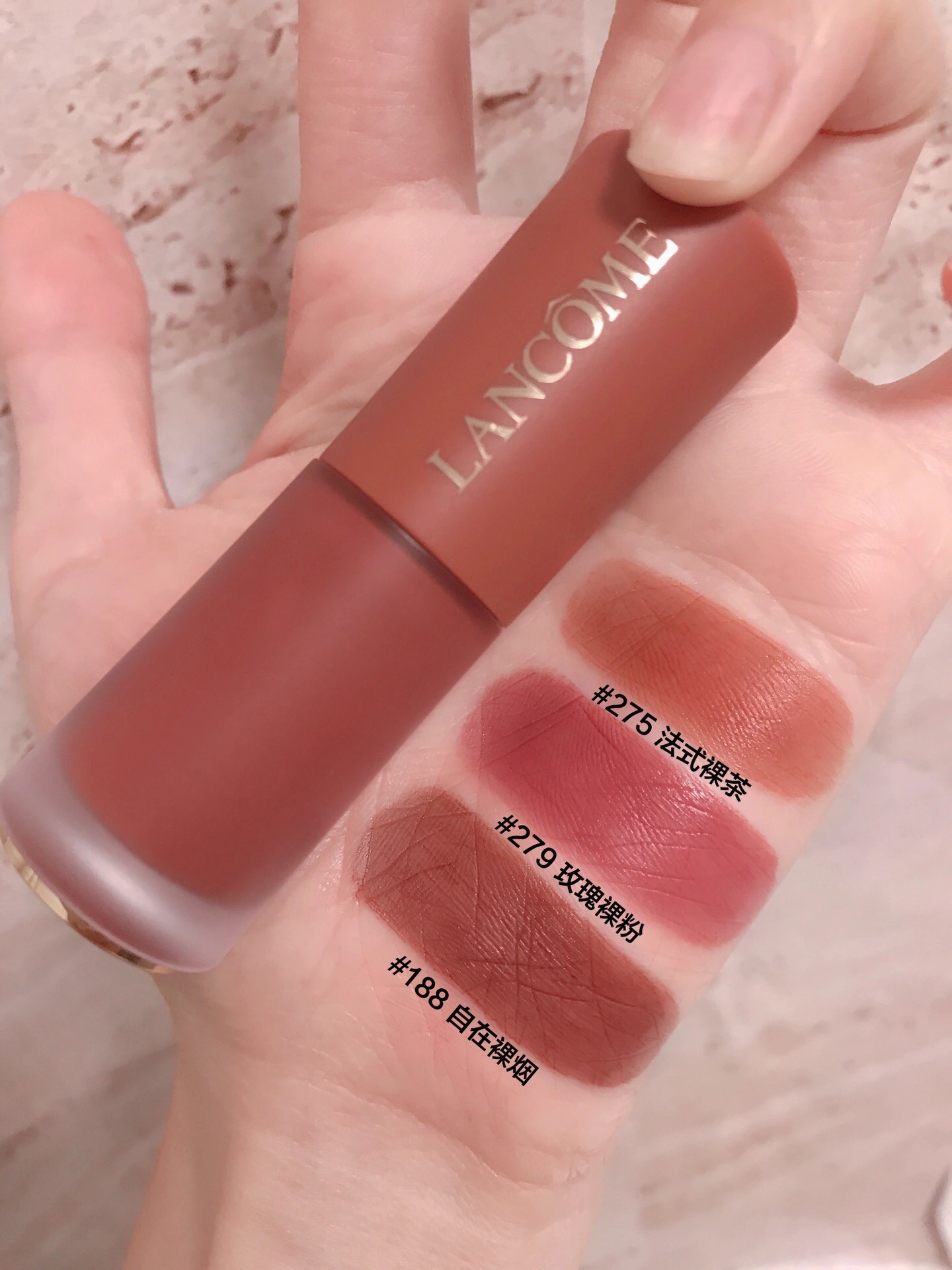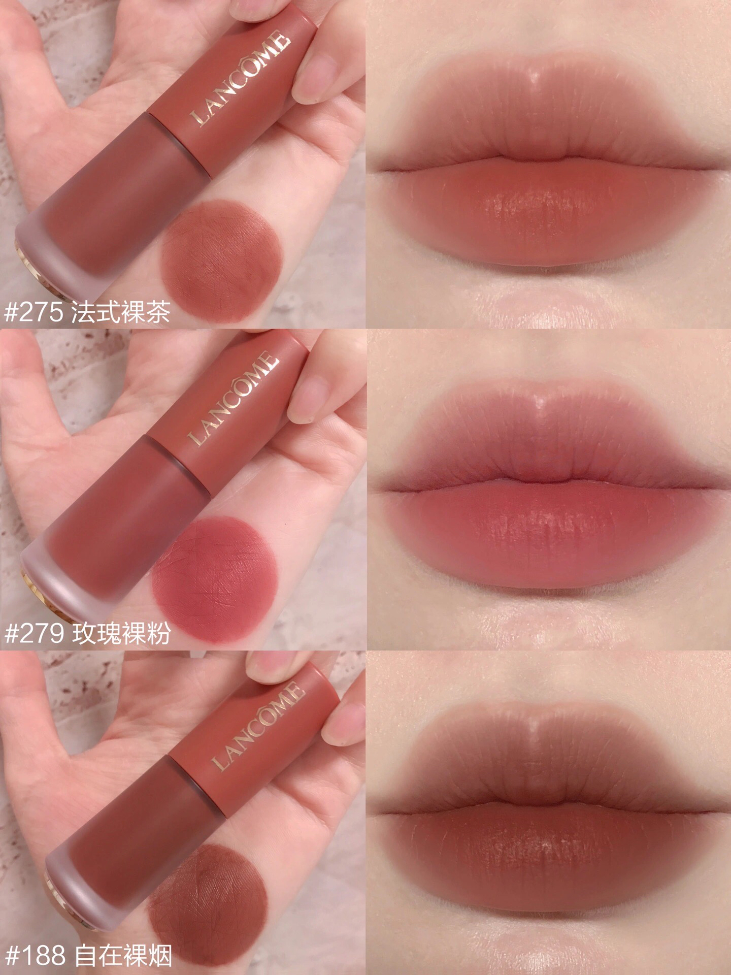 兰蔻新品!这调色真的赢麻了! 全员裸系调色,温柔感一整个迷晕我~ 🍧275法式裸茶,嫩桃奶茶棕,低饱和度巨温柔,黄皮也可以涂的裸色,很显优雅! 🍧279玫瑰裸粉,春日玫瑰粉棕,很千金很甜嫩,妈生自然唇,特少女感! 🍧188自在裸烟,清冷气质烟茶棕,甜酷显气质,特高级! 新质地是那种裸纱感的,薄纱般顺滑不卡纹,很薄很柔上嘴不闷很显色,味道也很大牌,我真的涂一次夸一次! #兰蔻菁纯裸唇釉 #我的口红日...