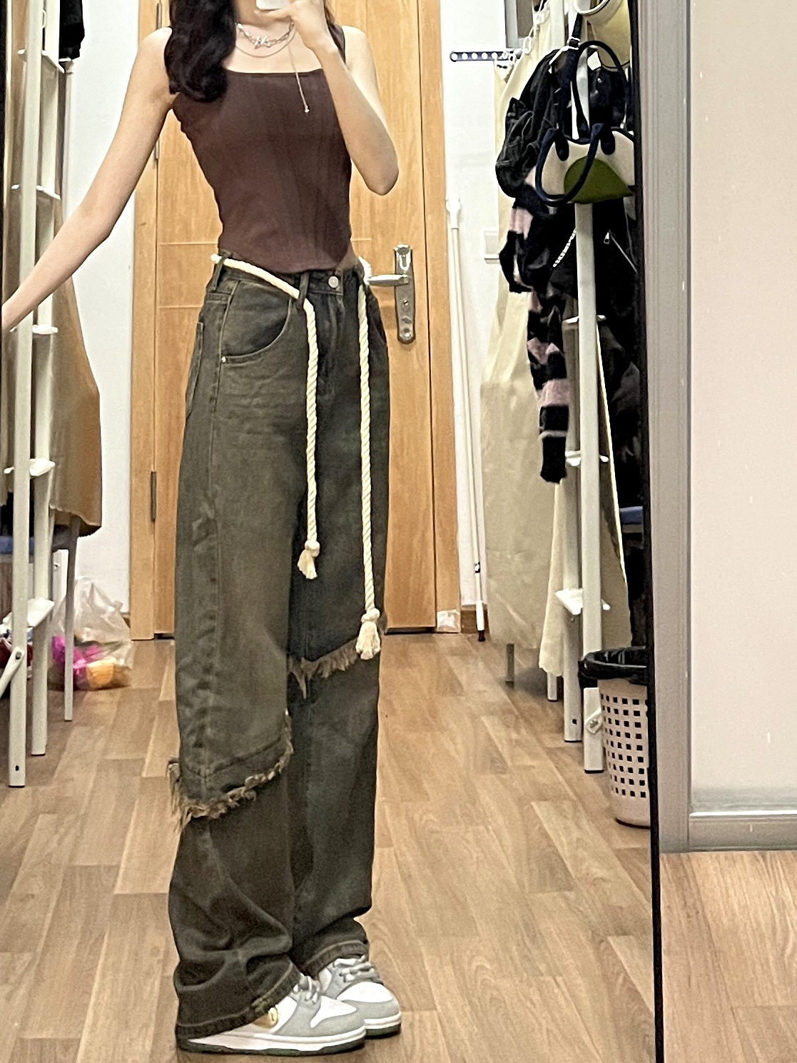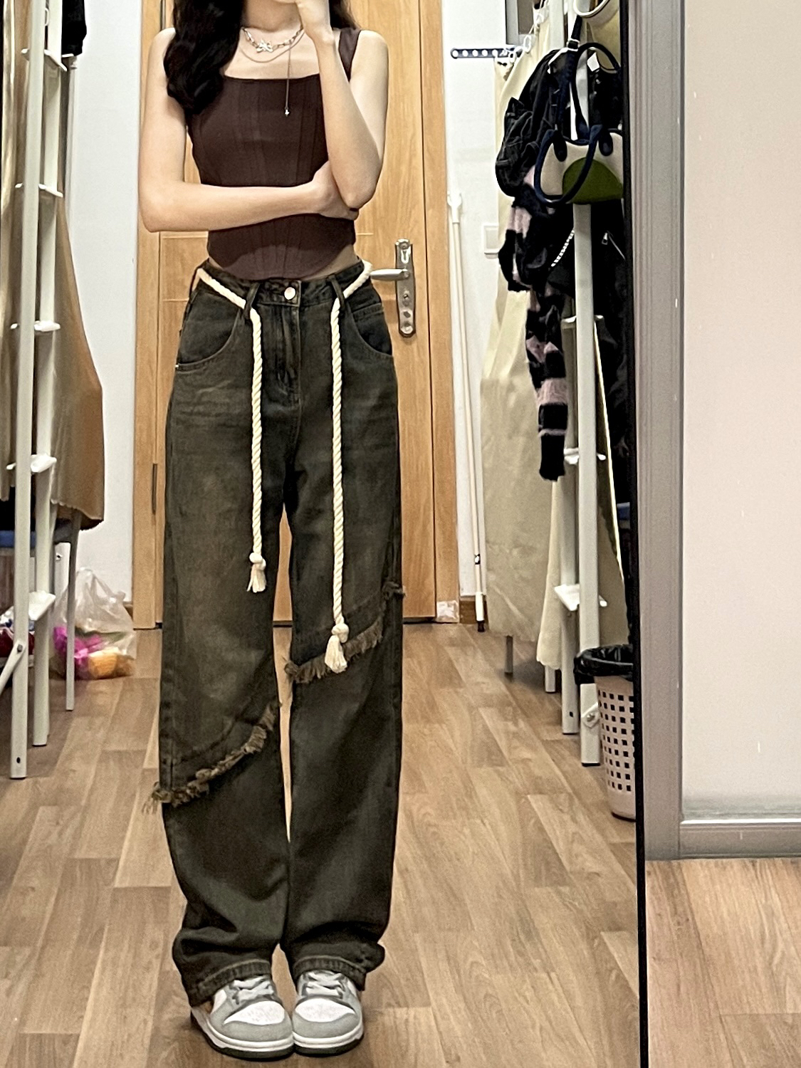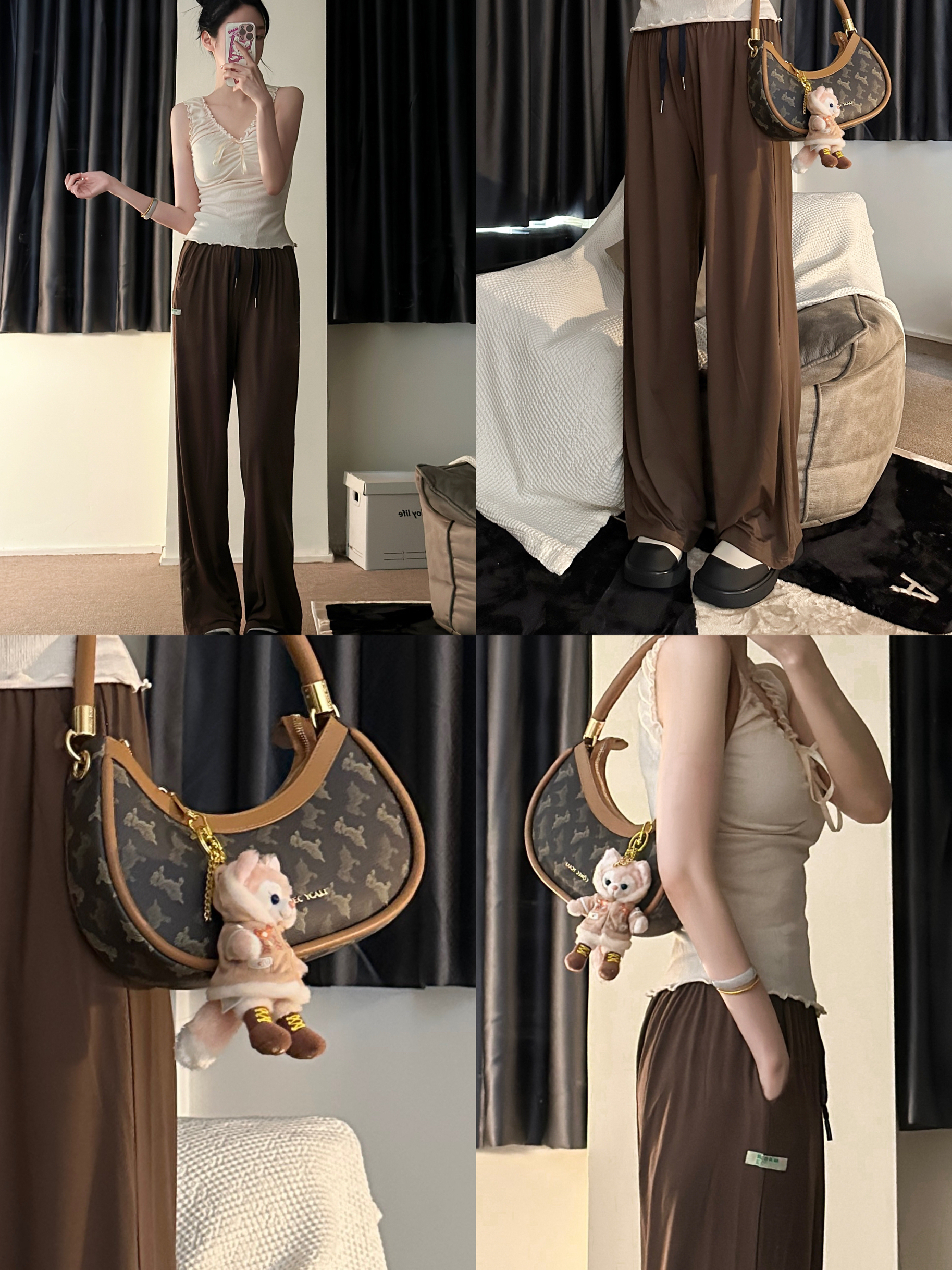 小个子都试试吊带+阔腿裤 好显高显瘦哦!! 自带腰带的阔腿裤 好喜欢 版型也很好