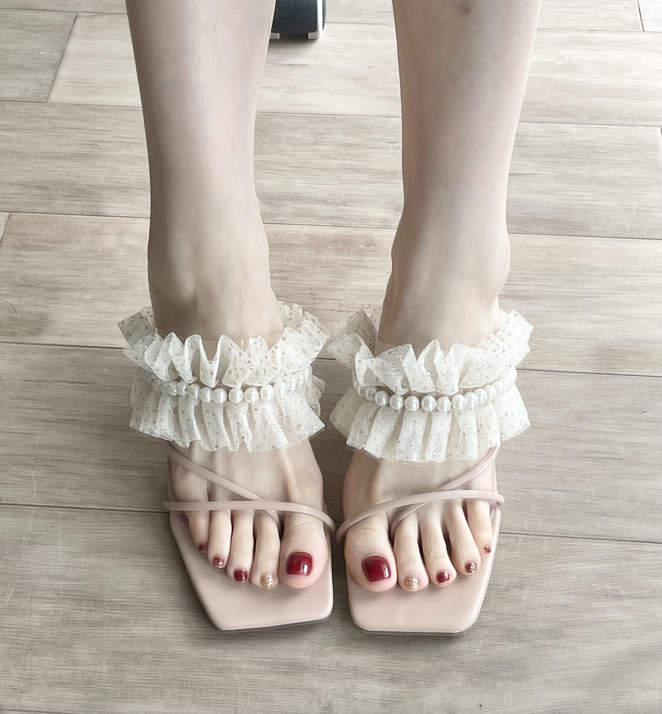 👟球鞋名称:粉色蕾丝高跟凉鞋 🔍分享理由:很好看!!夏天百搭!! 🤔整体感受:好穿好看!!
