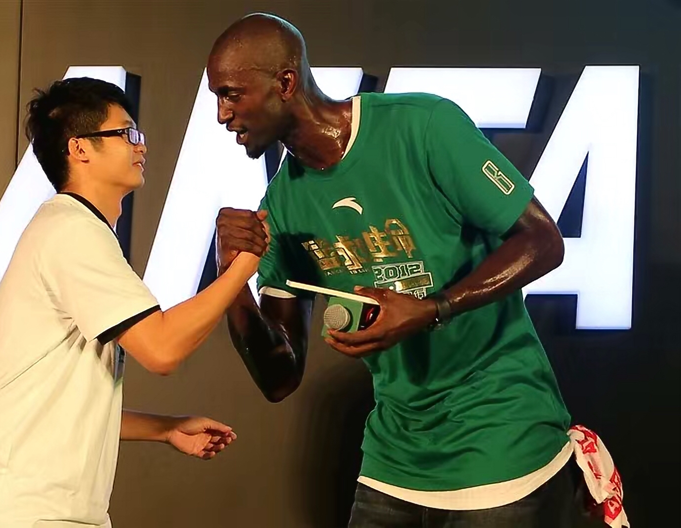 这对KG1承载了我太多回忆,当时KG刚刚签约安踏后就说启动中国行,还说会公开招募球迷与KG互动。作为一名KG粉当然挖尽心思去竞聘,后来经过很多人的帮助下我终于有机会上台和KG握手并拿到签名篮球(图一)。 两年后KG中国行来到深圳,我抱着少许希望去联系了下当时的PR,想送个相框给KG,谁知她一下子就答应了。当天还有一个小插曲,我准备上台时保安以为我是疯狂球迷,一手把我按住,还是于嘉老师亲自下台把我拉...
